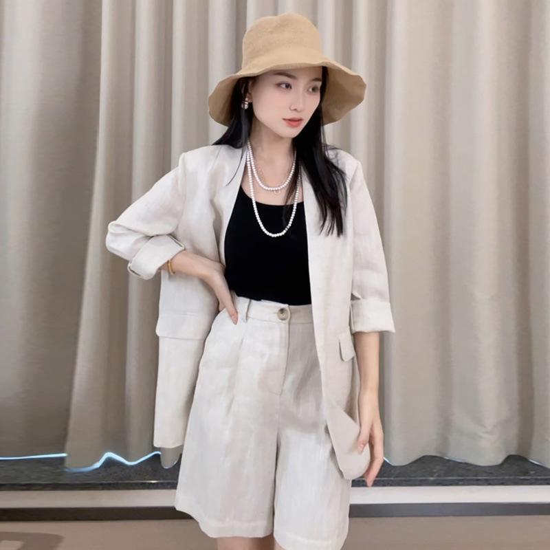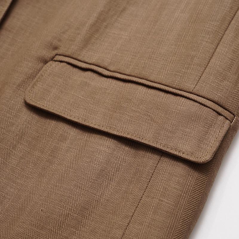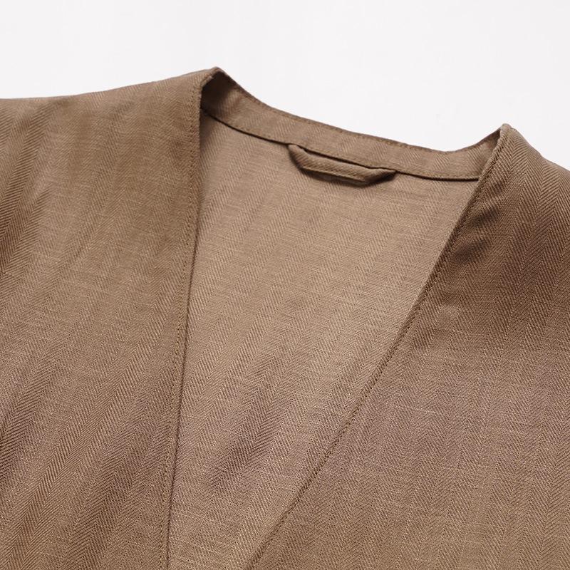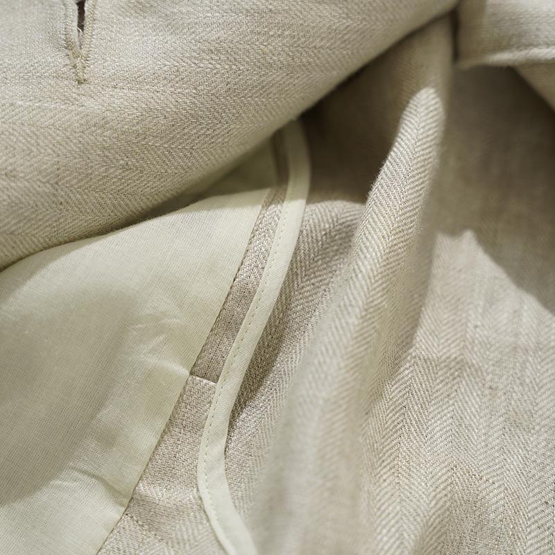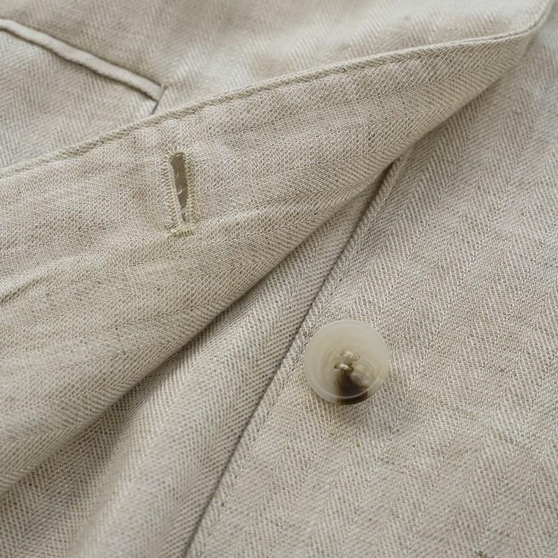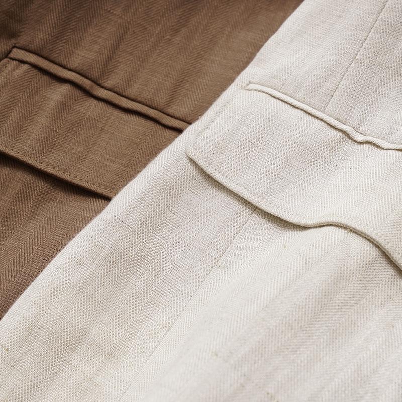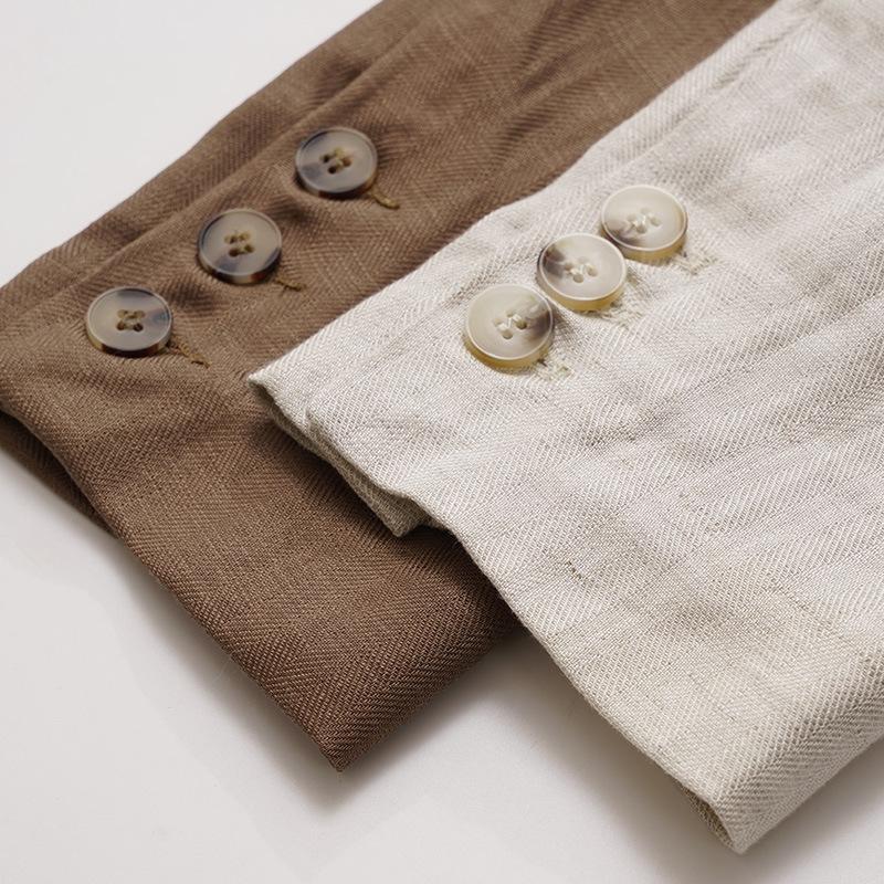 Traje de tela de lino de alta calidad tejida a medida con la textura original del lino, duradero y que se vuelve más suave con cada lavado~ Este traje tiene una sensación rústica y avanzada de relajación al usarlo~ ¡Muy elegante y de alta gama!