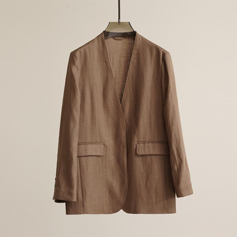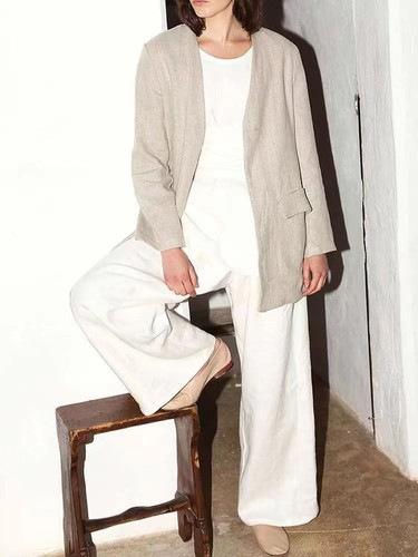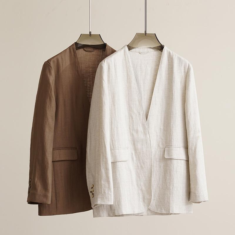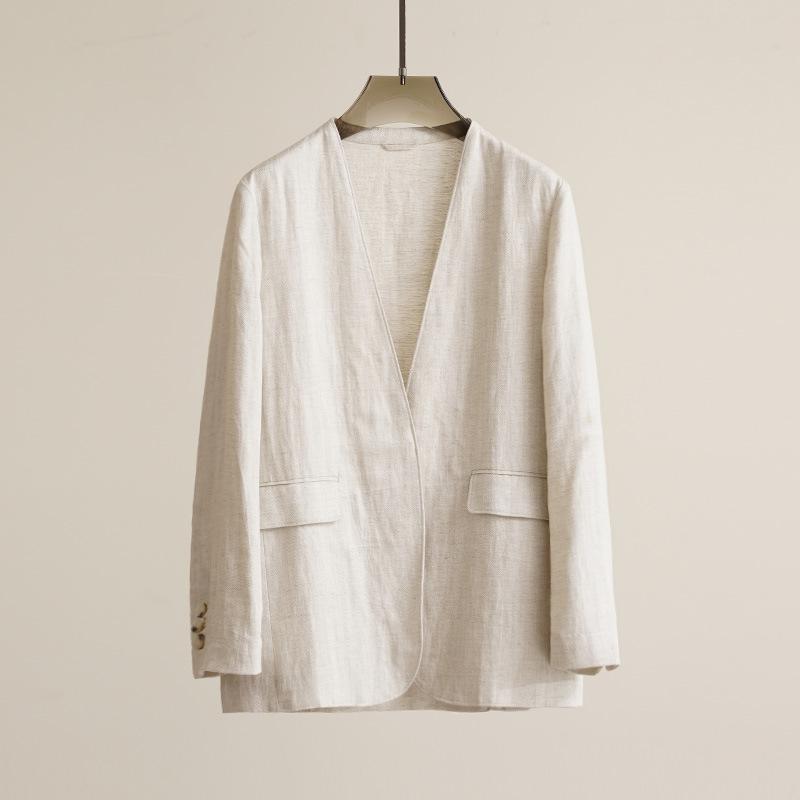 Xiaohe Chaqueta de Traje de Lino Minimalista sin Cuello Offline 5996
