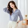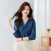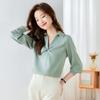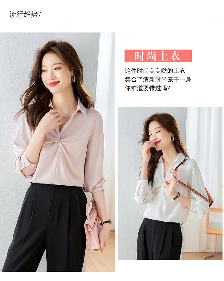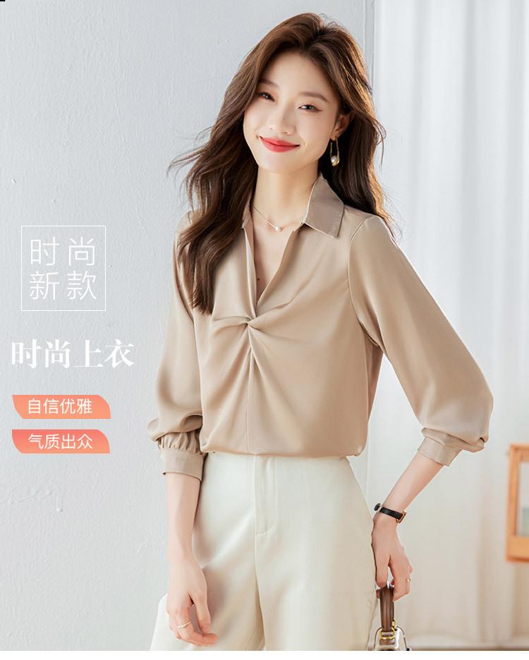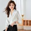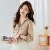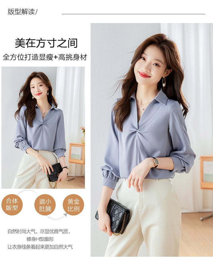 Camisa Top de Color Sólido para Mujer 2023 Principios de Otoño Nueva Moda Elegante Solapa Plisada Zou Holgada Adelgazante Profesional Camisa de Moda