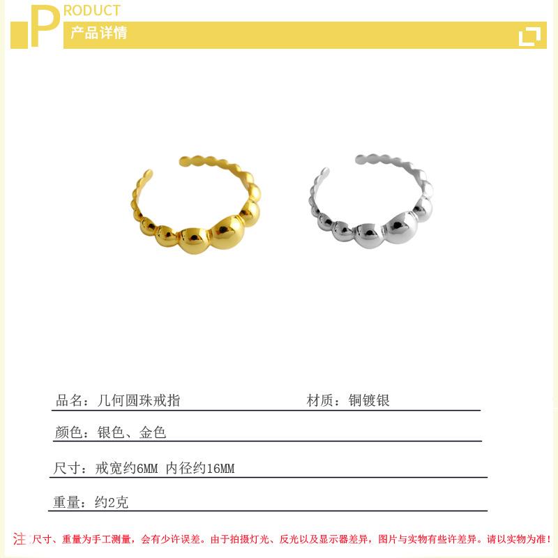 Anillo geométrico de cuentas redondas ins moda temperamento personalidad asimétrico con cuentas dedo índice anillo viento frío suministro comercio electrónico