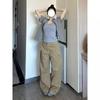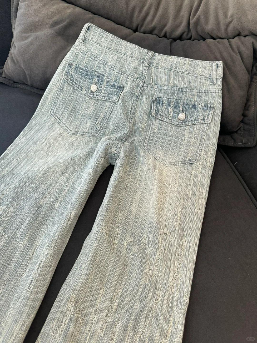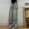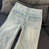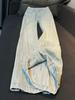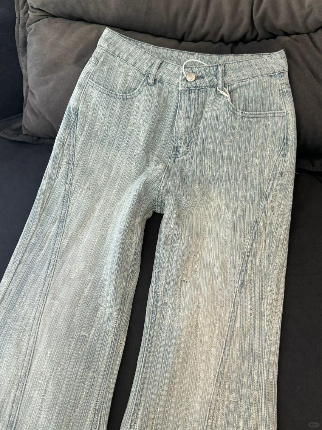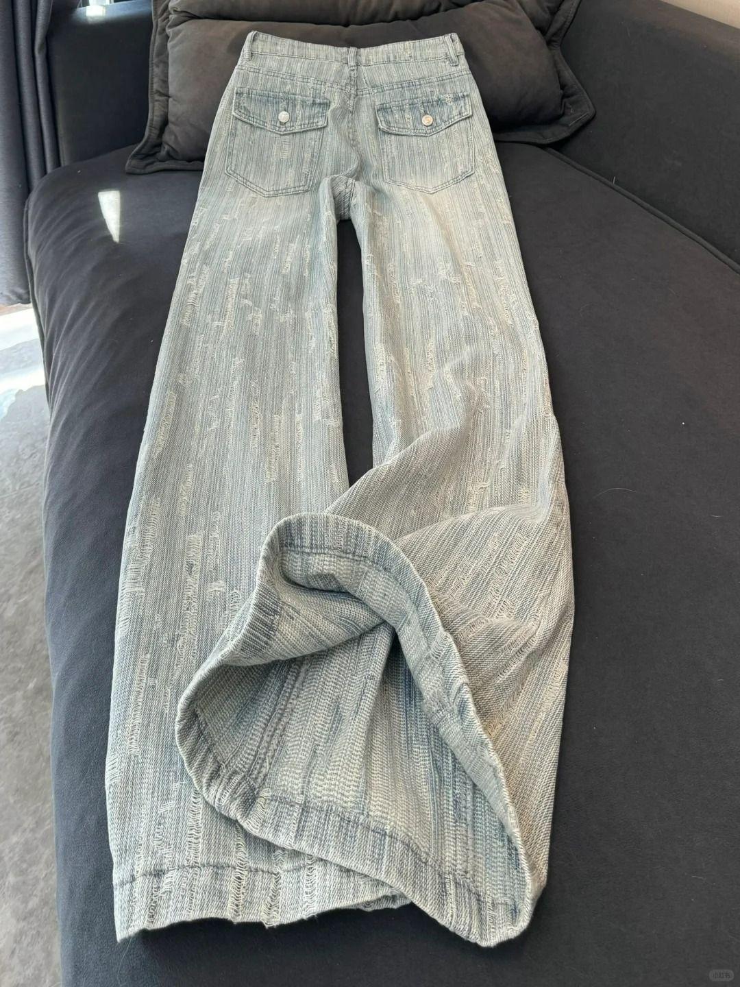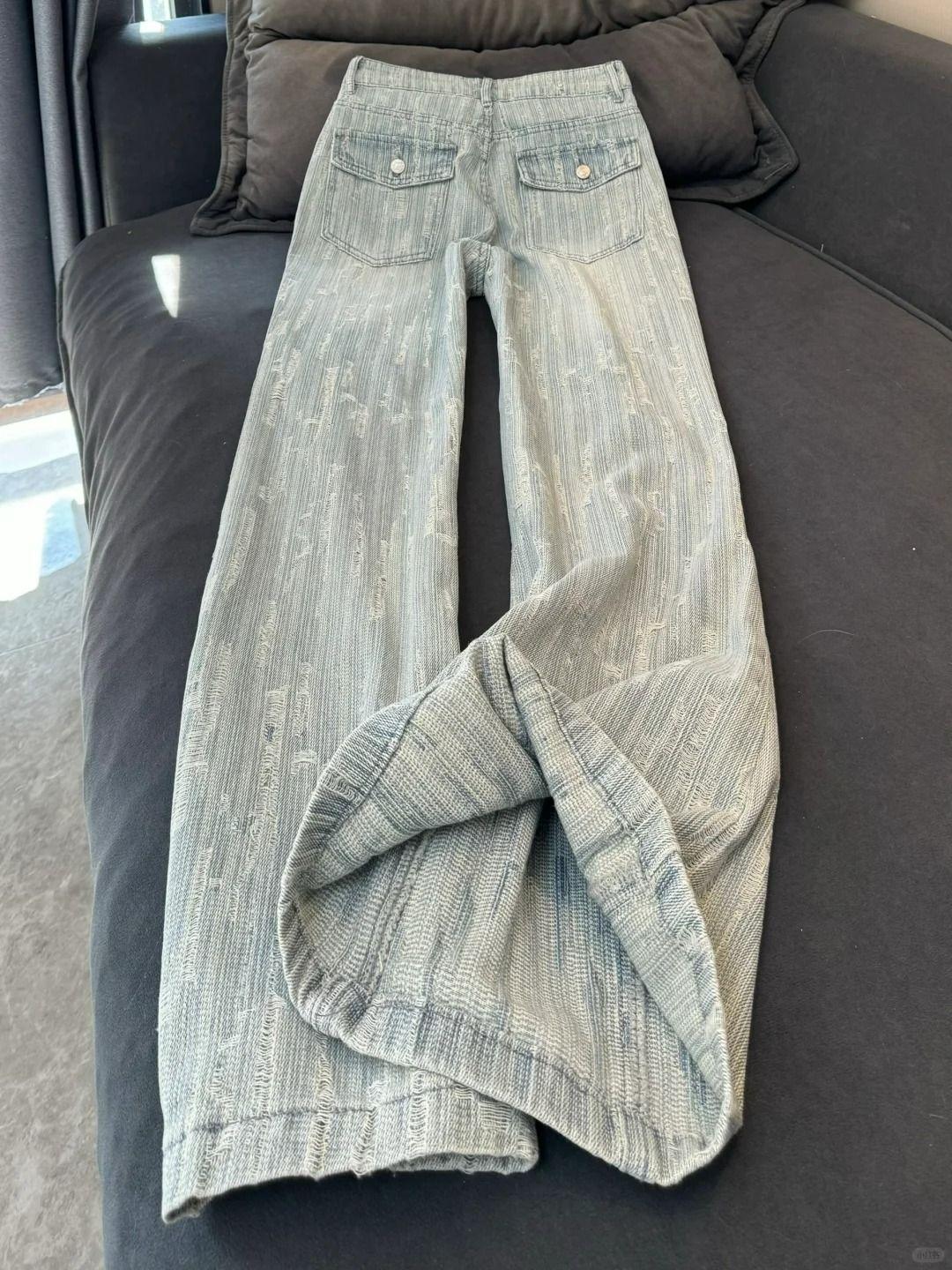 Jeans Jacquard Color Claro Primavera/Verano 2025 Mujer Talla Grande Gordo MM Cintura Alta Adelgazantes Pierna Ancha No Ajustados Pantalones Adelgazantes