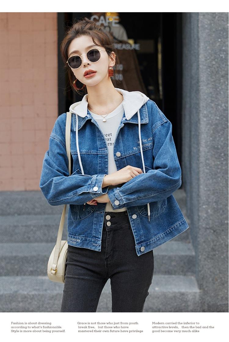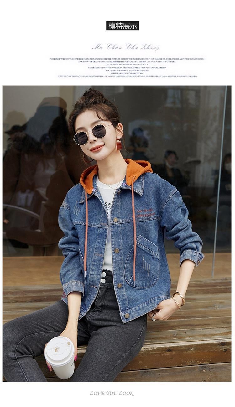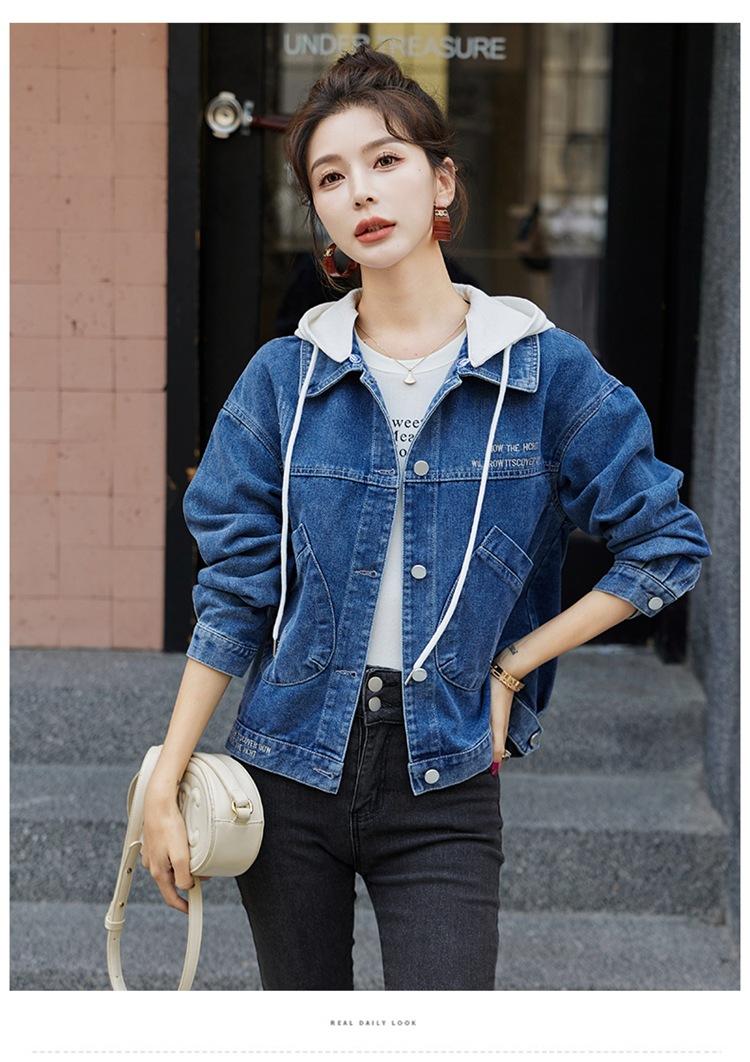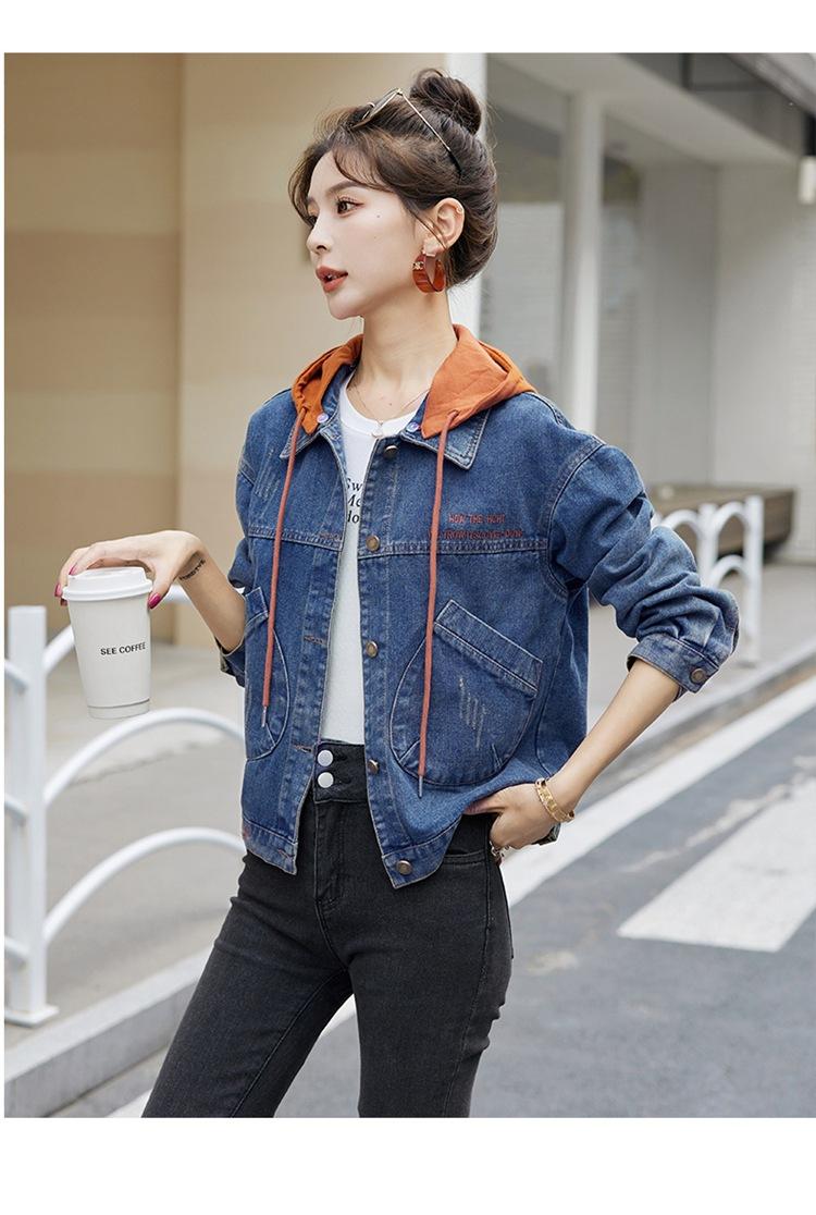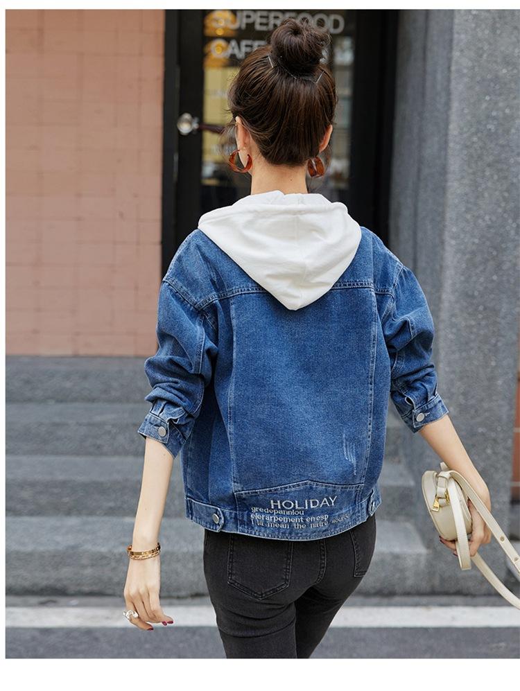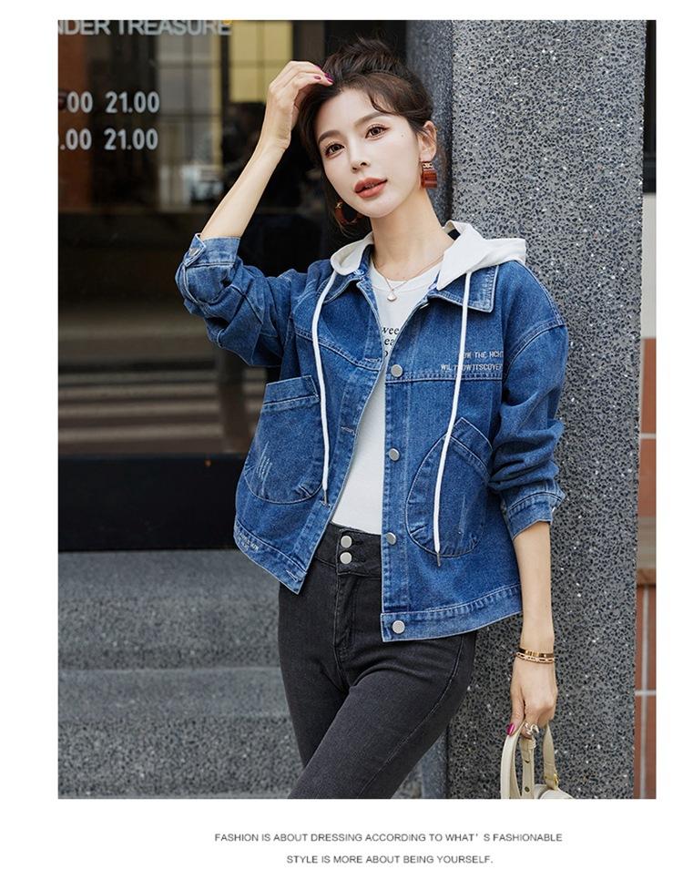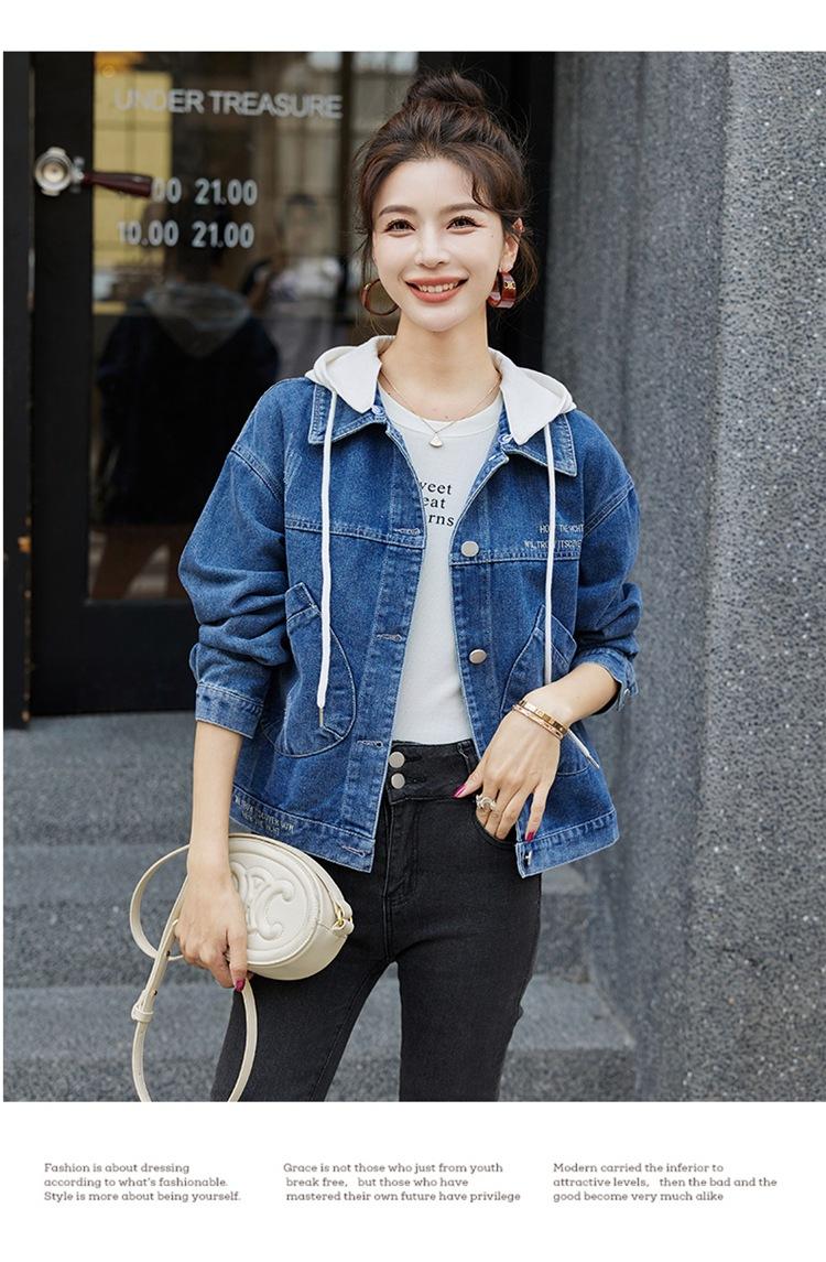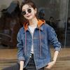 2025 Primavera y Otoño Nuevo Abrigo Corto de Mezclilla Holgado con Capucha y Costuras de Dos Piezas Falsas para Mujer Talla Grande Chaqueta de Estudiante Top