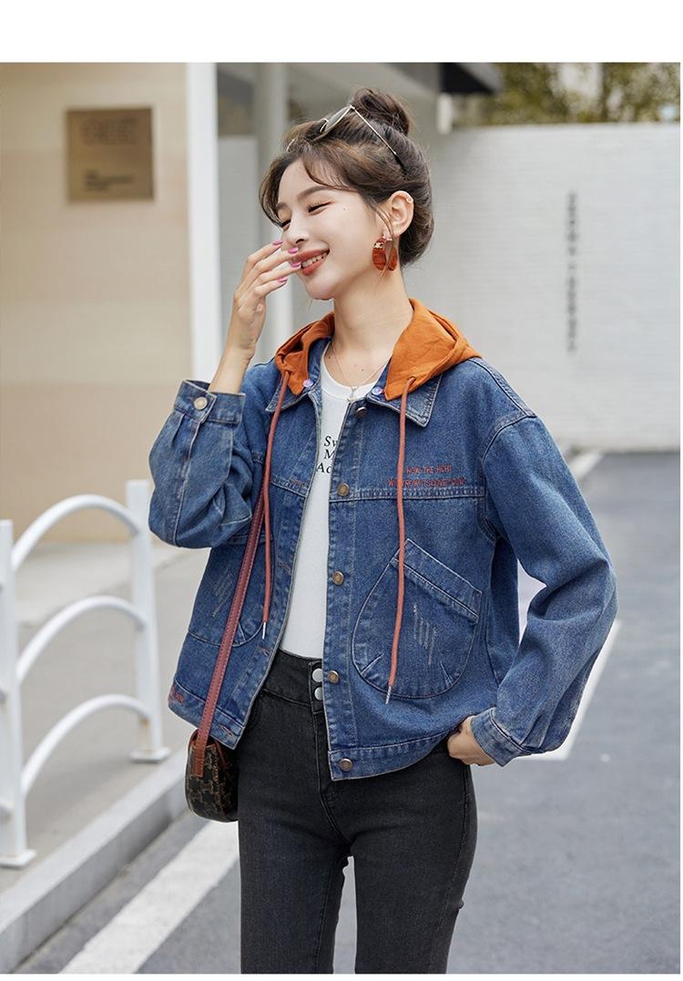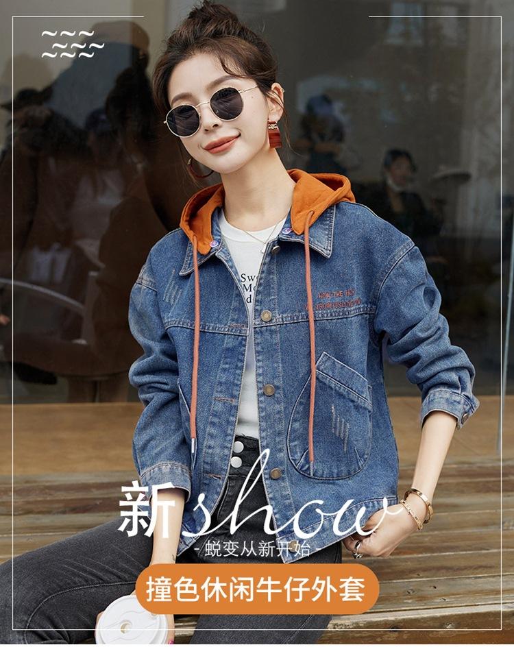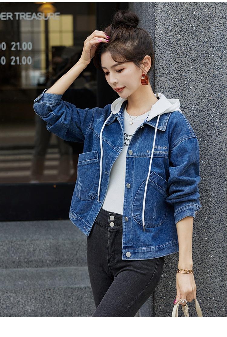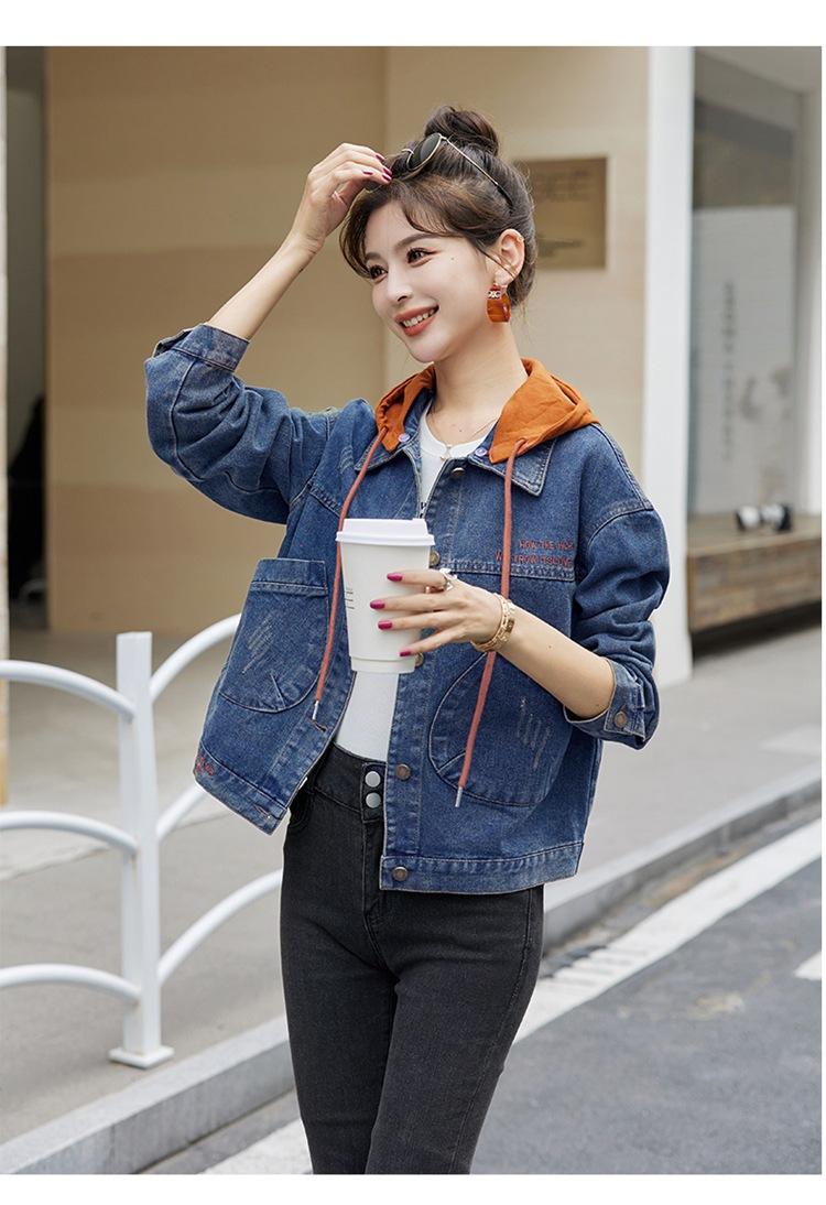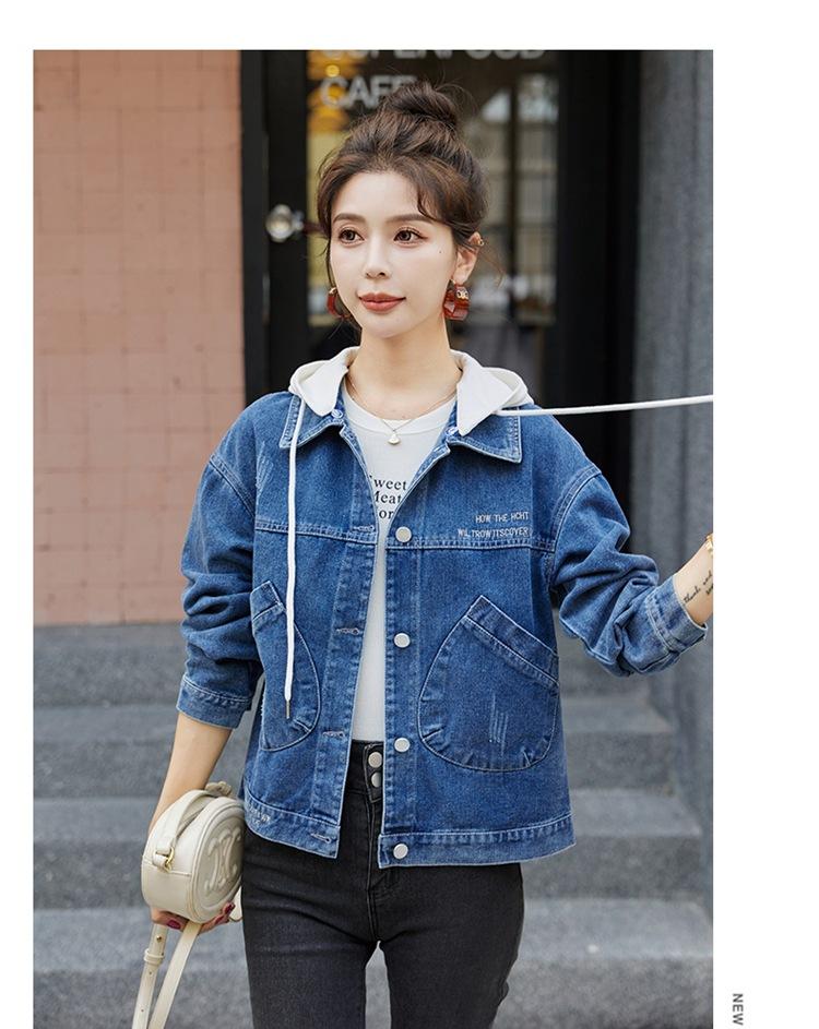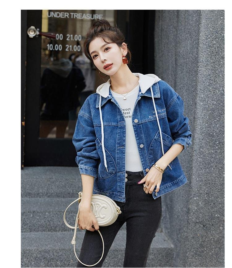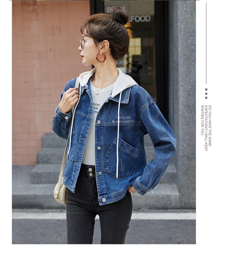 2025 Primavera y Otoño Nuevo Abrigo Corto de Mezclilla Holgado con Capucha y Costuras de Dos Piezas Falsas para Mujer Talla Grande Chaqueta de Estudiante Top