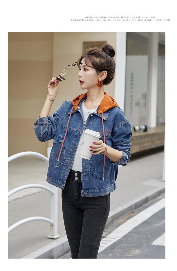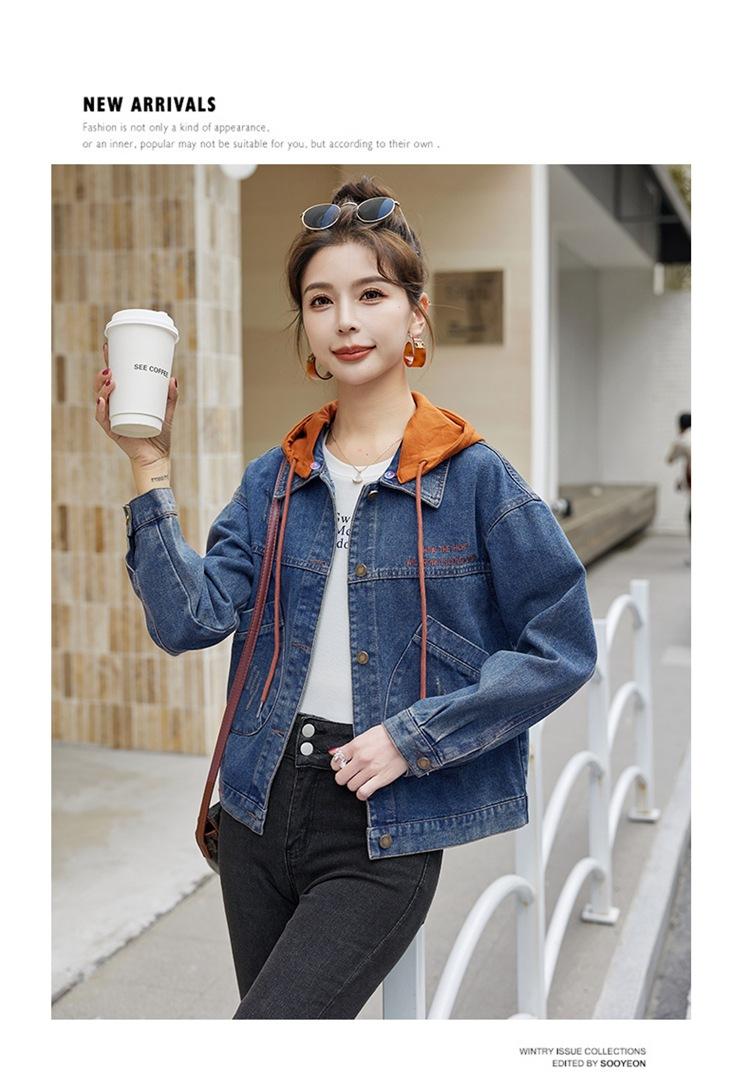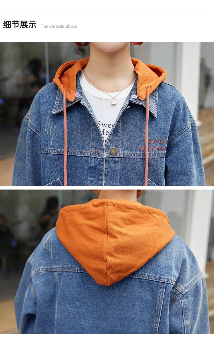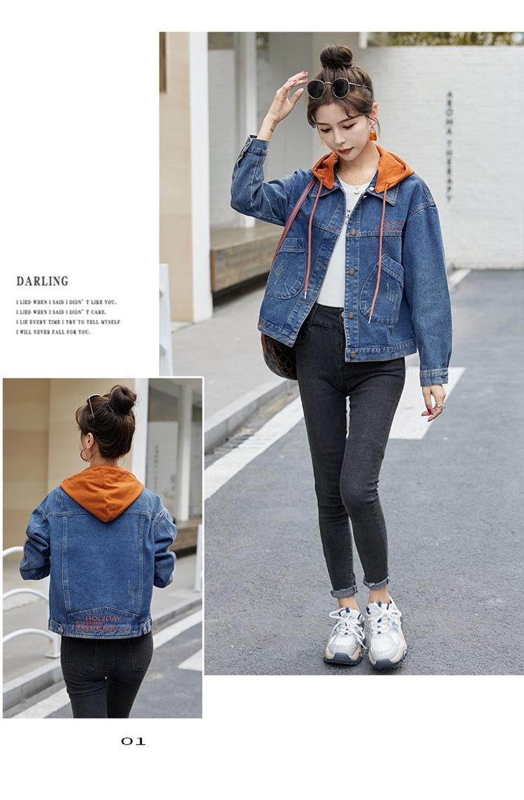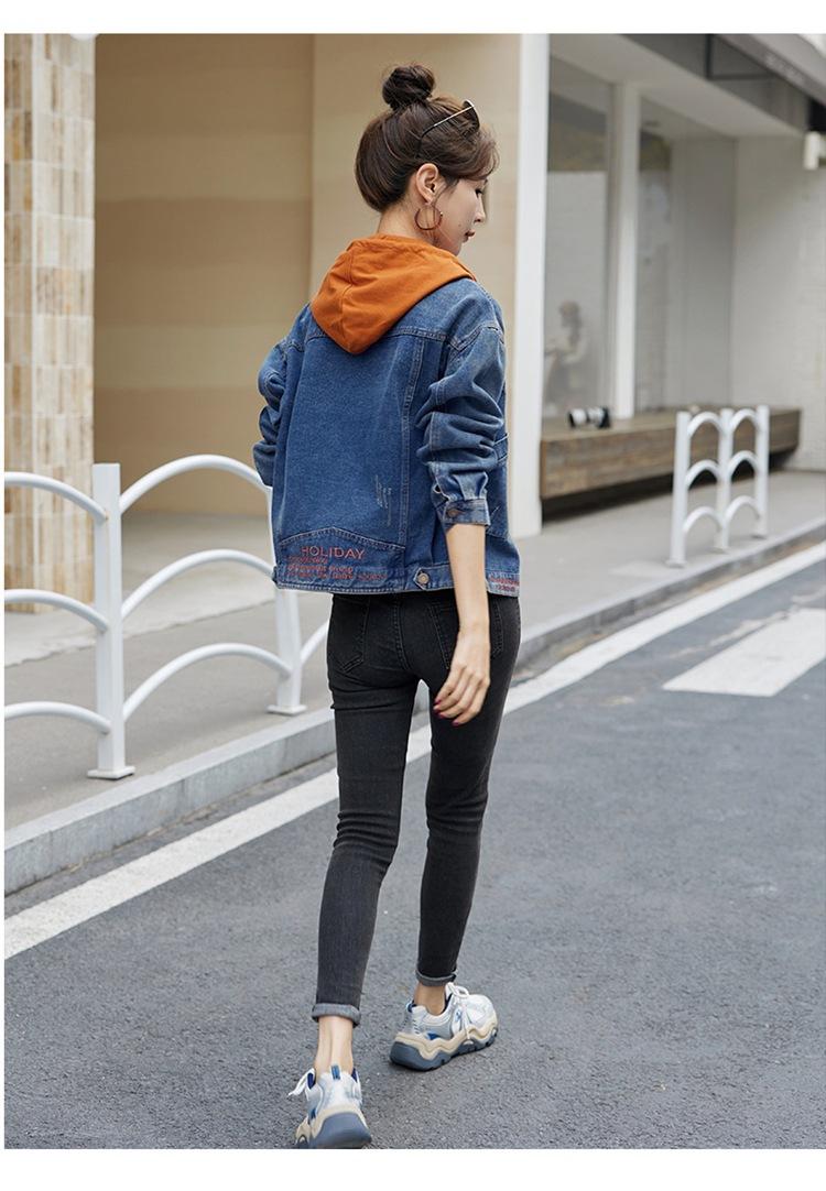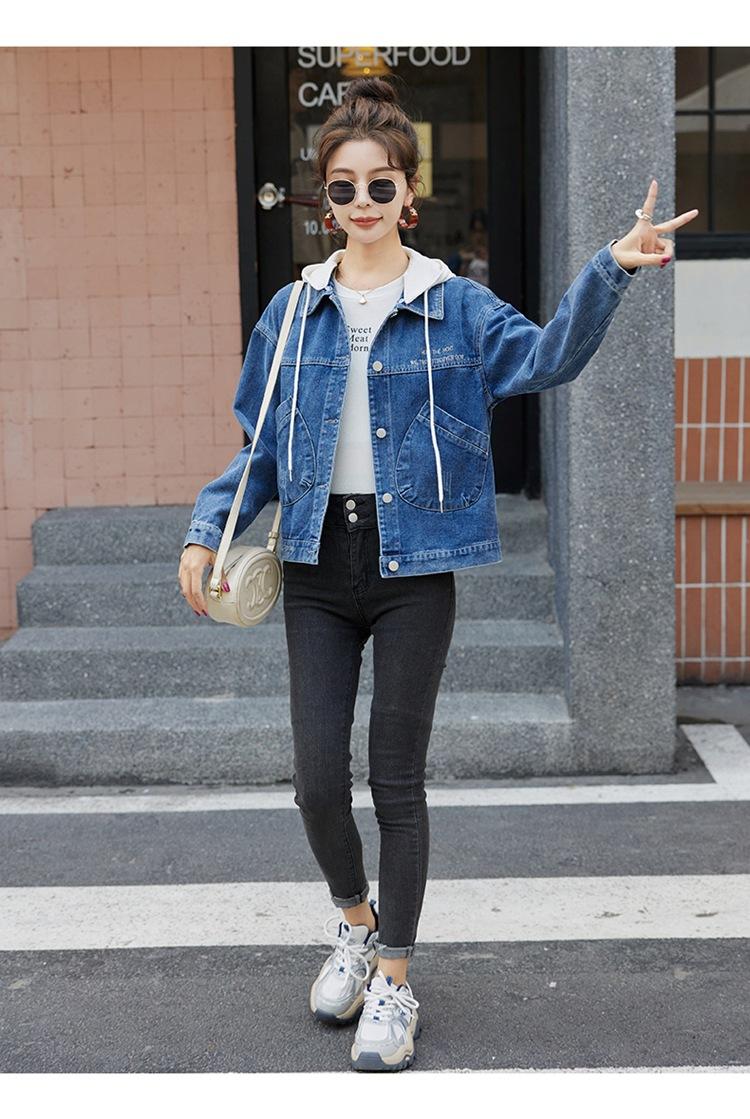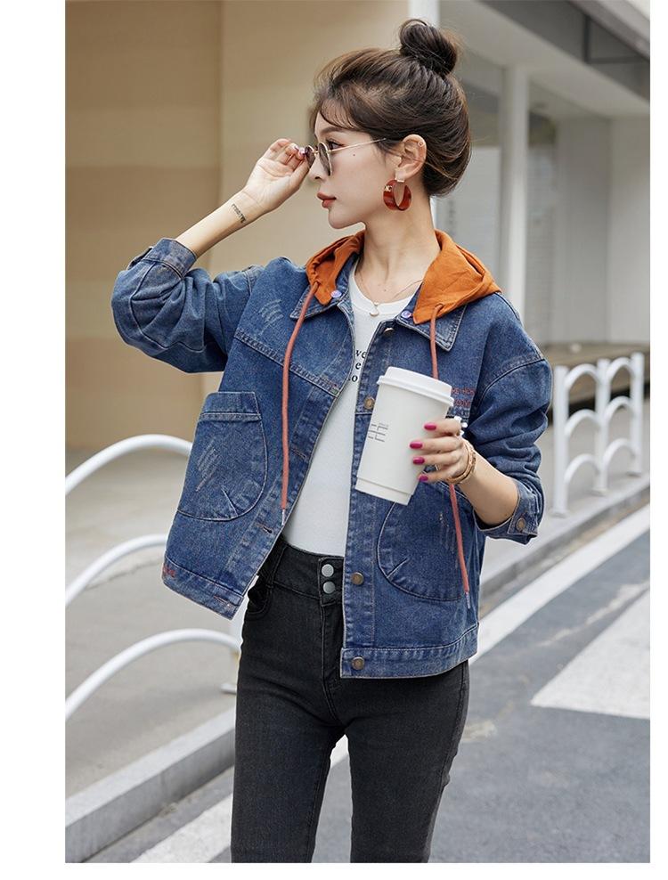 2025 Primavera y Otoño Nuevo Abrigo Corto de Mezclilla Holgado con Capucha y Costuras de Dos Piezas Falsas para Mujer Talla Grande Chaqueta de Estudiante Top
