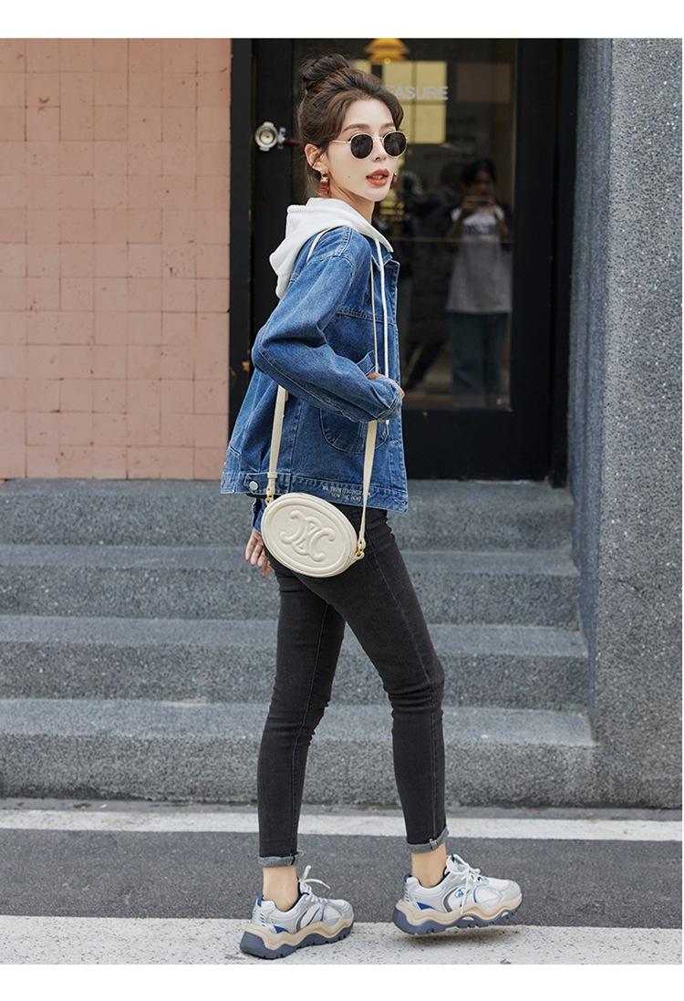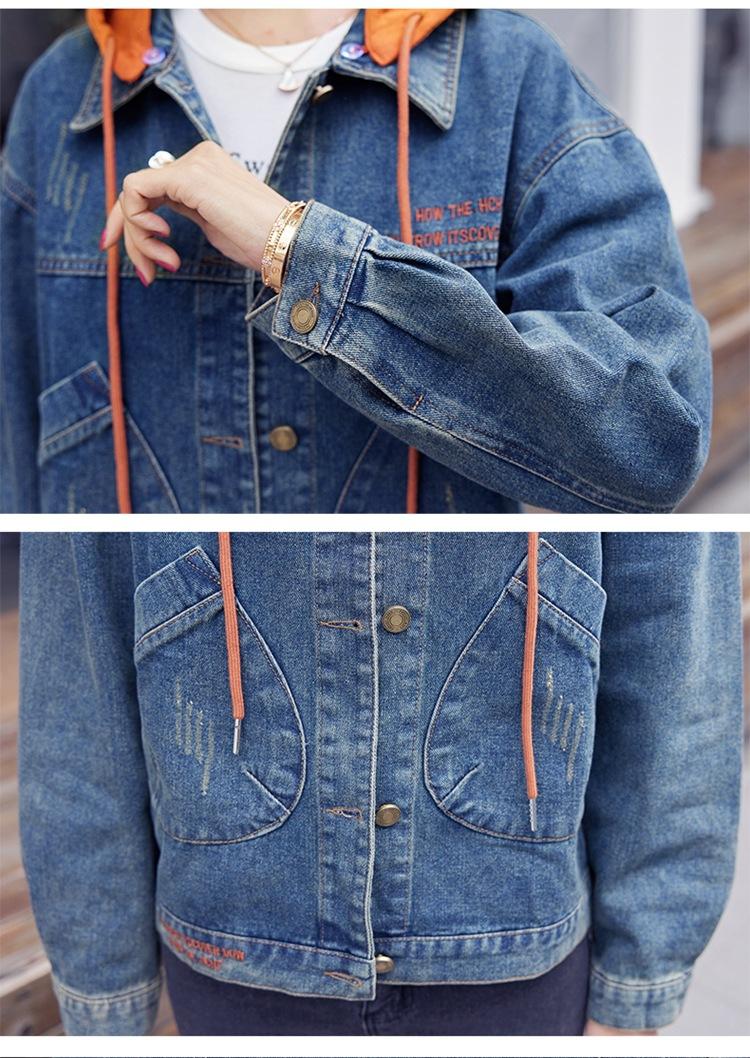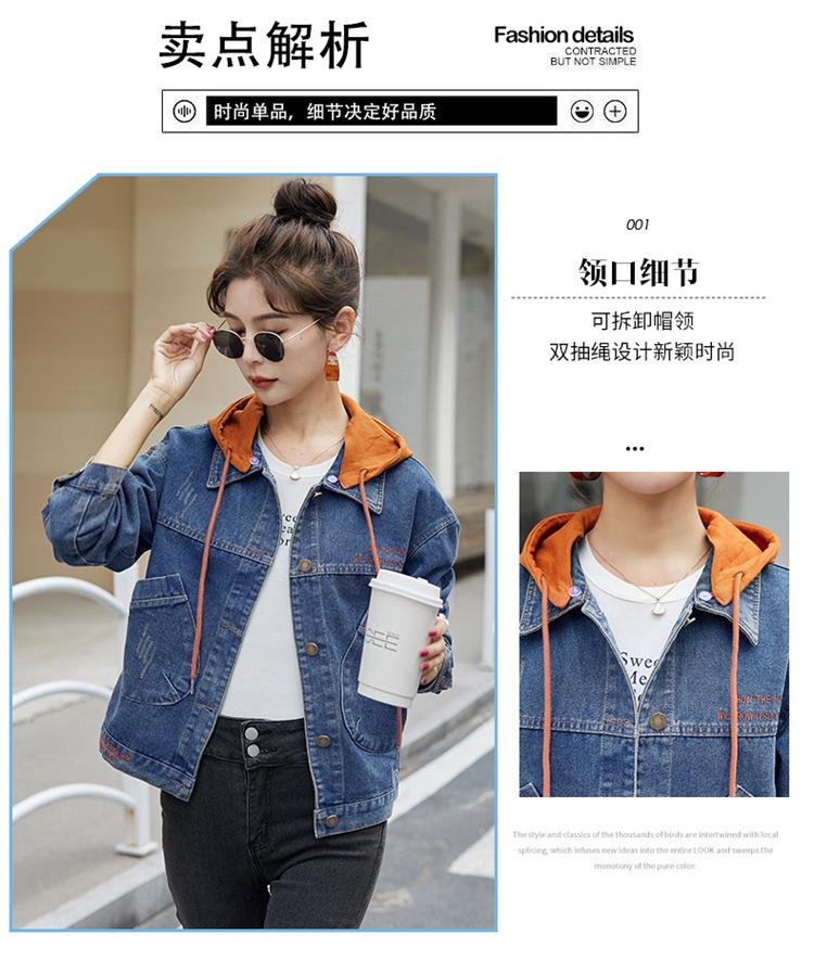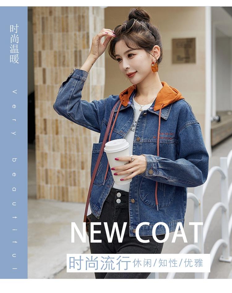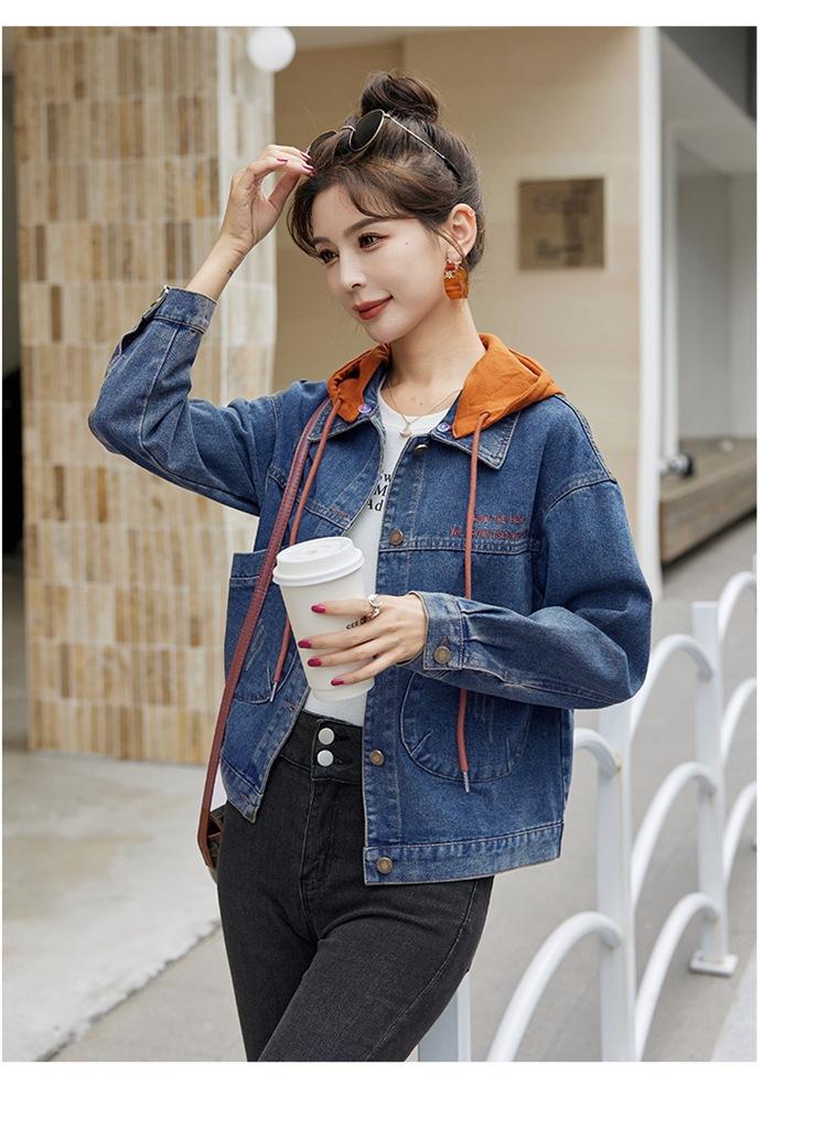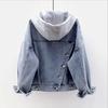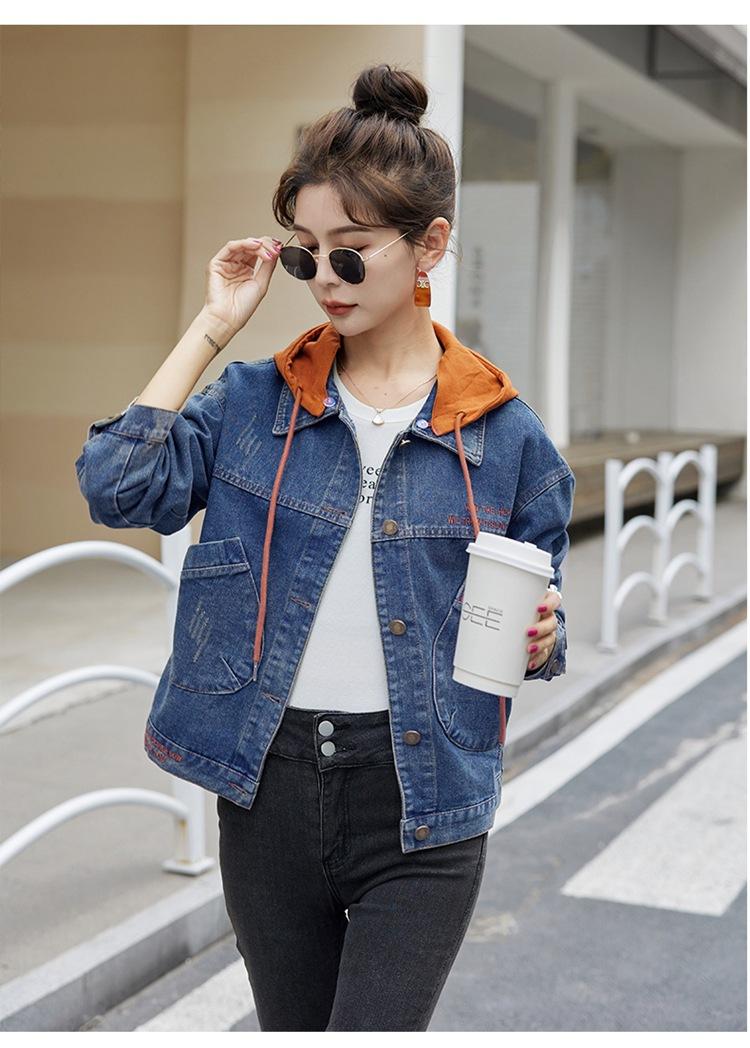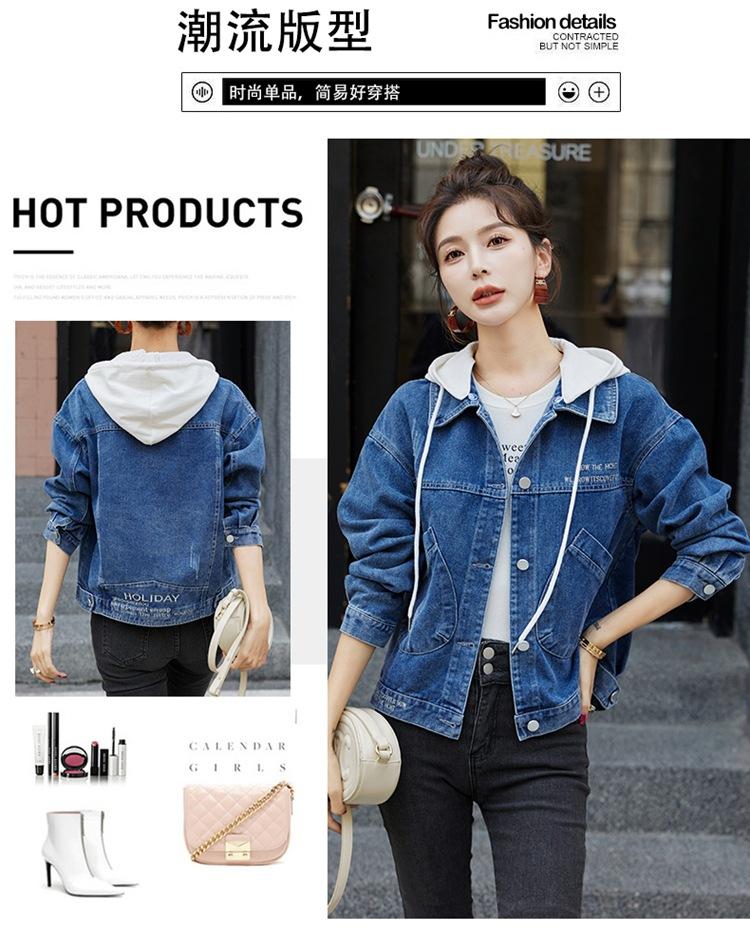2025 Primavera y Otoño Nuevo Abrigo Corto de Mezclilla Holgado con Capucha y Costuras de Dos Piezas Falsas para Mujer Talla Grande Chaqueta de Estudiante Top