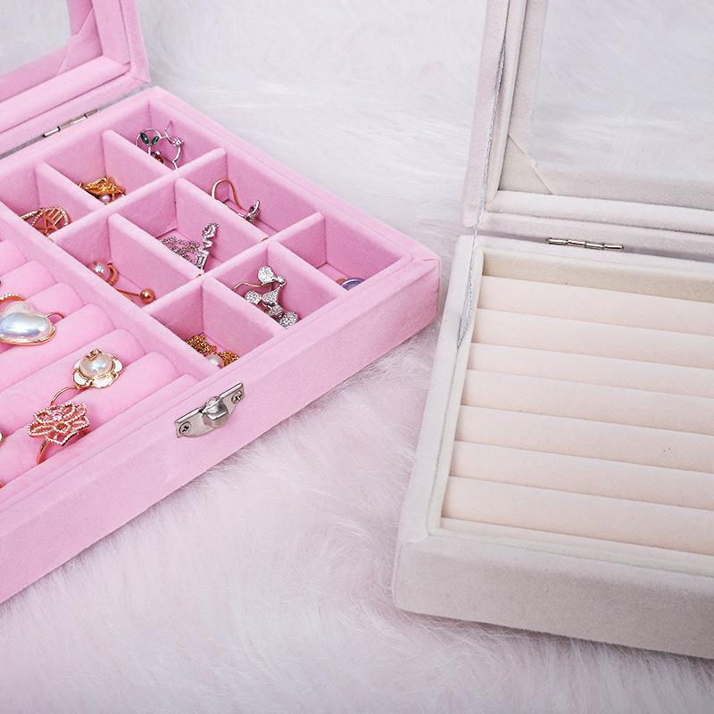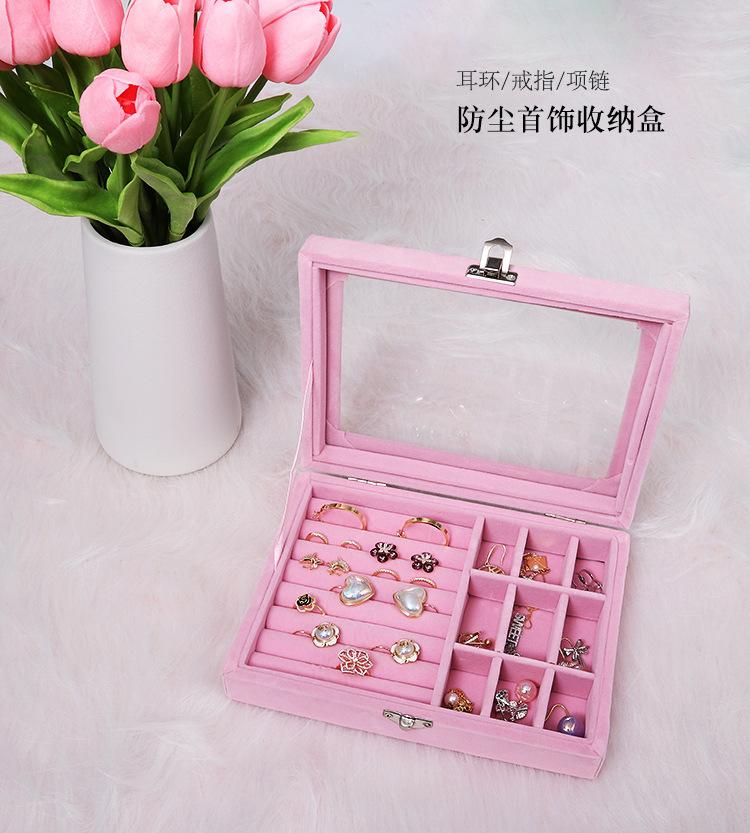 Caja de franela para guardar anillos, pendientes y joyas con tapa, a prueba de polvo, para collares, venta al por mayor