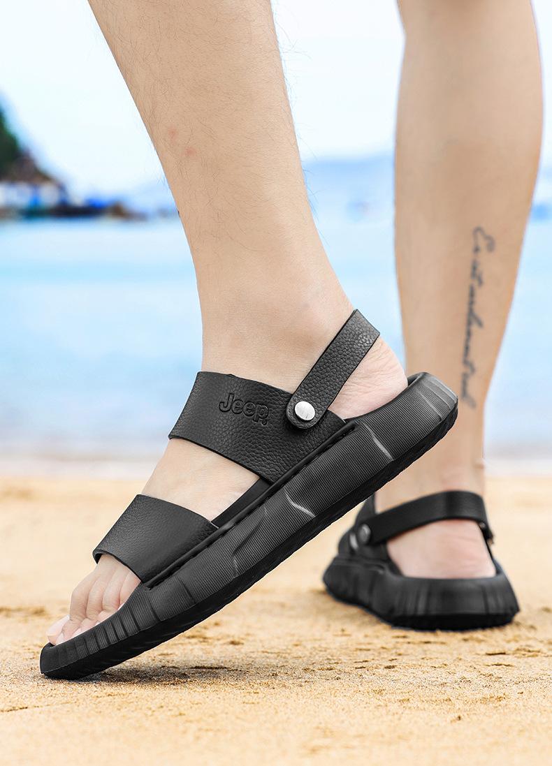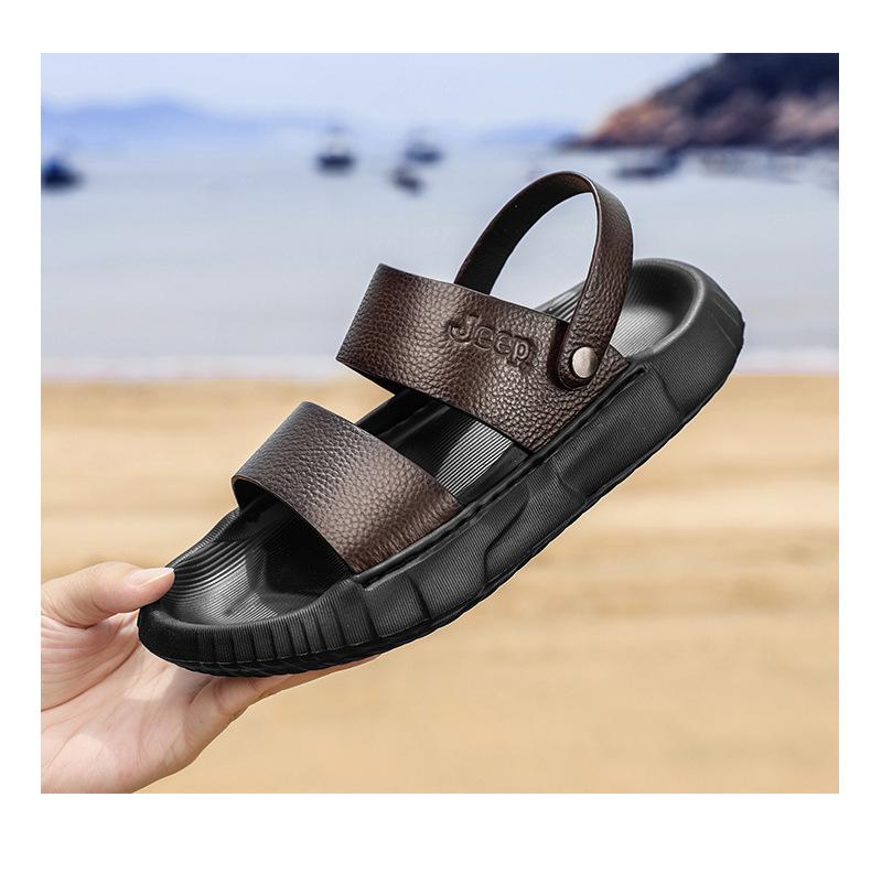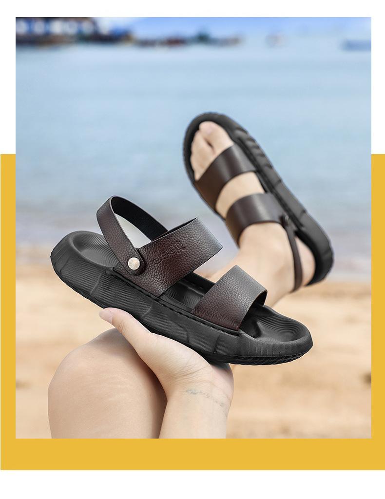 Sandalias de Verano para Hombre 2025 de Cuero Genuino Transpirables de Suela Suave Zapatos Casuales de Playa Sandalias y Pantuflas de Doble Propósito
