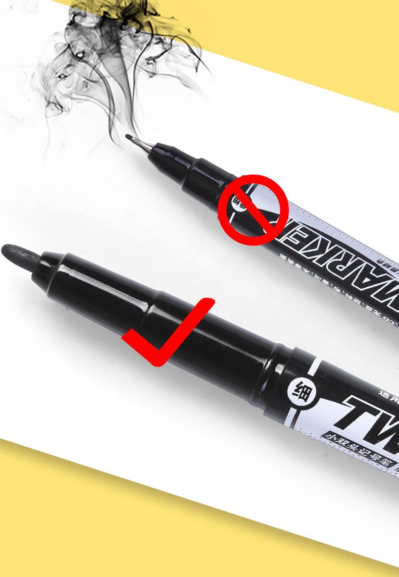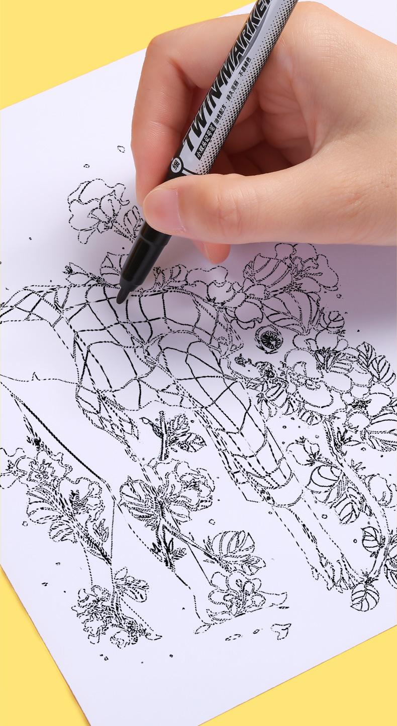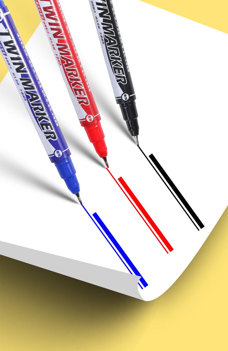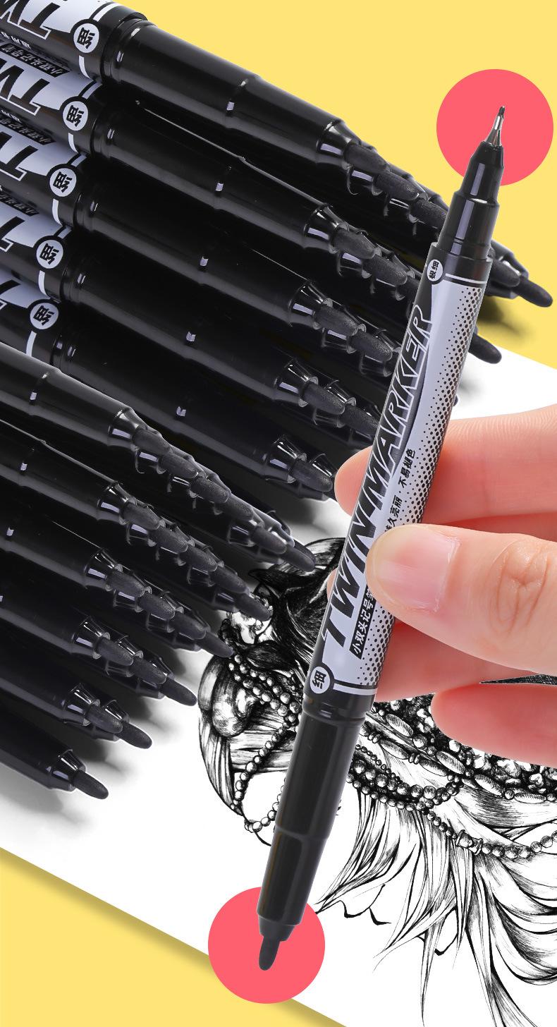 Pluma Marcadora de Secado Rápido Doble Punta Pequeña a Base de Aceite Pluma de Línea de Gancho Doble Punta Pintura Artística Impermeable Punta Fina Papelería para Estudiantes Venta al por Mayor