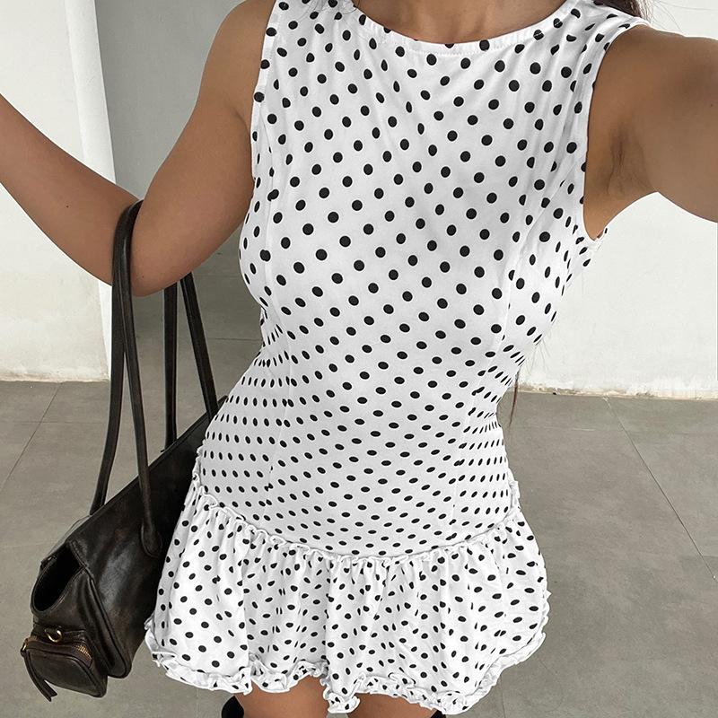 2025 Verano Transfronterizo Amazon Elegante Temperamento Moda Nuevo Vestido Adelgazante sin Mangas de Lunares para Chica Caliente Venta al por Mayor