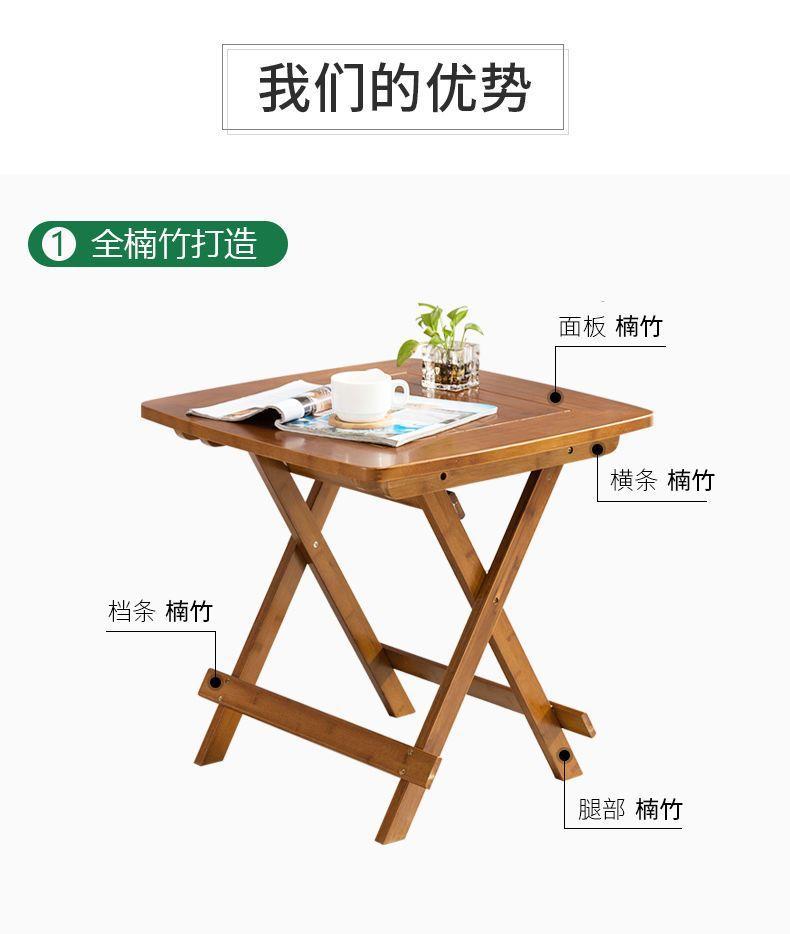 Mesa Plegable, Mesa de Ocio, Mesa Pequeña Portátil, Mesa Cuadrada Moderna Simple, Mesa de Comedor para Apartamento Pequeño, Bambú