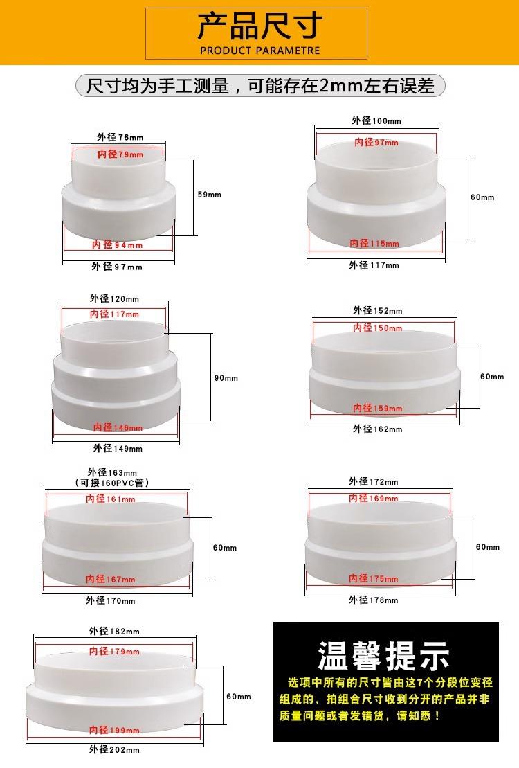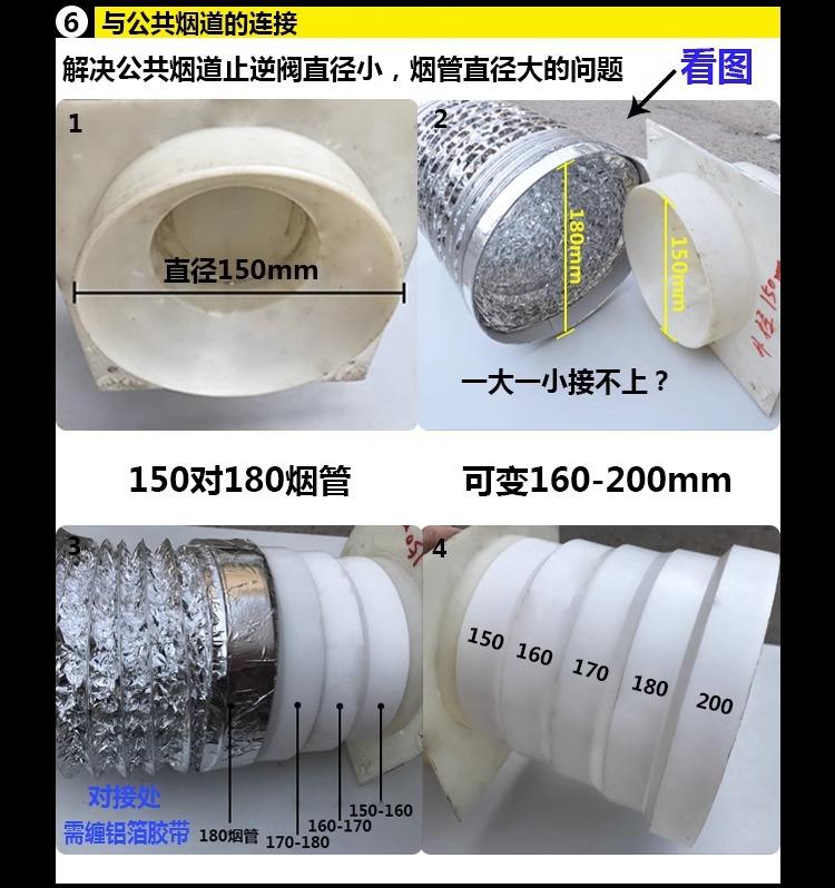 Anillo Reductor de Tubo de Escape para Campana Extractora Junta de Conversión de Tamaño de Tubo de Escape Tubo de Humos de Cocina Válvula de Retención Reductor
