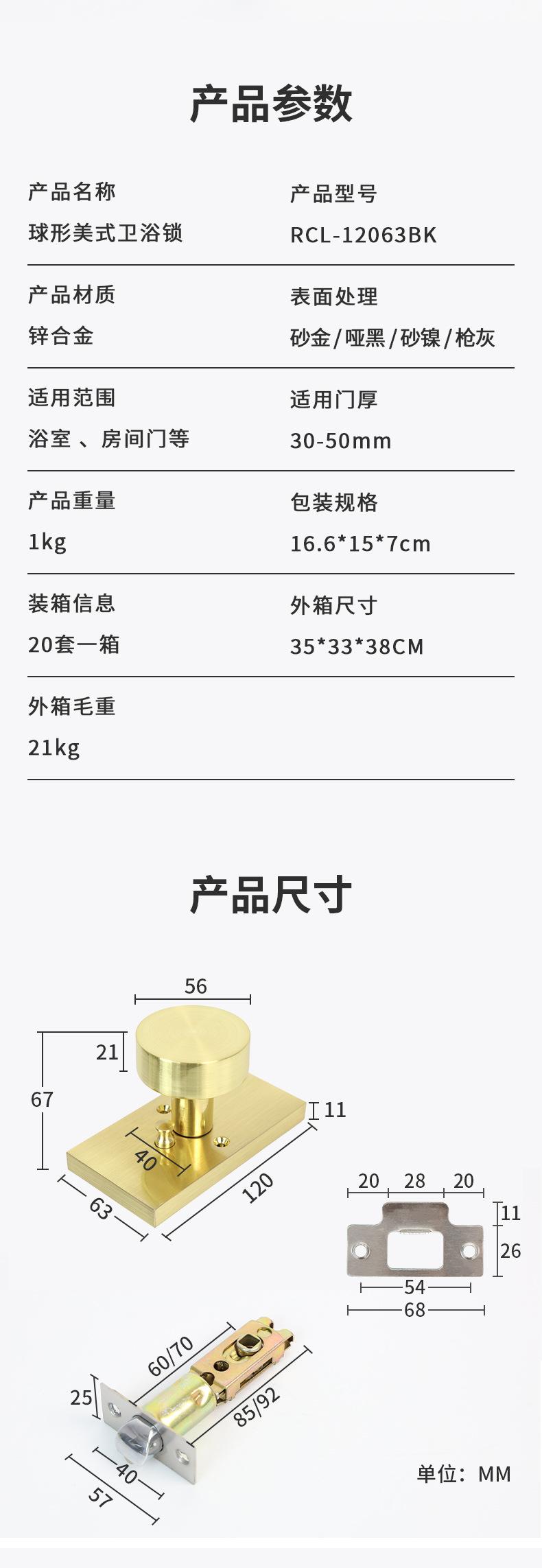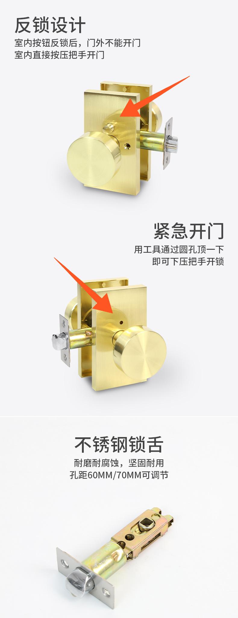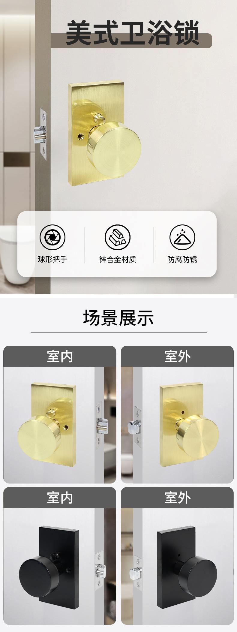 Cerradura Americana Personalizada de Fábrica para Uso Doméstico, Cerradura de Bola Sólida de Aleación de Zinc, Cerradura de Tres Pestillos para Baño