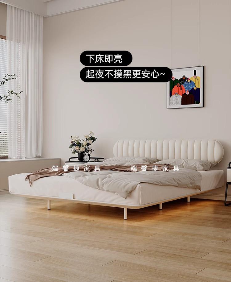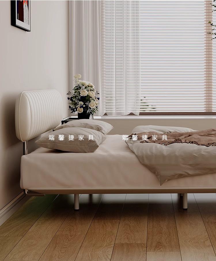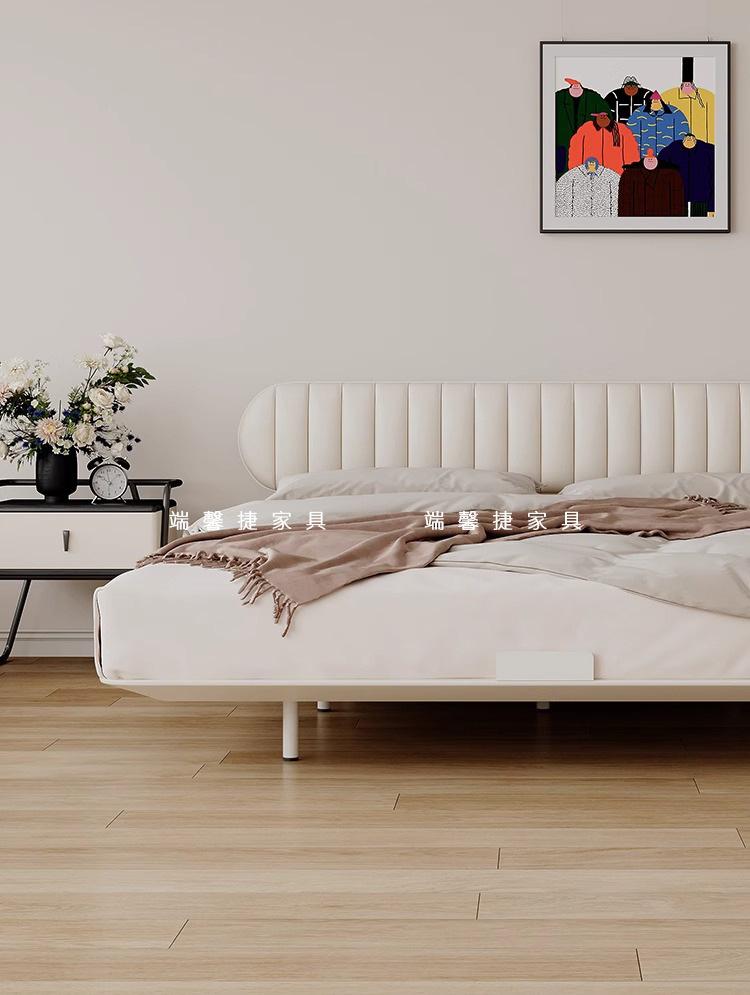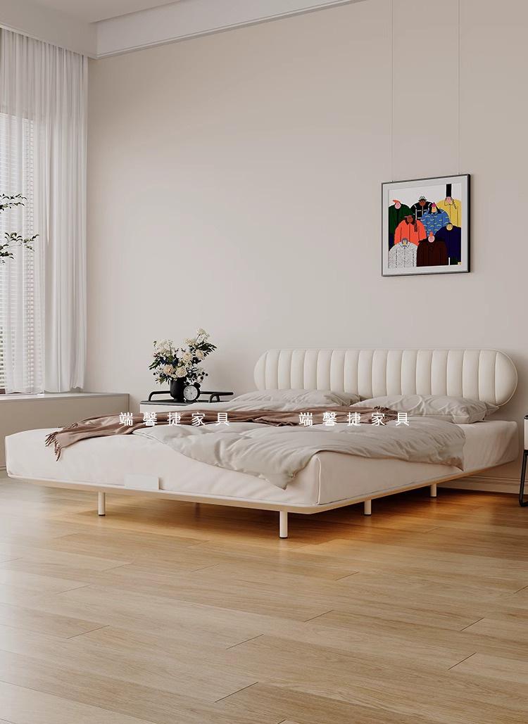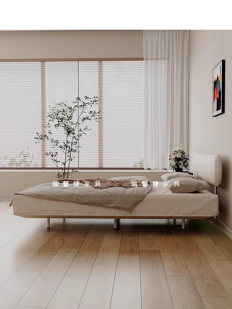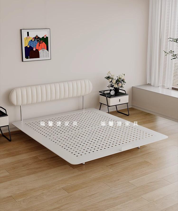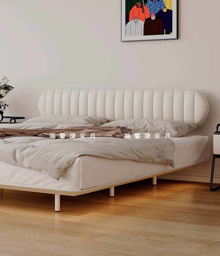 Cama de Respaldo Ultrafino Estilo Crema Francés Mesita de Noche Apartamento Pequeño Cama Suspendida de Acero al Carbono Cama de Pan de Cuero Cama Doble Simple