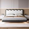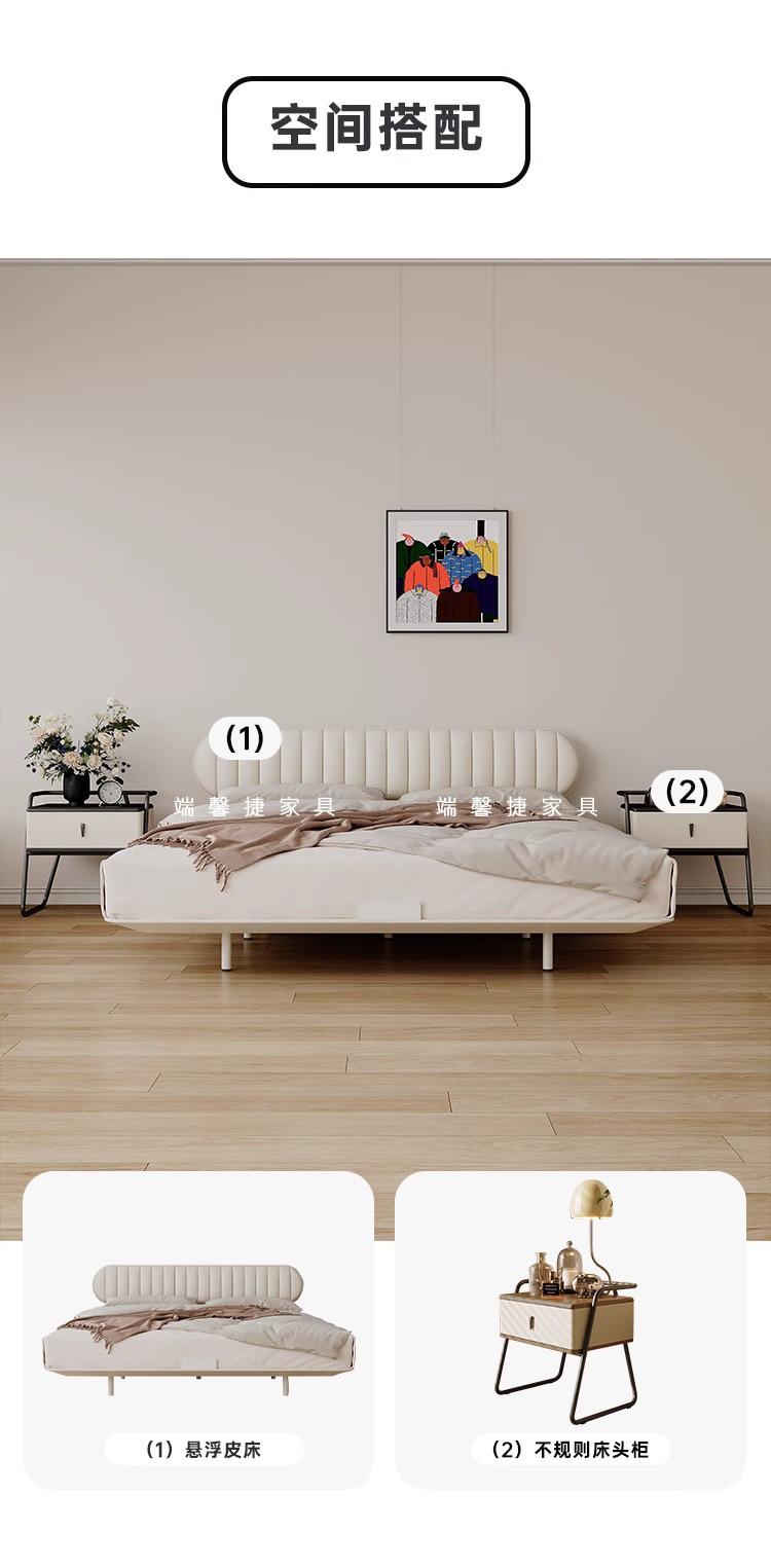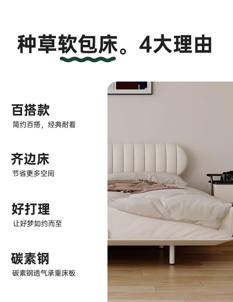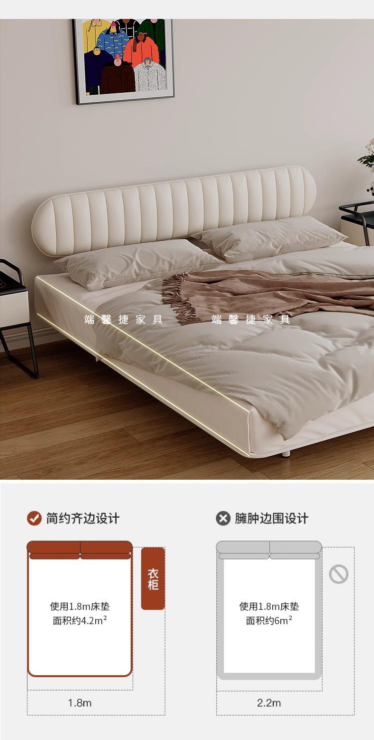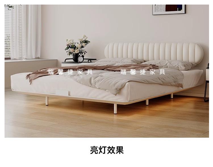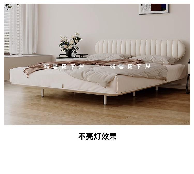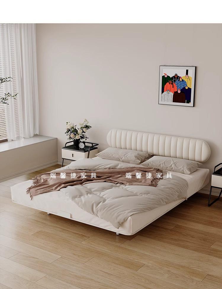 Cama de Respaldo Ultrafino Estilo Crema Francés Mesita de Noche Apartamento Pequeño Cama Suspendida de Acero al Carbono Cama de Pan de Cuero Cama Doble Simple