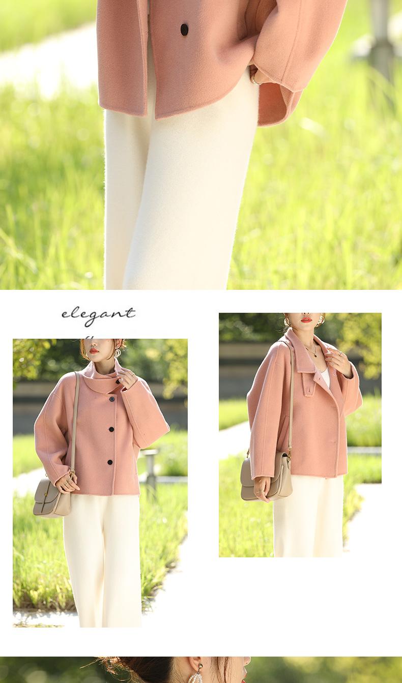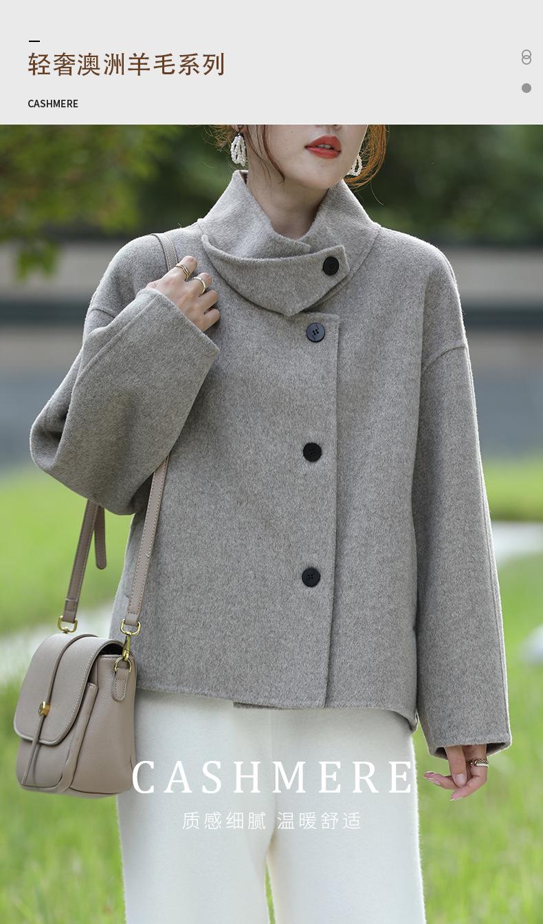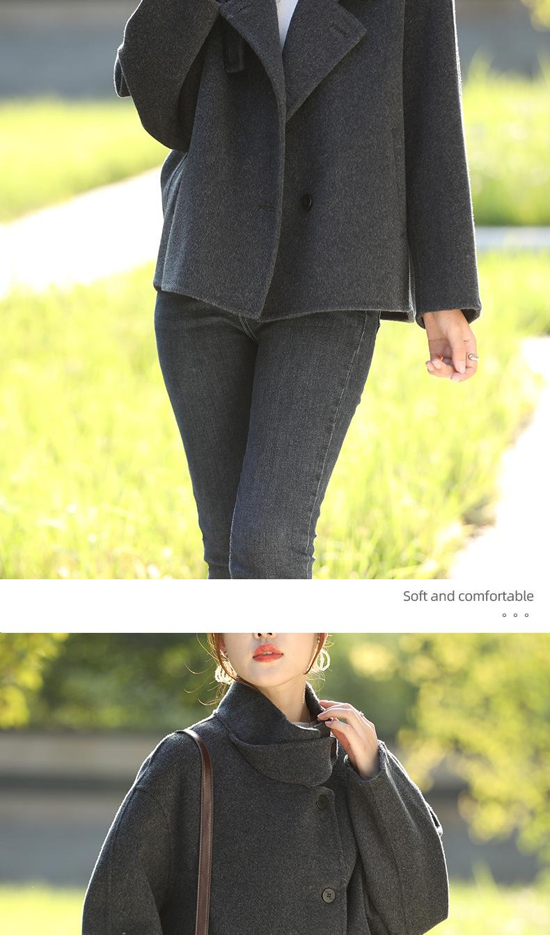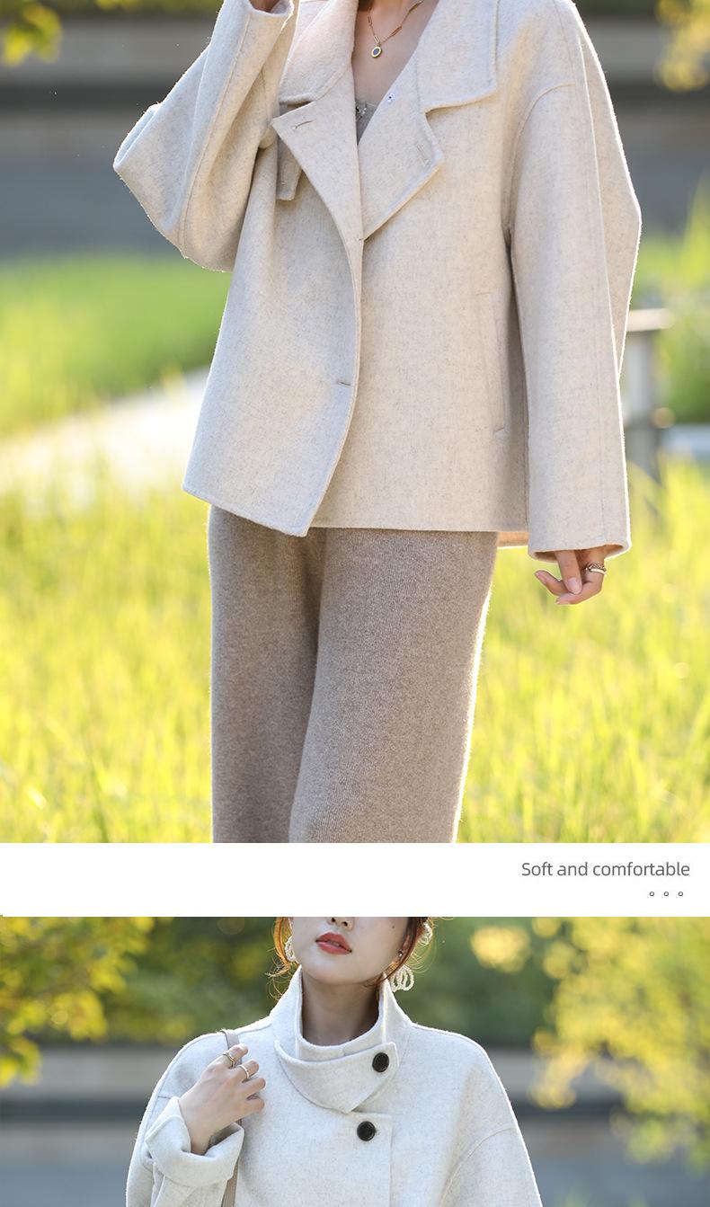 Nuevo Abrigo de Lana de Doble Cara Distintivo de Alta Gama para Otoño e Invierno para Mujer Abrigo de Lana Corto Corto Estilo Fragante Cuello Combinable