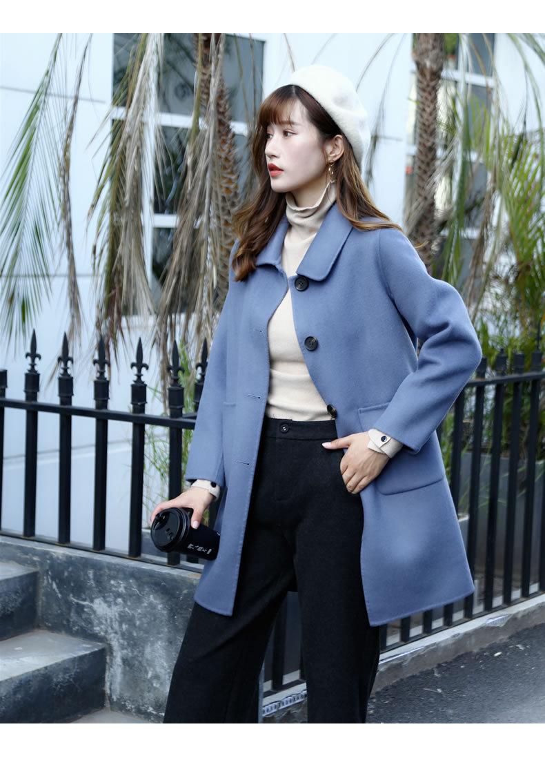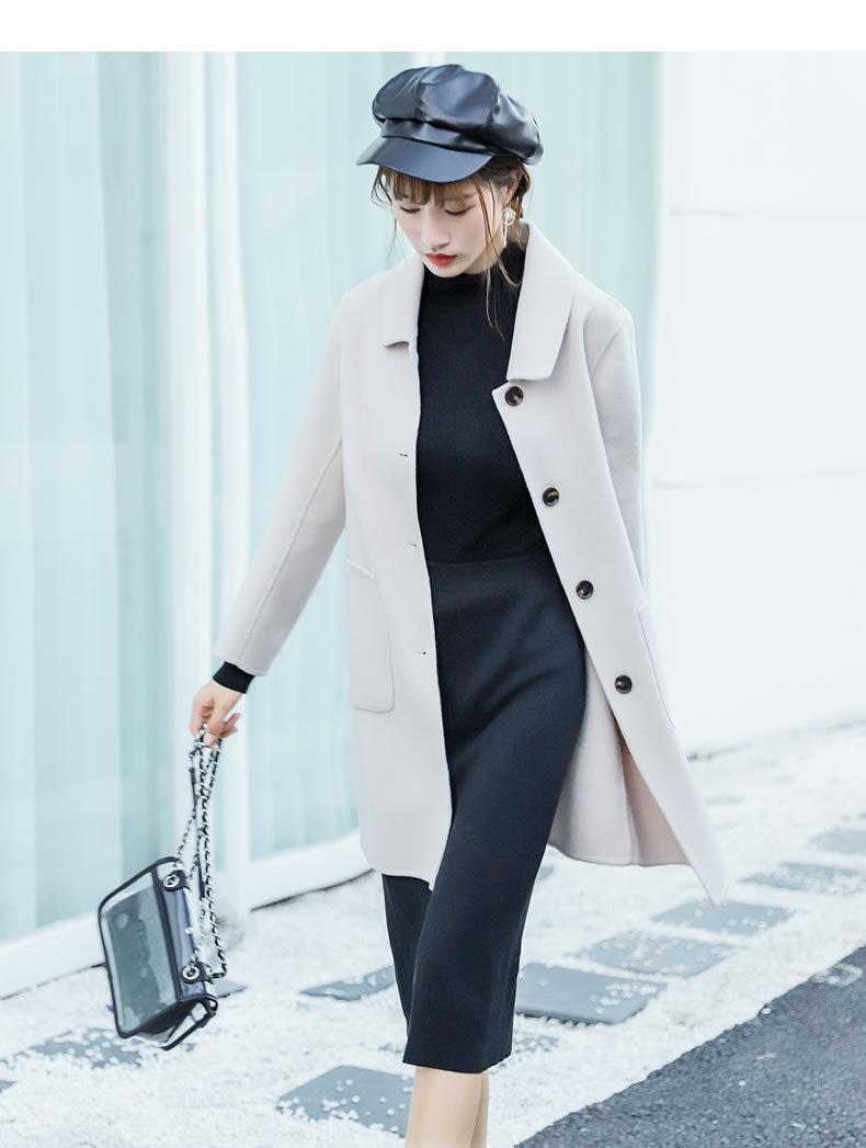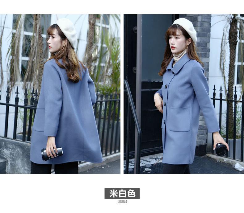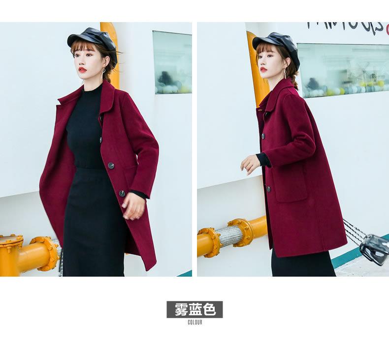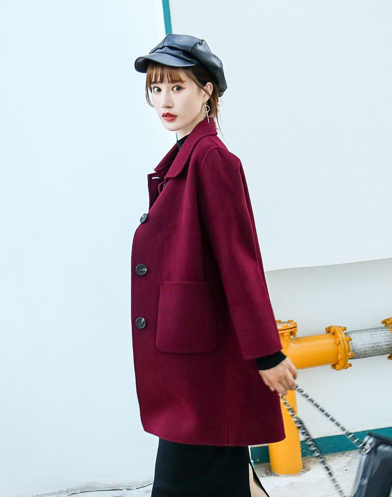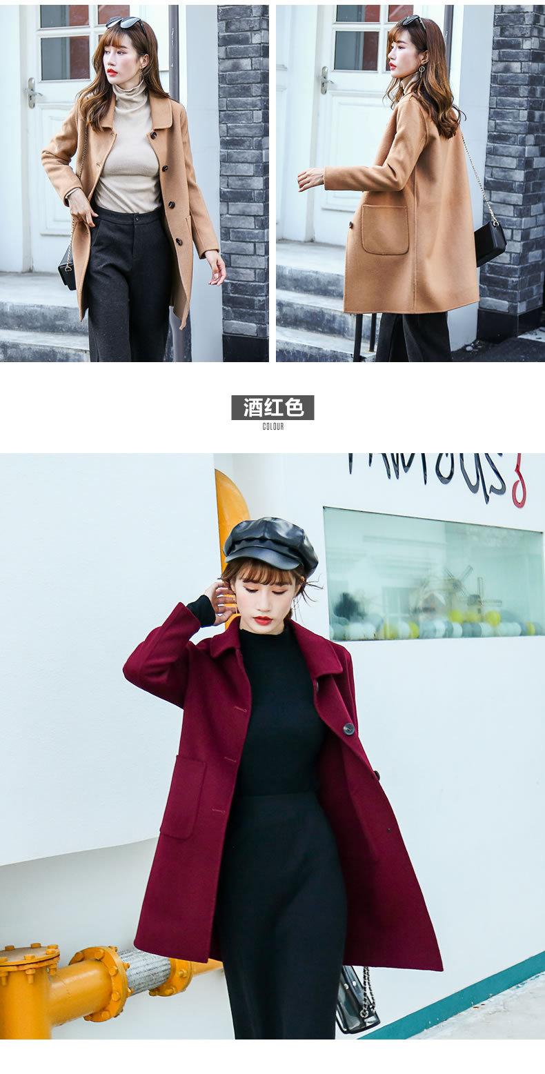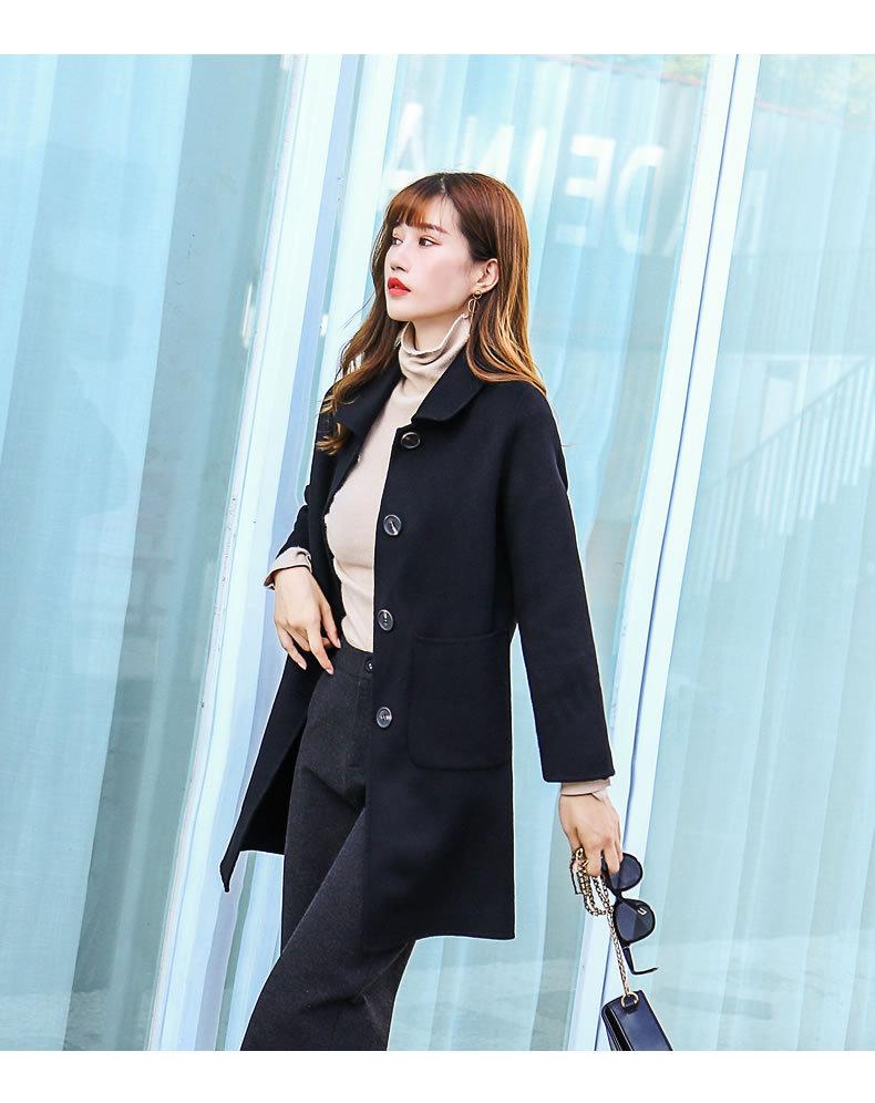 Otoño e Invierno Estilo Coreano Nuevo Abrigo de Lana de Doble Vista para Mujer Corto Ajustado a la Moda Color Sólido Lana Abrigo para Mujer Talla Grande