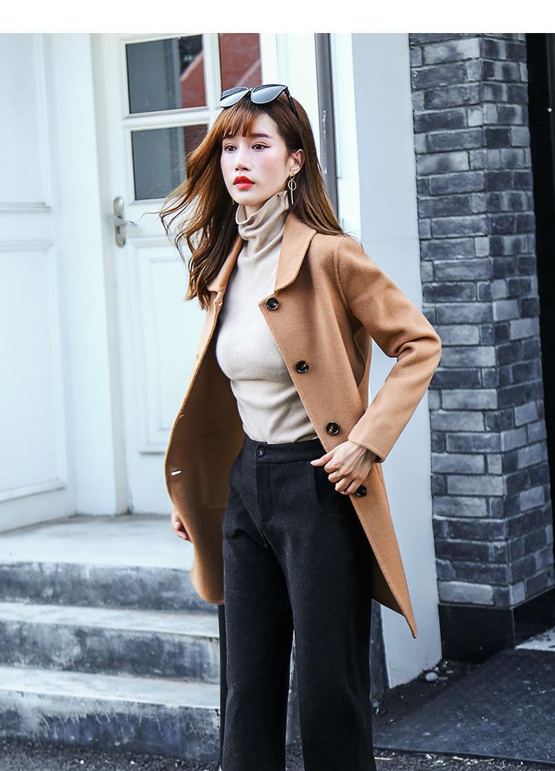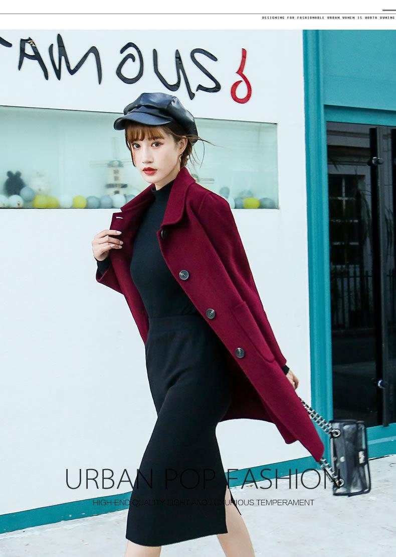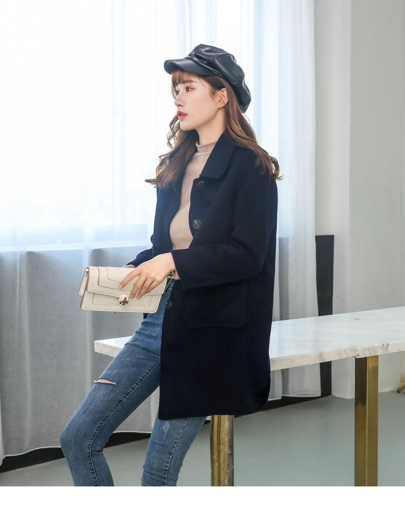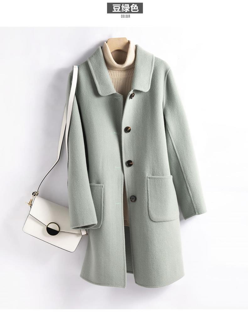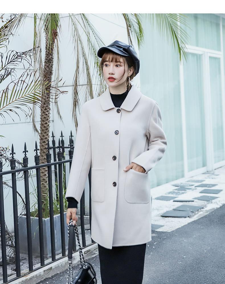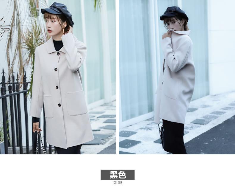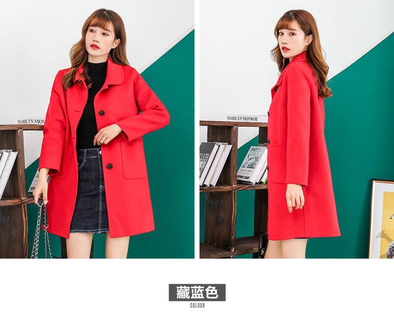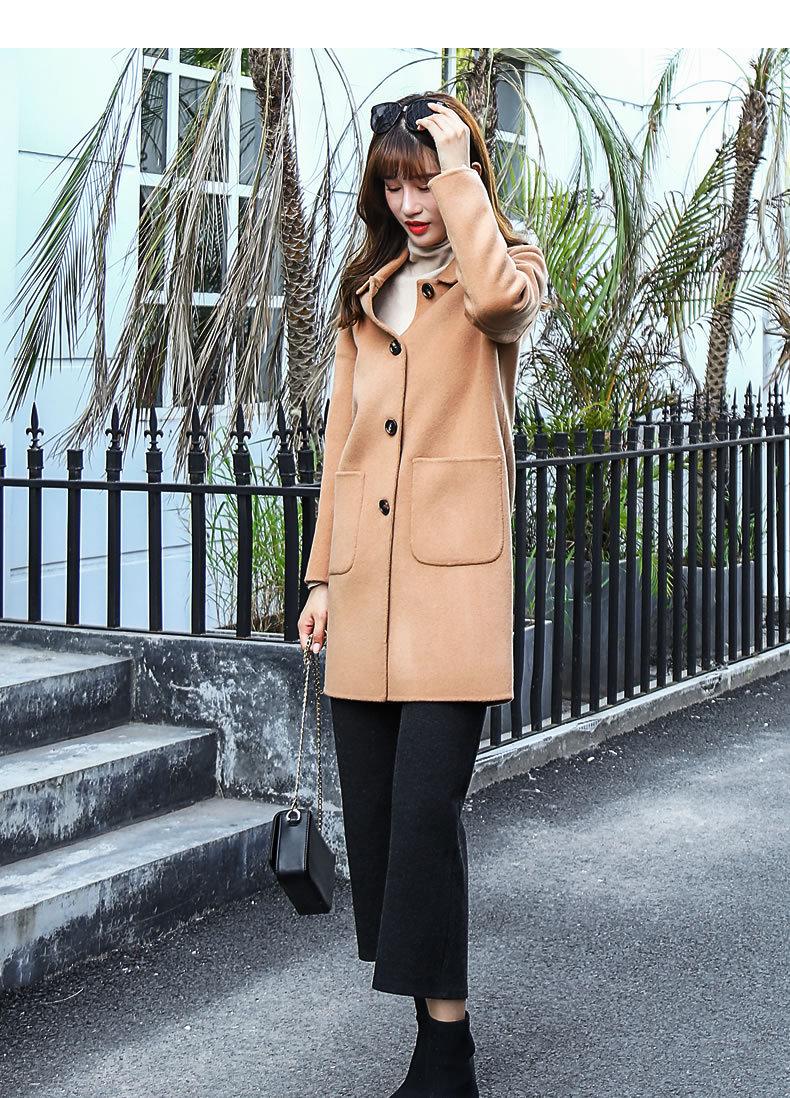 Otoño e Invierno Estilo Coreano Nuevo Abrigo de Lana de Doble Vista para Mujer Corto Ajustado a la Moda Color Sólido Lana Abrigo para Mujer Talla Grande