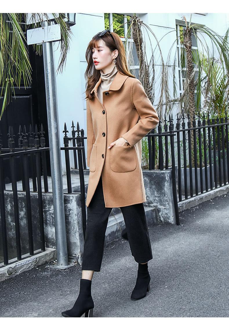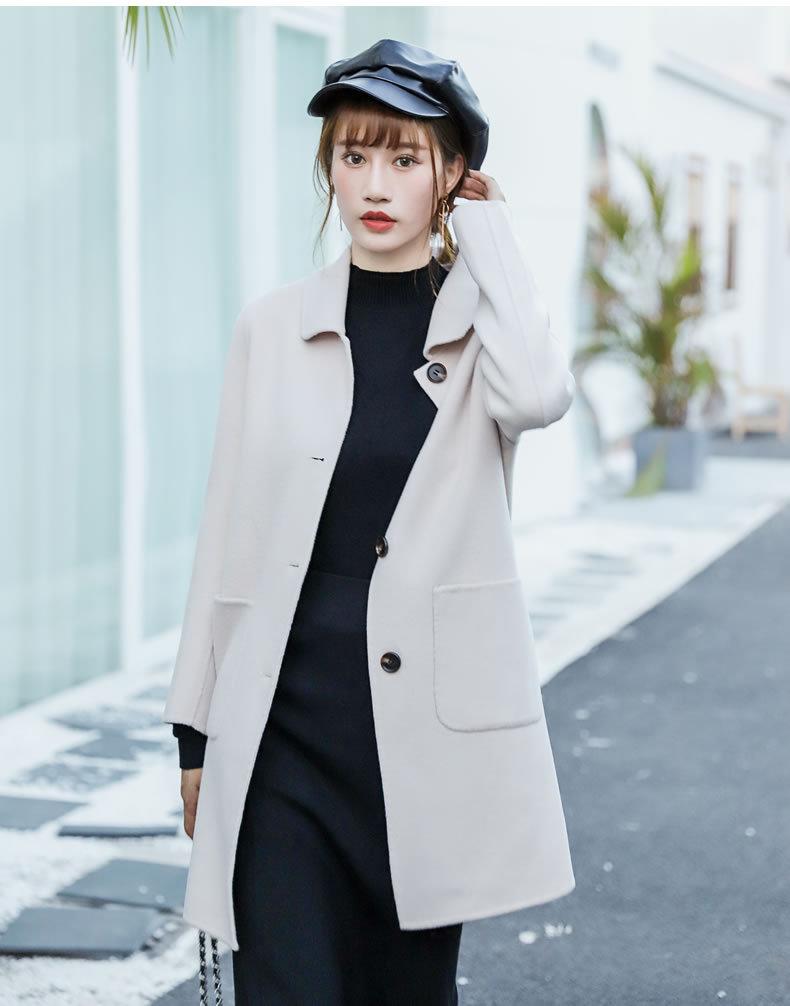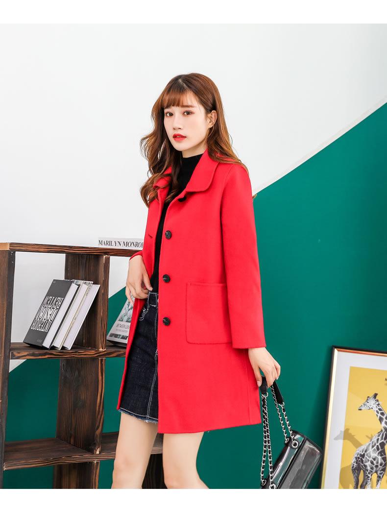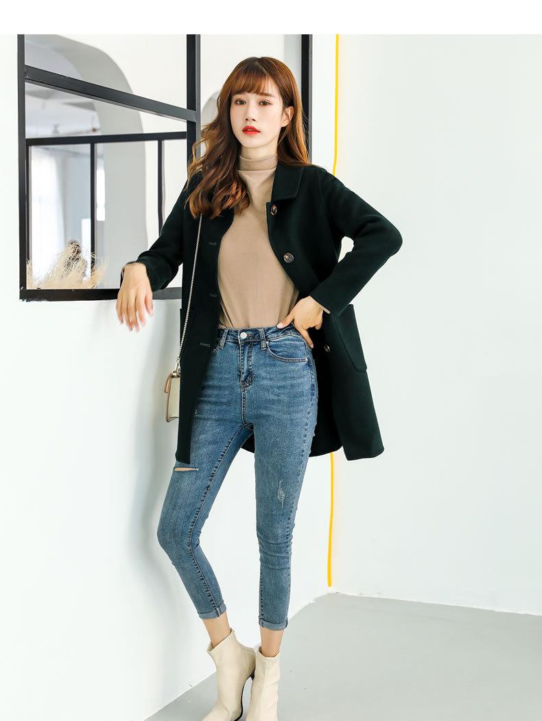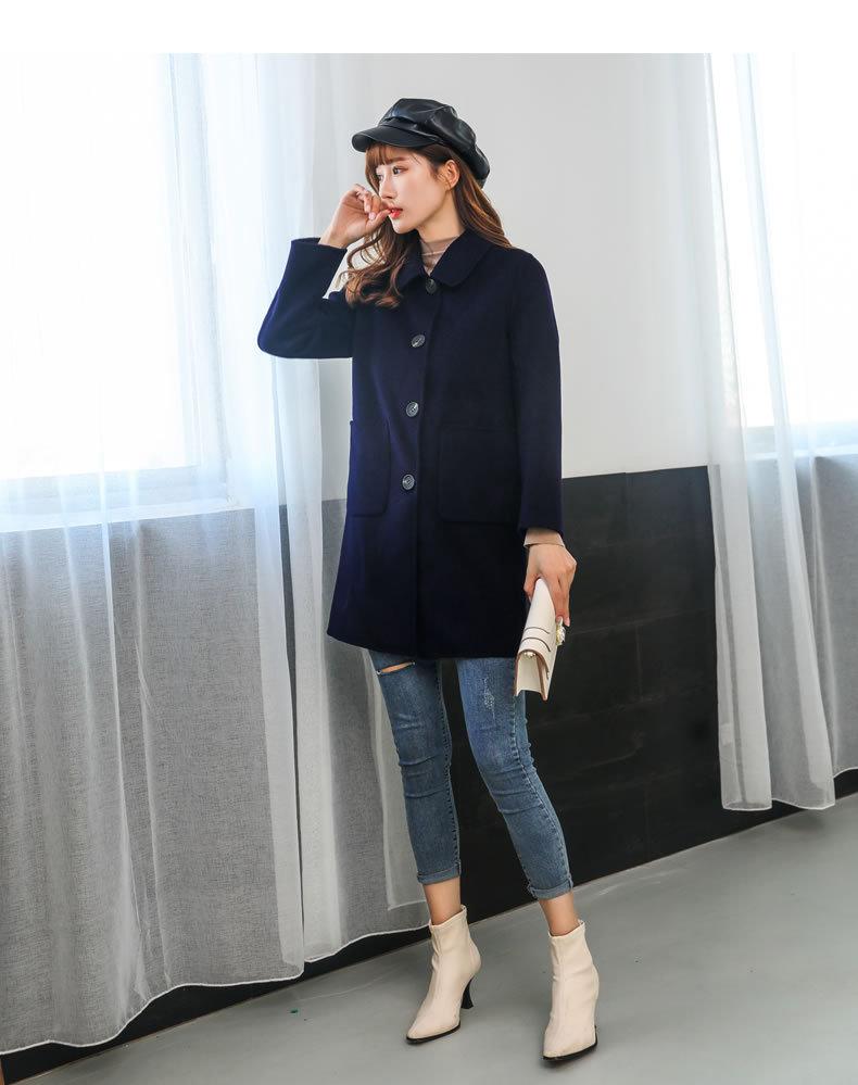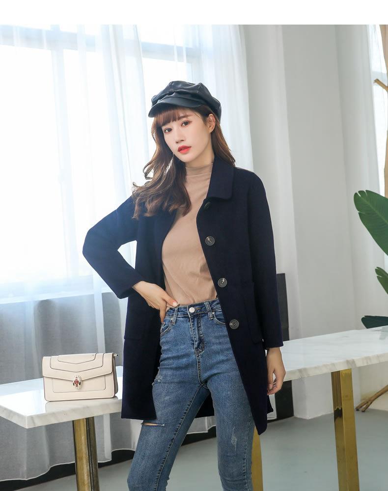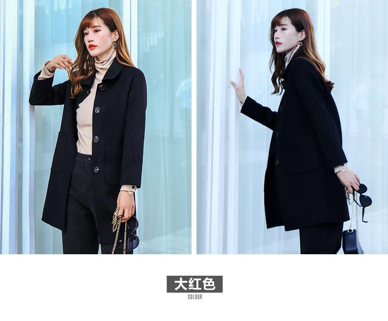 Otoño e Invierno Estilo Coreano Nuevo Abrigo de Lana de Doble Vista para Mujer Corto Ajustado a la Moda Color Sólido Lana Abrigo para Mujer Talla Grande
