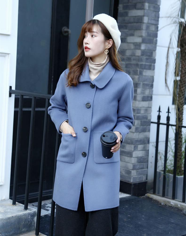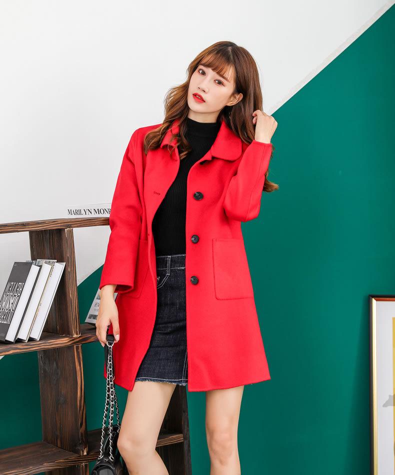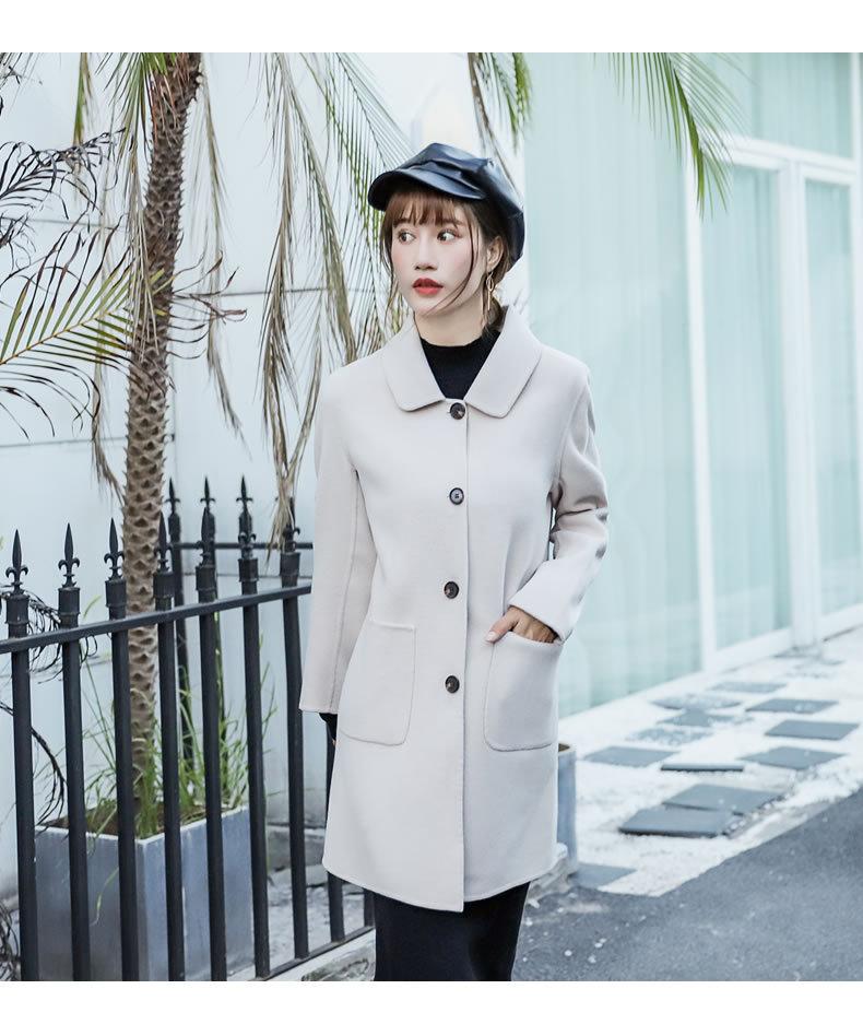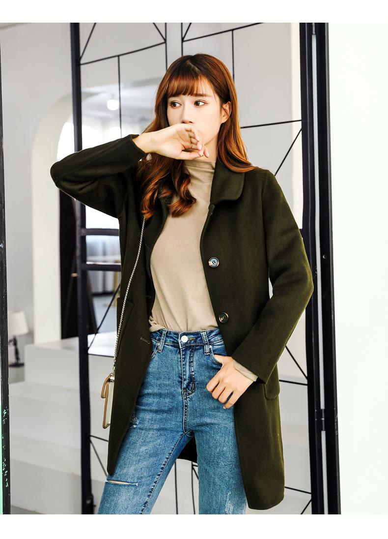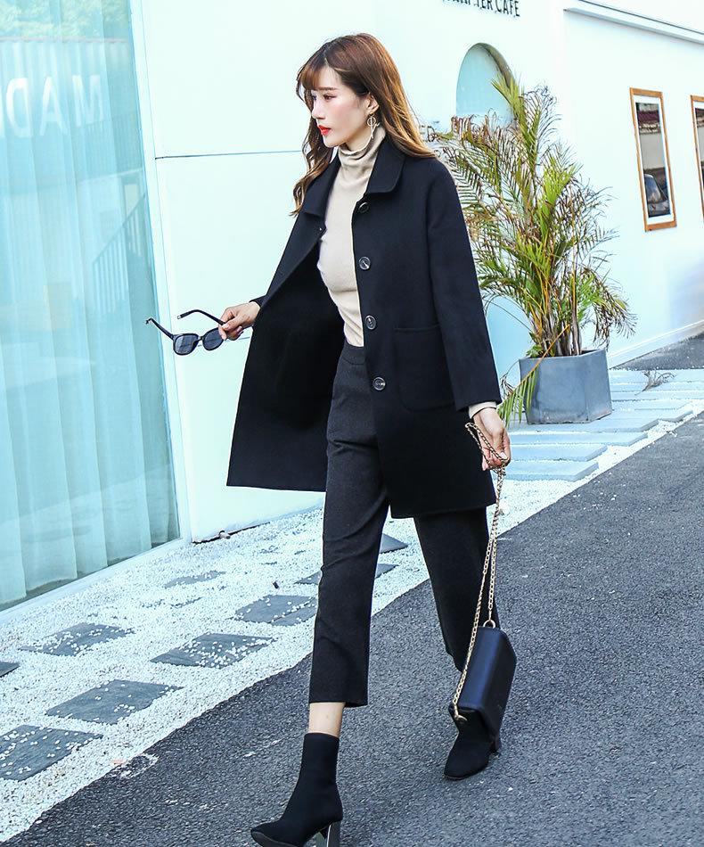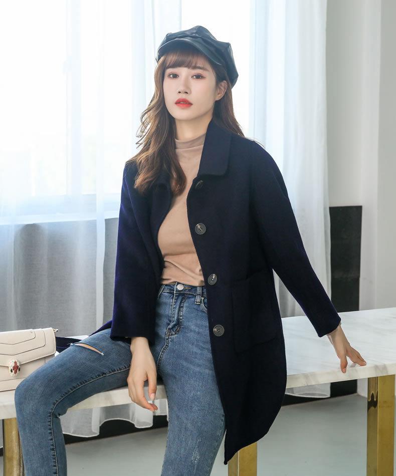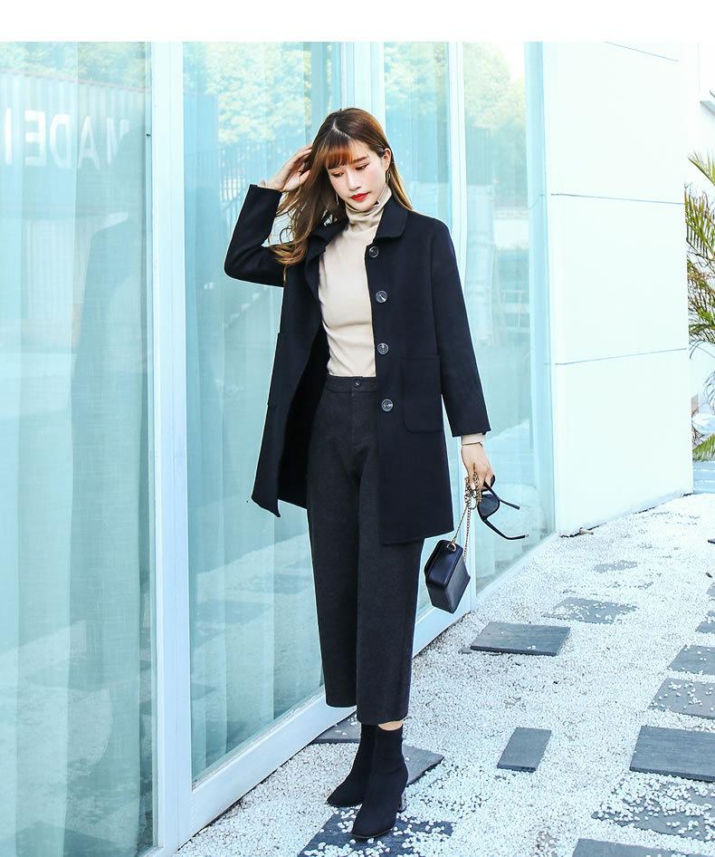 Otoño e Invierno Estilo Coreano Nuevo Abrigo de Lana de Doble Vista para Mujer Corto Ajustado a la Moda Color Sólido Lana Abrigo para Mujer Talla Grande