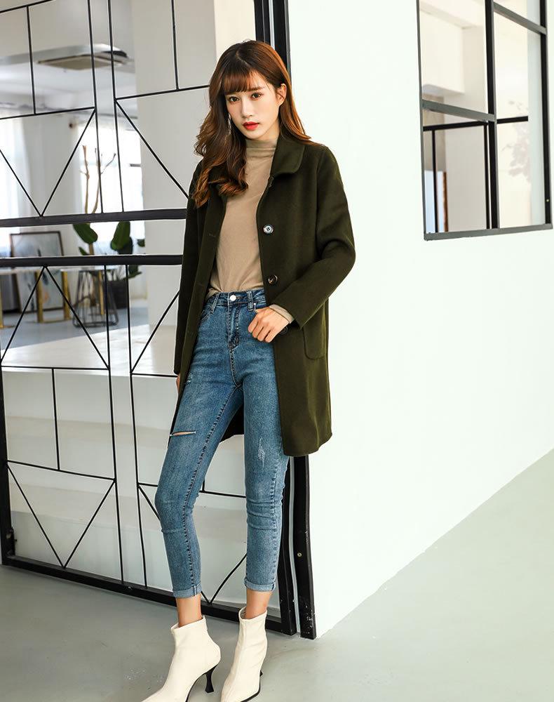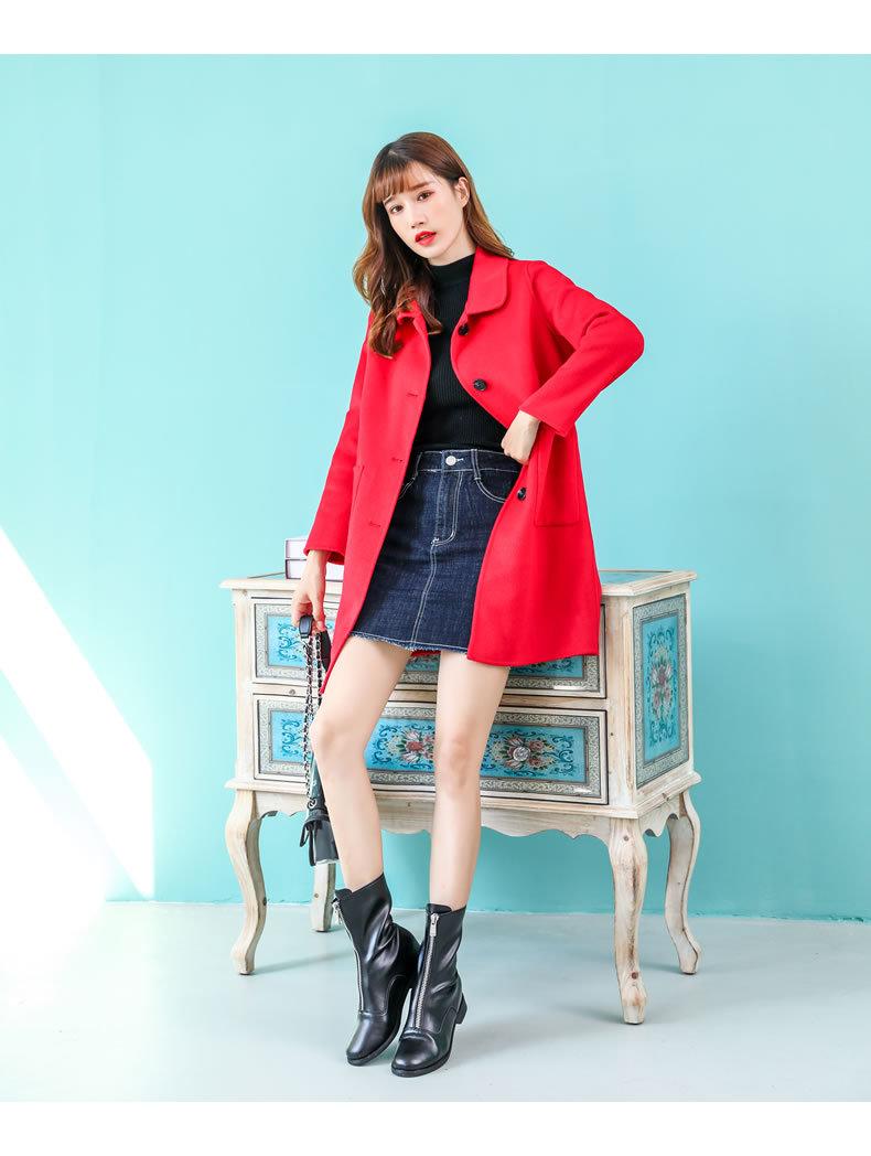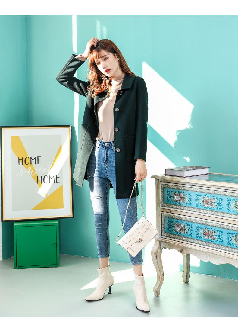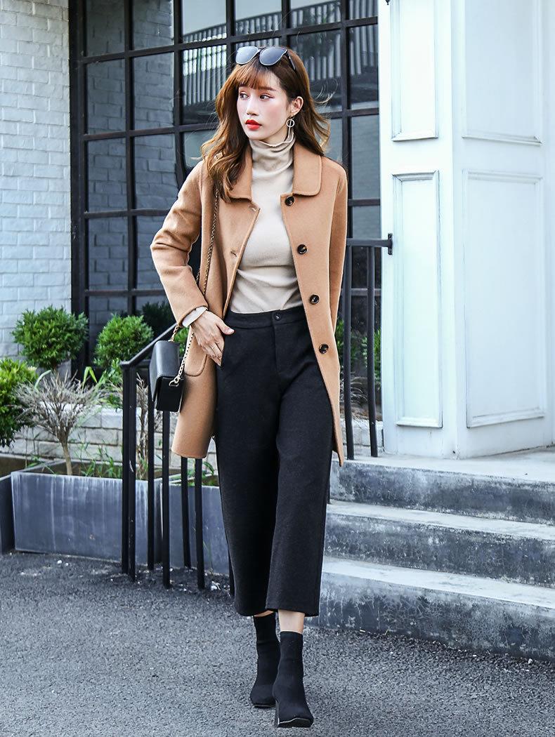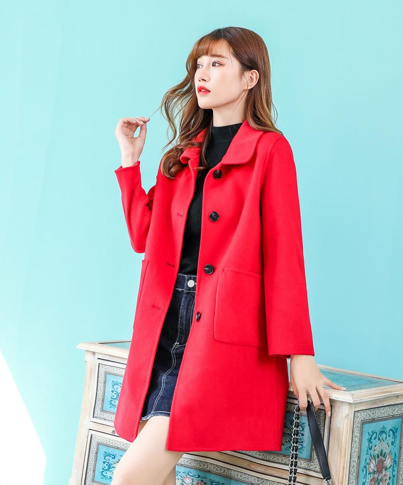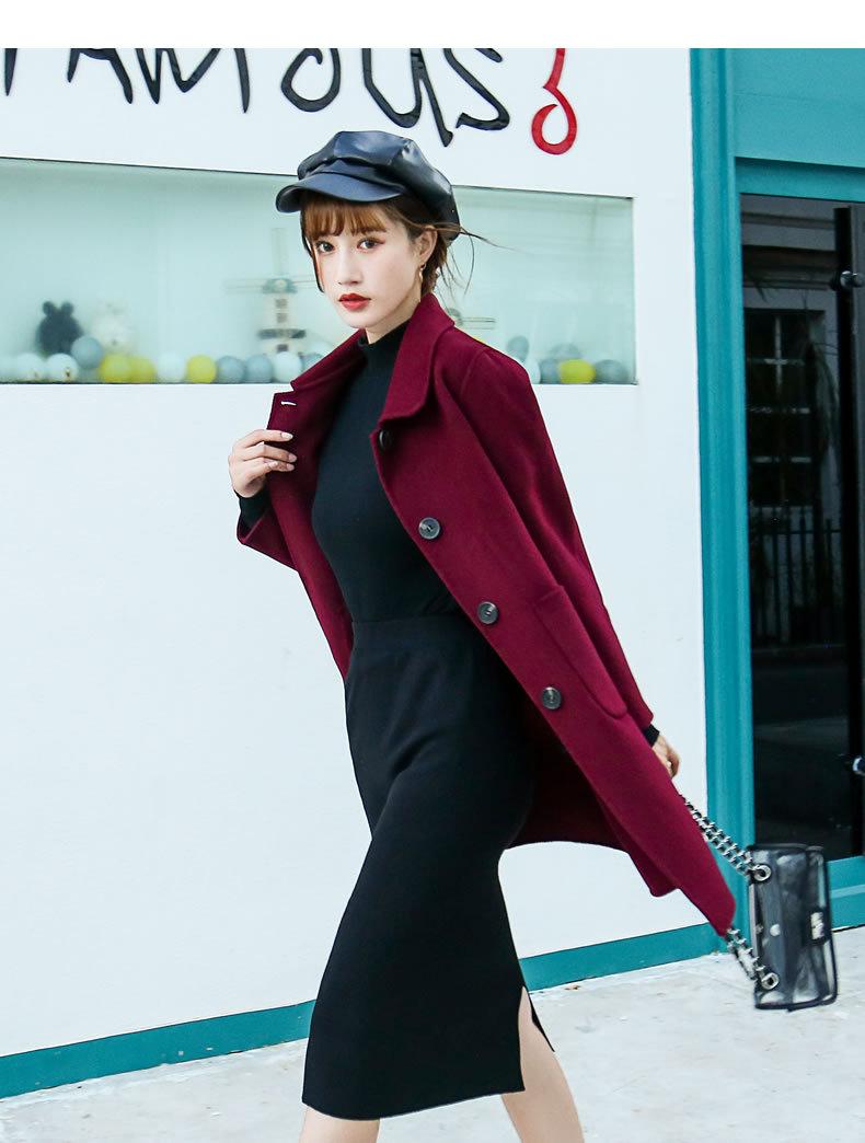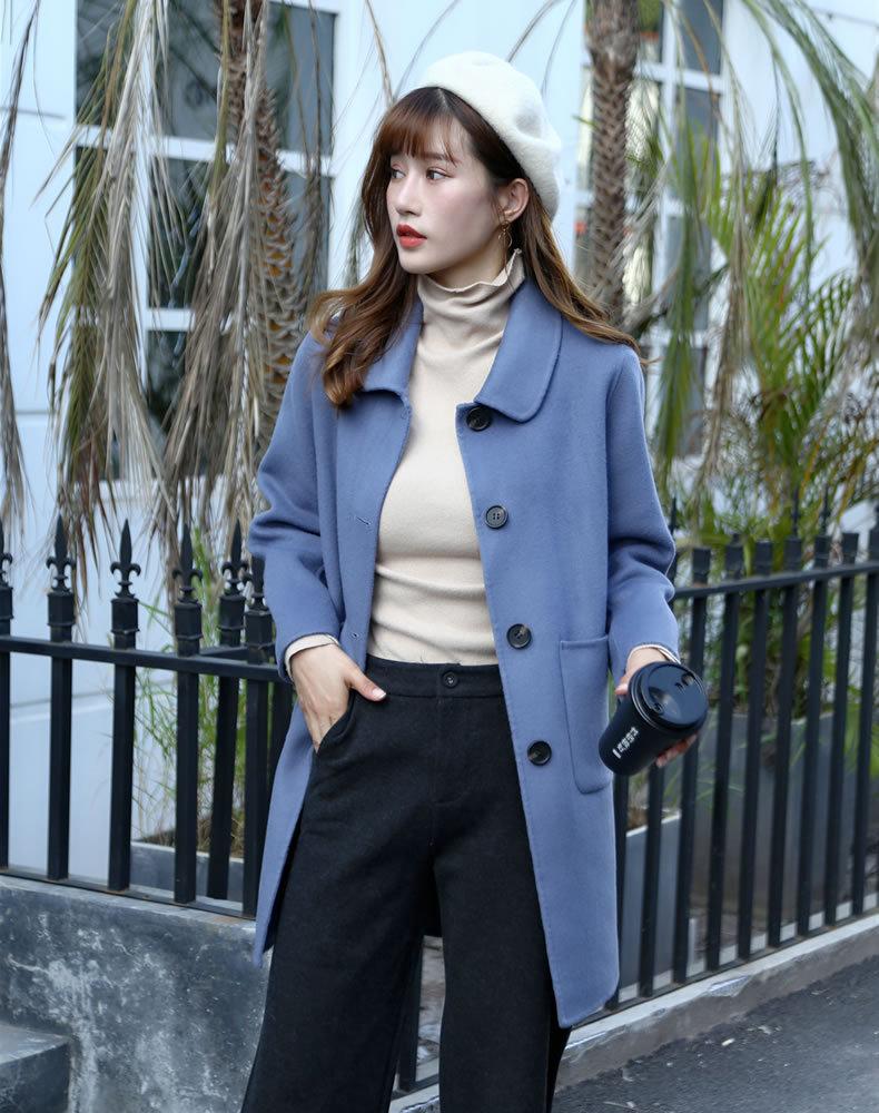 Otoño e Invierno Estilo Coreano Nuevo Abrigo de Lana de Doble Vista para Mujer Corto Ajustado a la Moda Color Sólido Lana Abrigo para Mujer Talla Grande