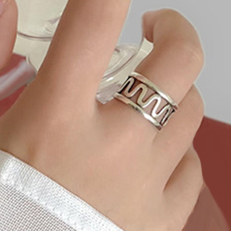 Anillo de onda hueca diseño viento frío sensación en tendencia personalidad rojo neto hip hop anillo de línea suministro de fábrica