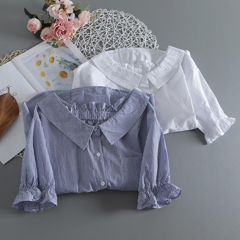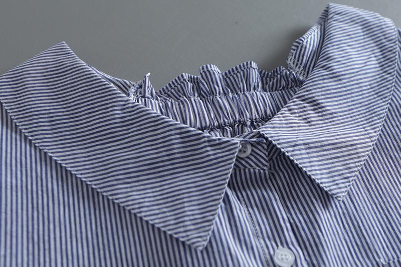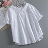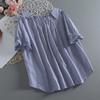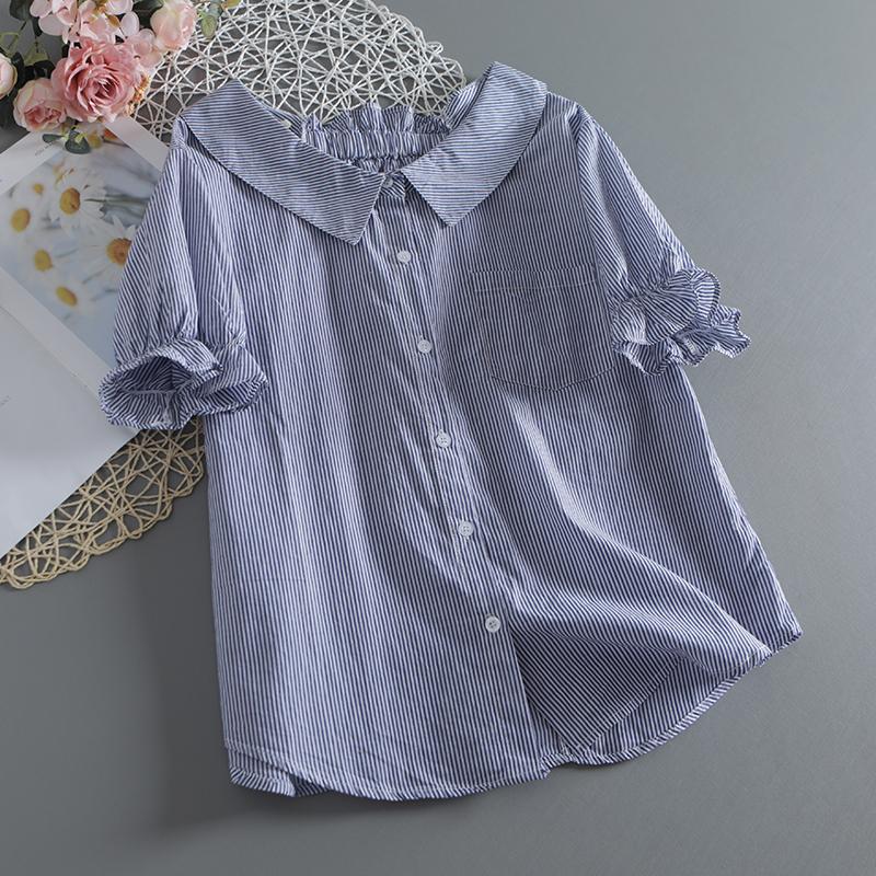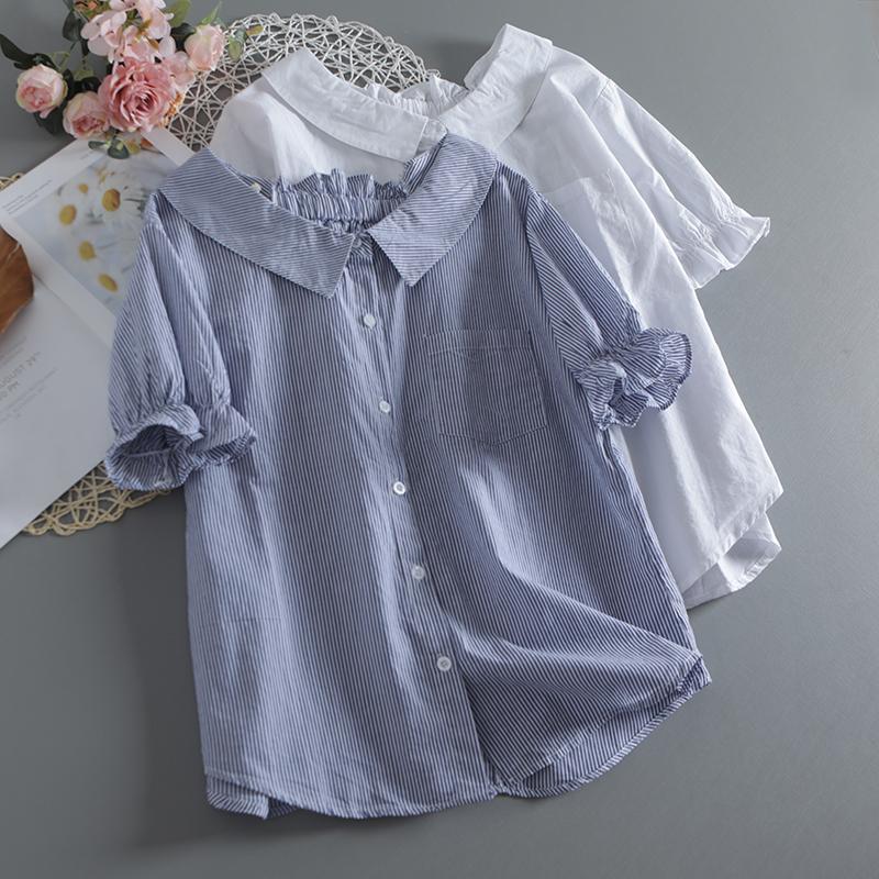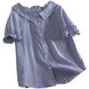 Nuevo Estilo Pequeño Fresco Solapa Camisa Rayada para Mujer Suelta Diseño Versátil Manga Corta Cárdigan Ropa de Verano Camisa Blanca Trendy
