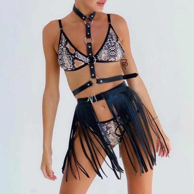 Zvz Falda Corta con Flecos de Cuero Estilo Cinturón Corsé de Cuero para Mujer Europeo y Americano Sexy Decorativo Cintura de Cuero PU