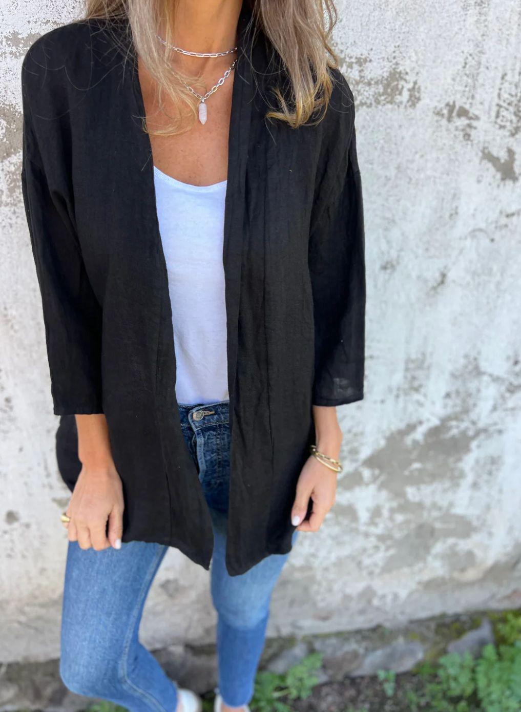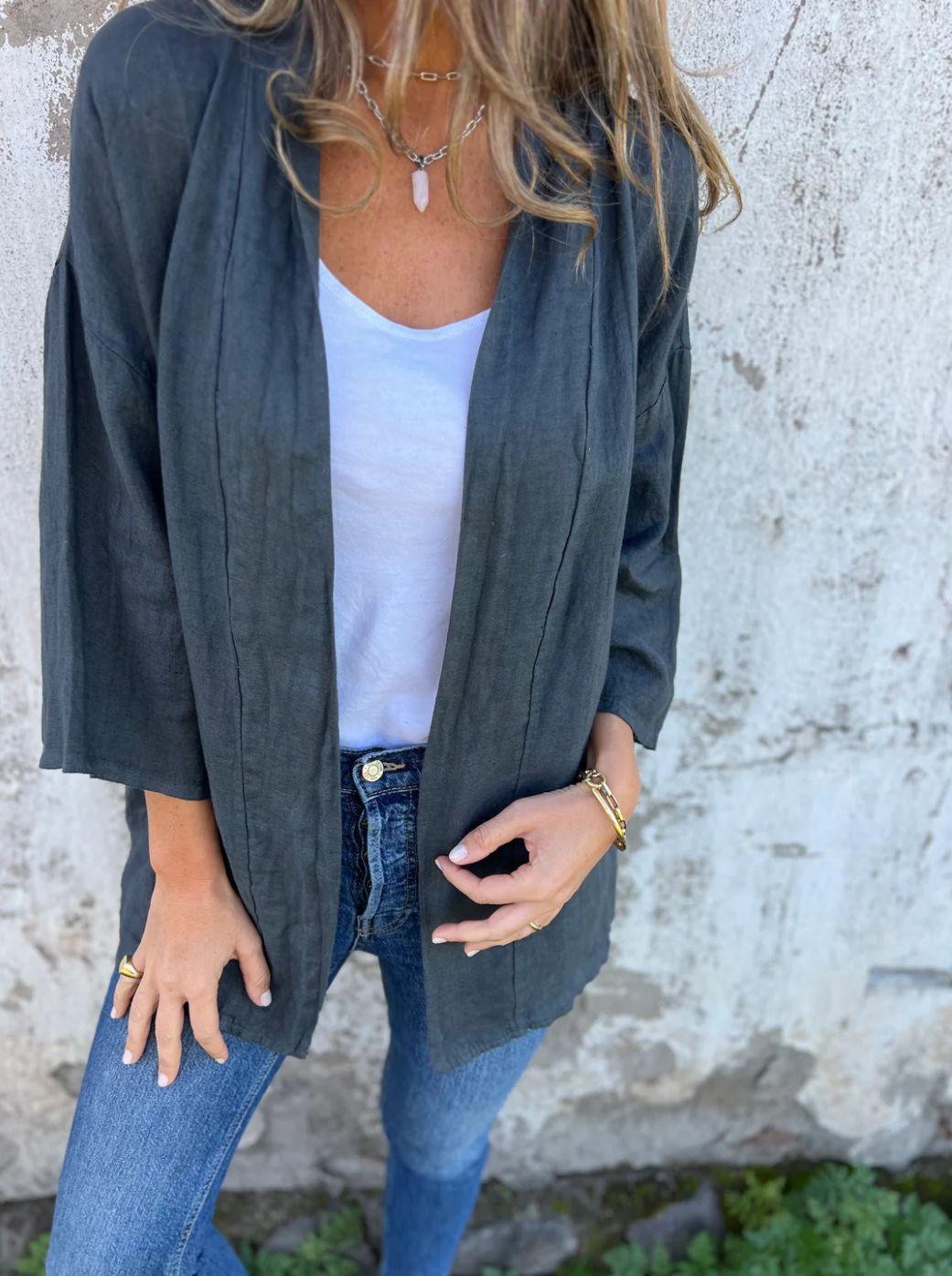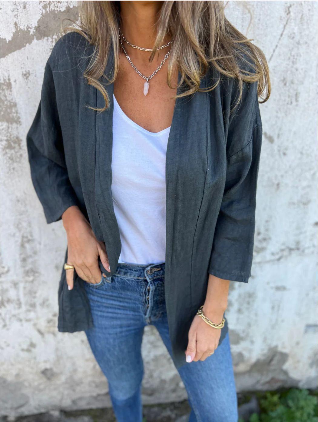 Cárdigan Nuevo Otoño e Invierno Europeo y Americano 2025 Color Sólido Casual Suelto con Bolsillos Top para Mujer