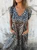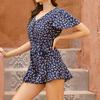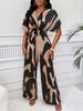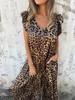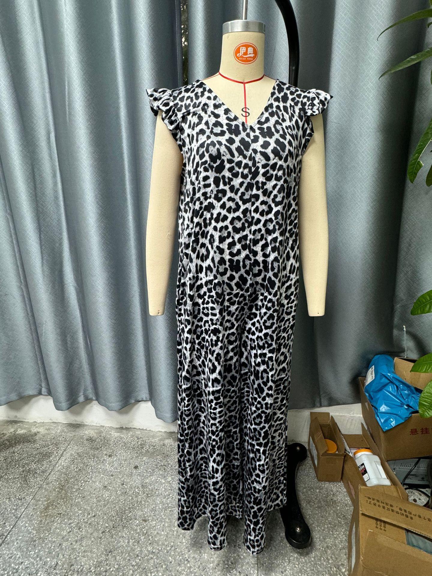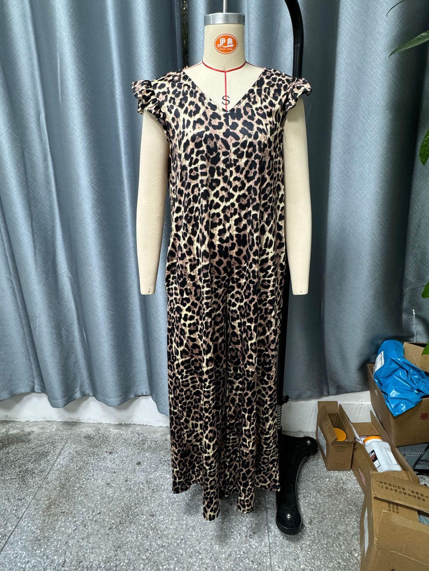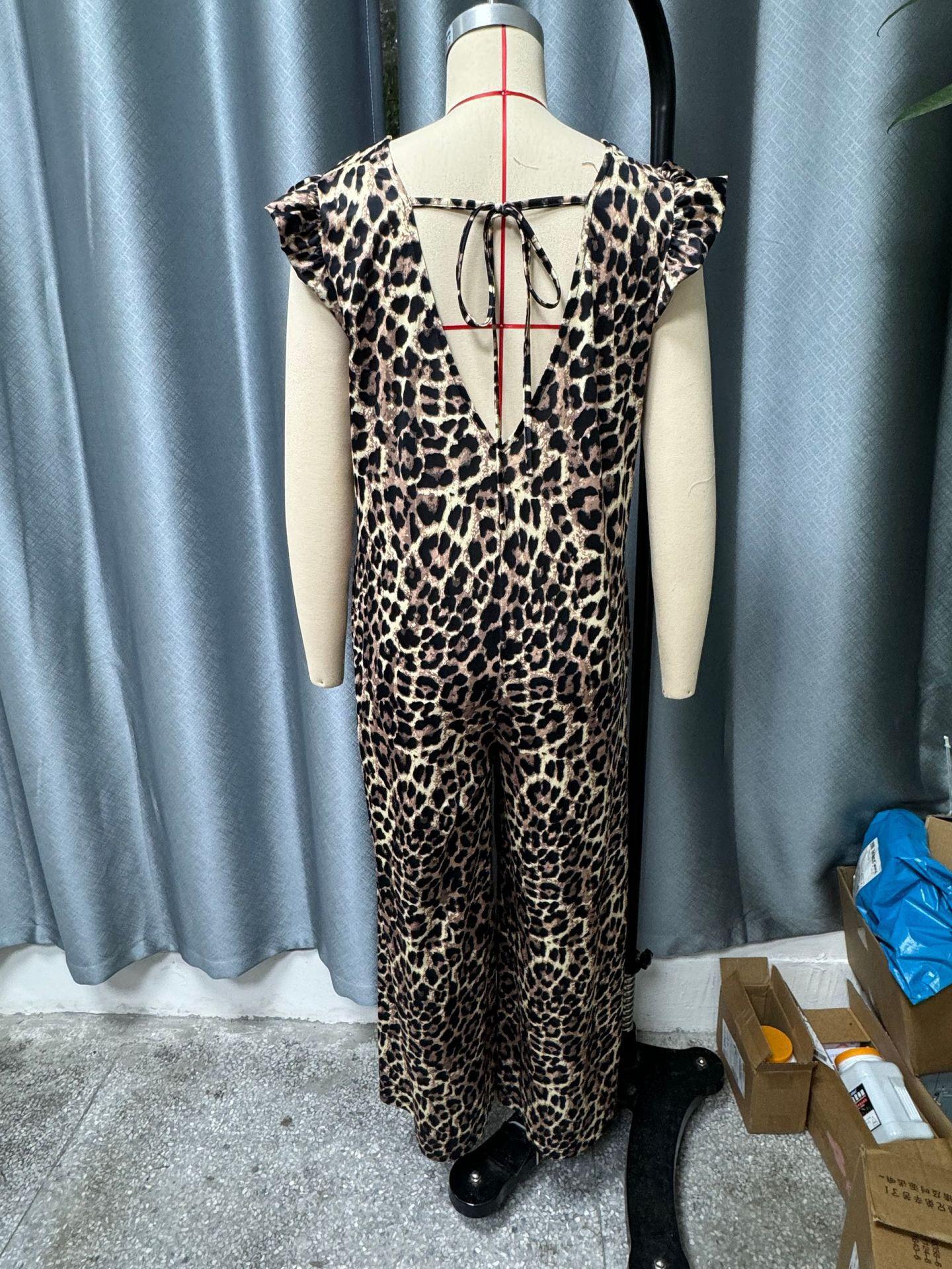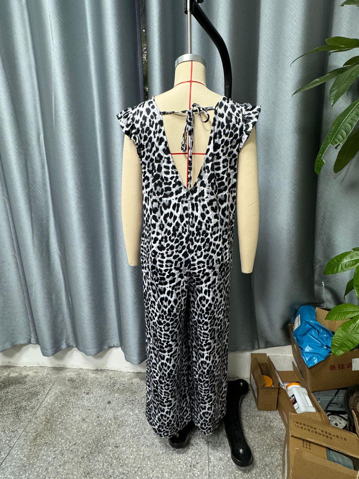 Estación Independiente de Amazon Moda Femenina Transfronteriza Europea y Americana Estampado de Leopardo Manga Volante Mono Holgado de Pierna Ancha para Mujer