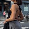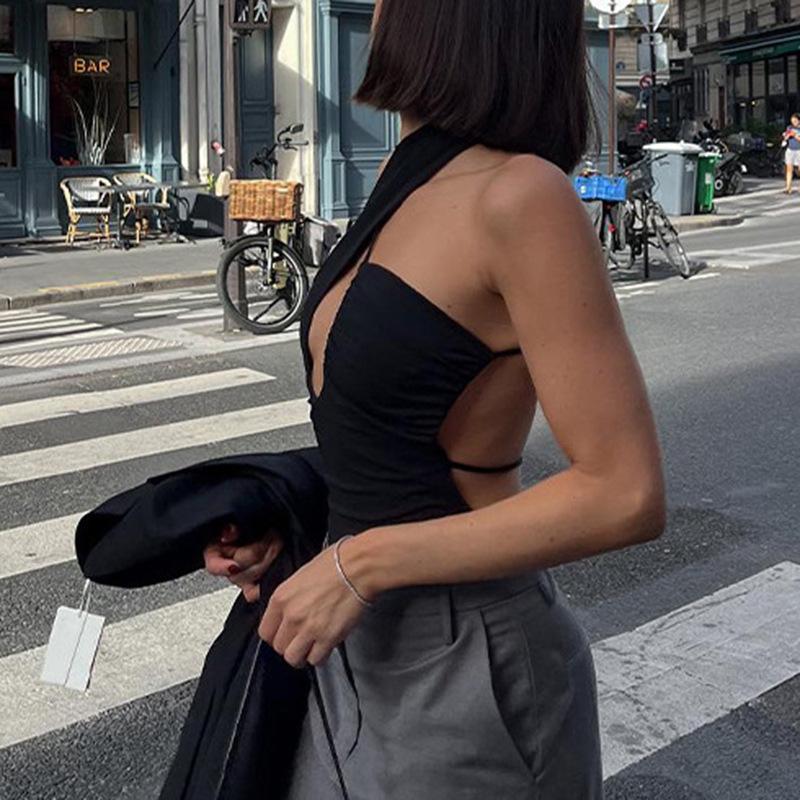 Verano 2025 Nuevo Street Fashion Chica Hot Sexy Ajustado Cruzado Halter Recorte Espalda Grande Descubierta Calado Mono