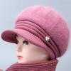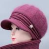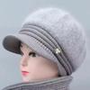 Sombrero de lana de lengua de pato para mujeres de mediana edad y mayores para invierno, sombrero de abuela con forro polar a prueba de frío y cálido, sombrero tejido de pelo de conejo