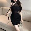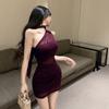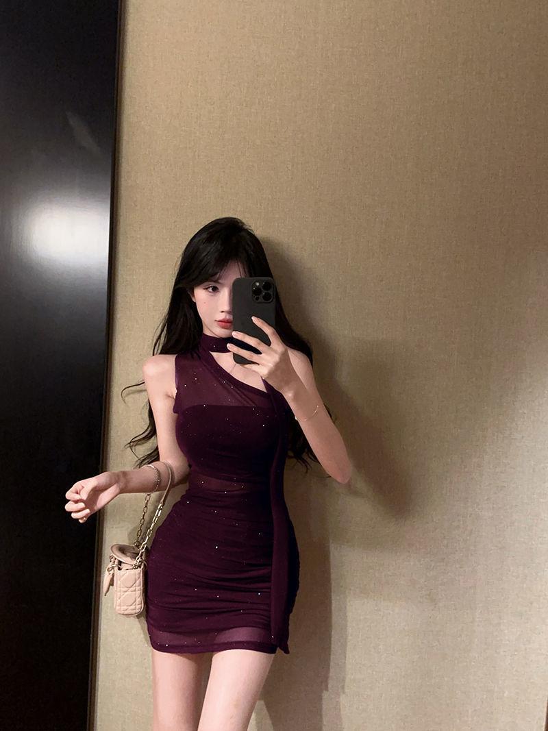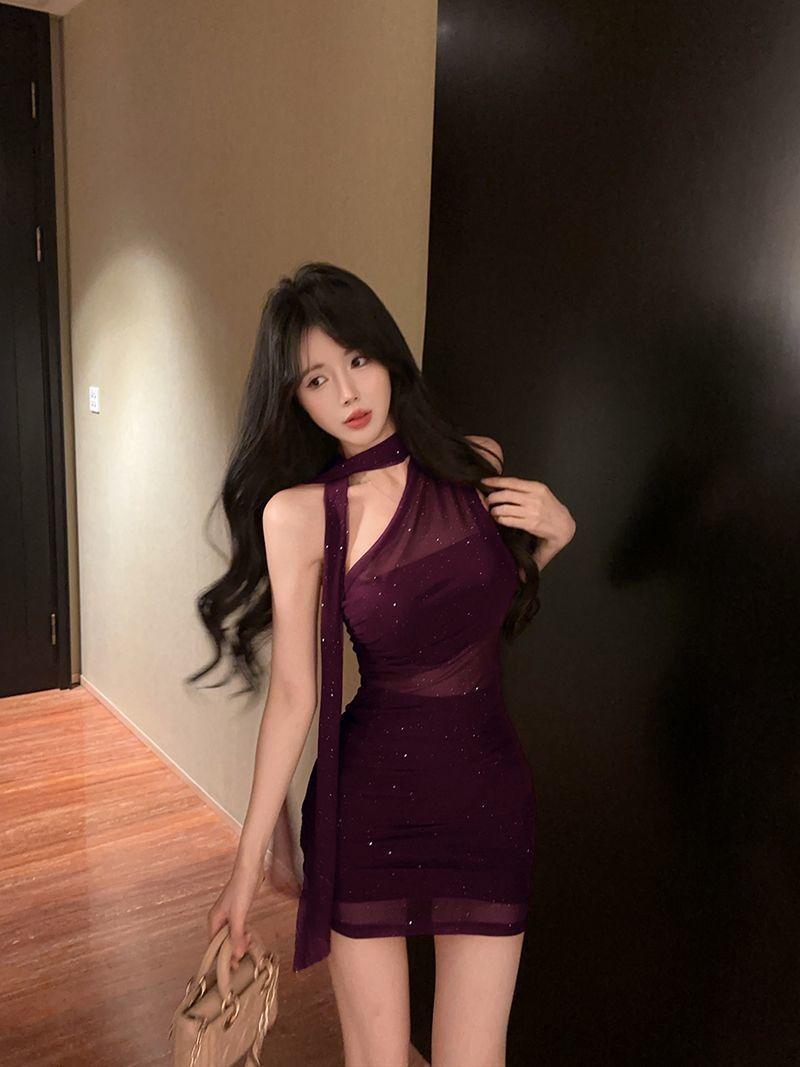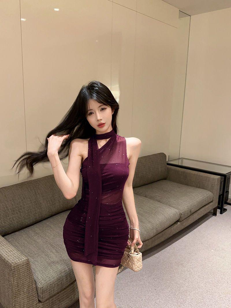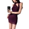 Vestido de malla estilo halter de puro deseo sexy para mujer, nuevo diseño de verano, ajustado y estilizado, falda que se ajusta a la cadera