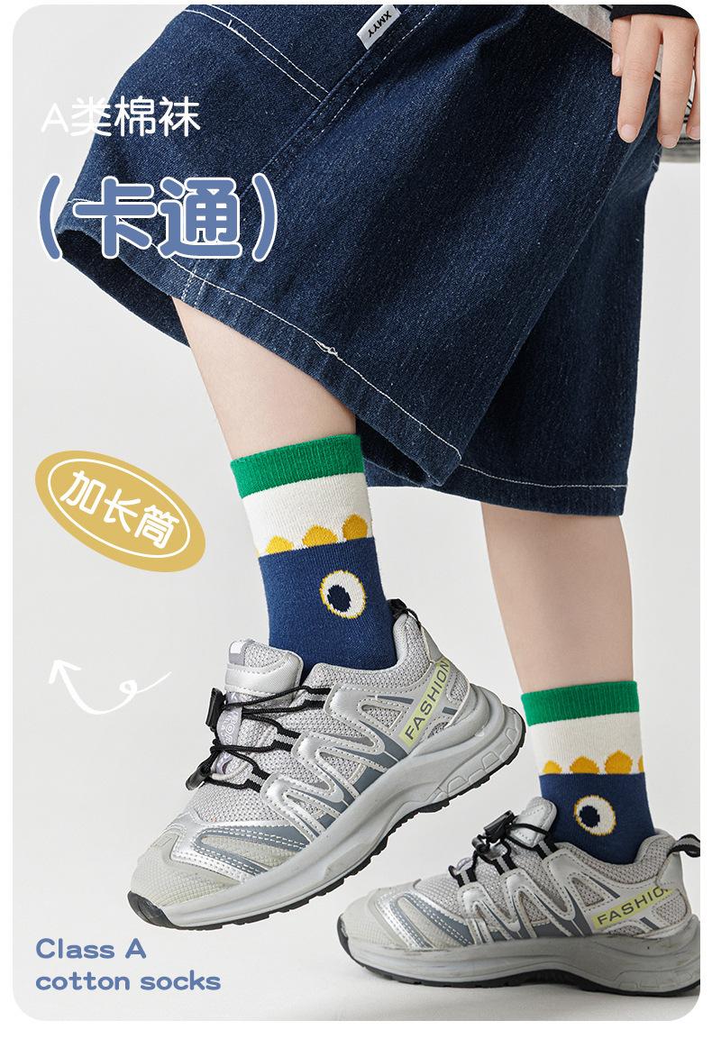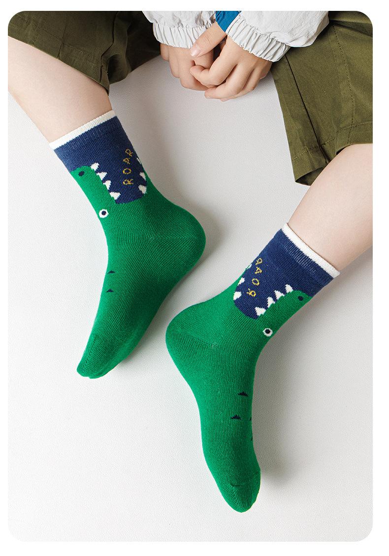 Calcetines para niños Clase A Dibujo animado Dinosaurio Calcetines para niños Otoño e Invierno Calcetines de media caña Primavera y Otoño Calcetines para bebé Transpirables Calcetines de algodón para niños