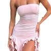 Tendencia de moda de primavera transfronteriza 2025, ropa de mujer, nuevo vestido irregular ajustado con top de tubo de un solo hombro y envuelto en la cadera para mujer