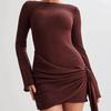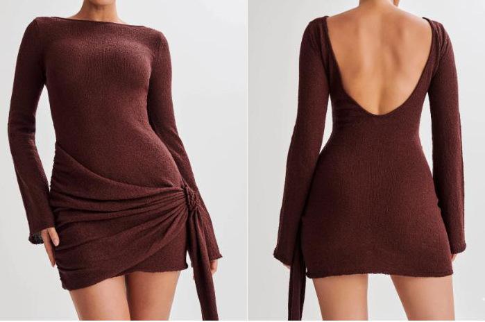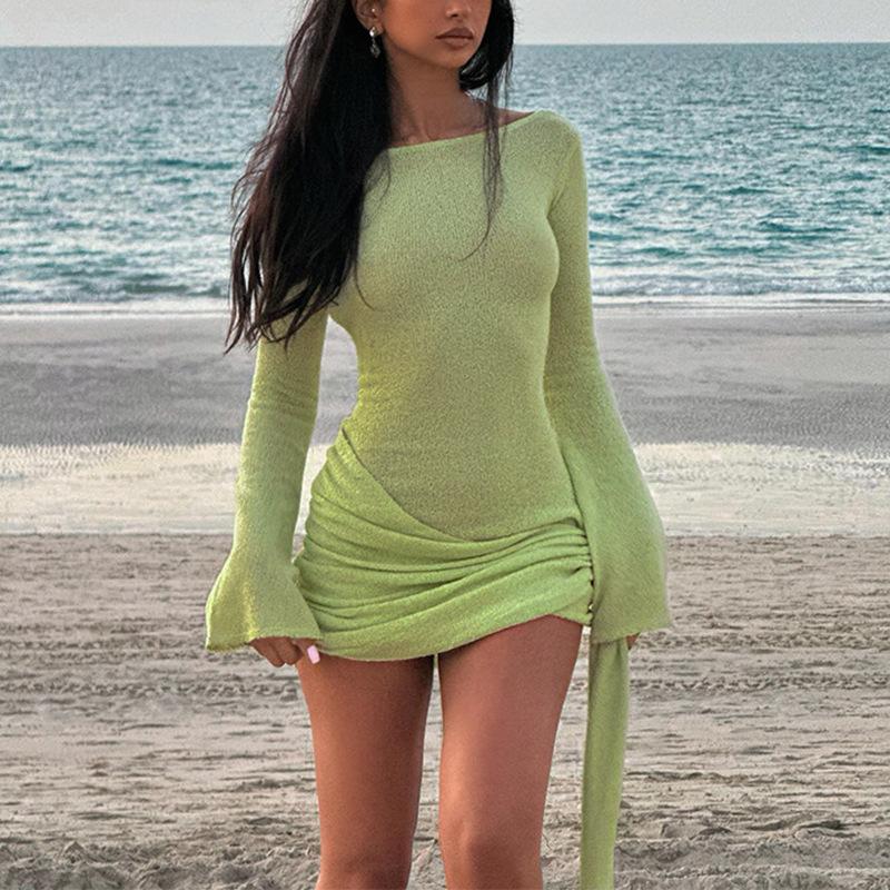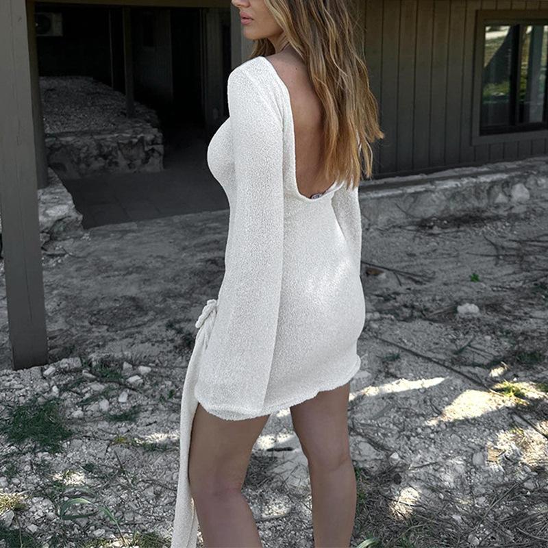 Compra Europeo y Americano Transfronterizo de Verano Nuevo Moda Manga Larga Falda de Cadera Sexy Espalda Descubierta Ajustado Vestido Tejido al por mayor en Joom.pro