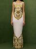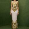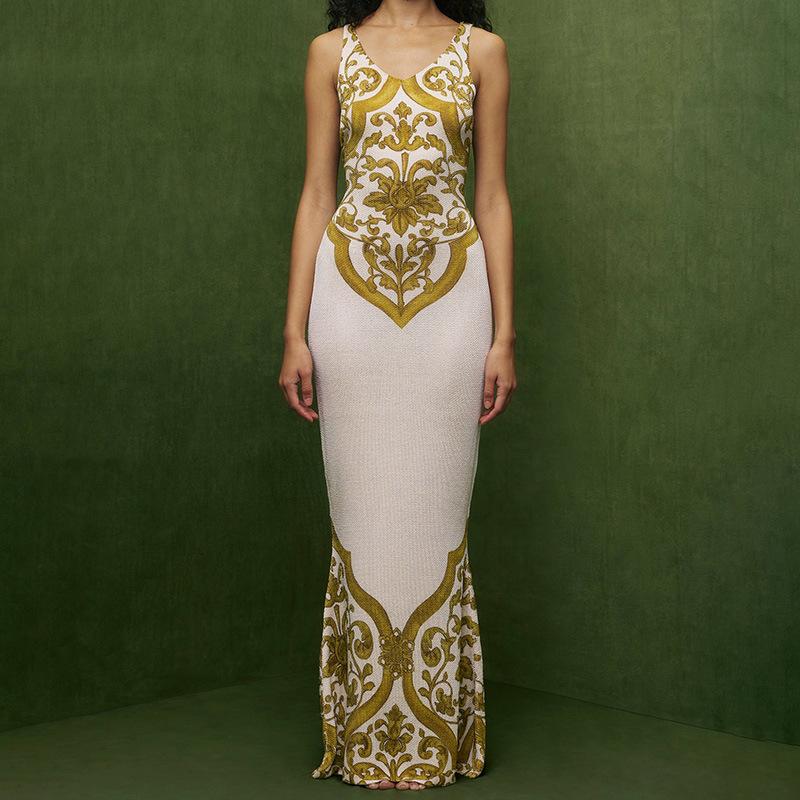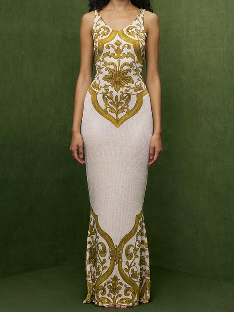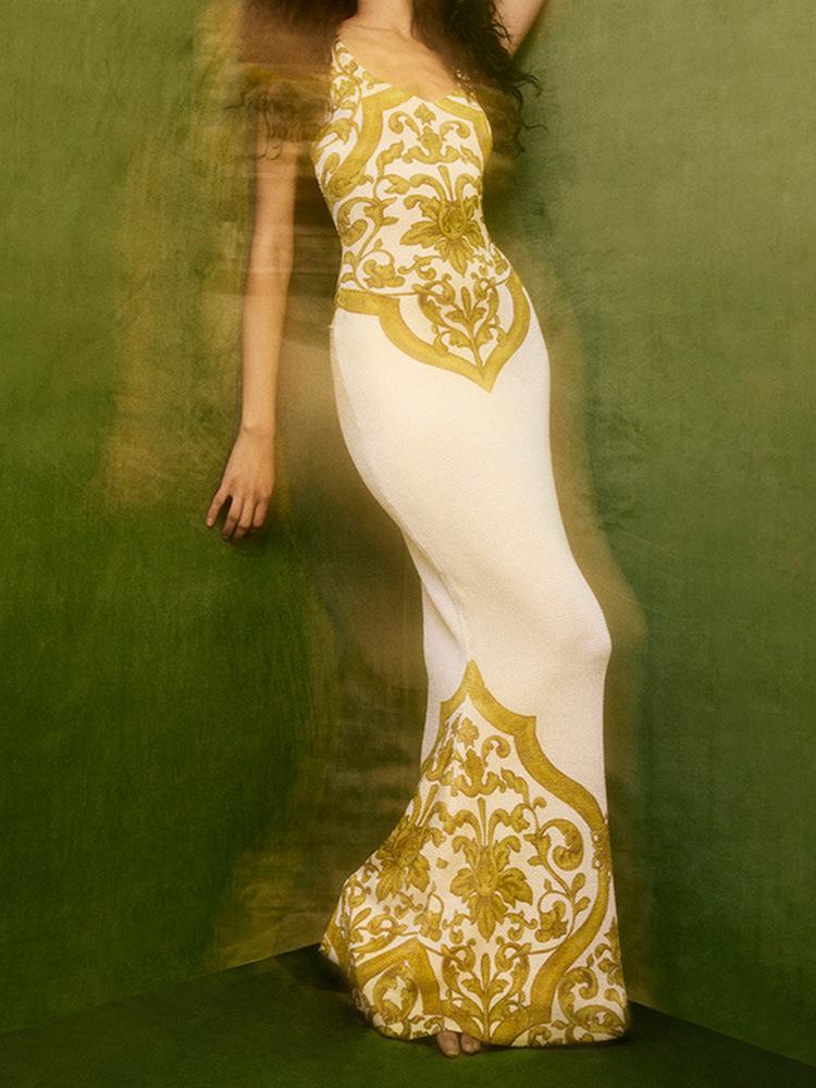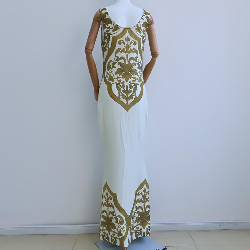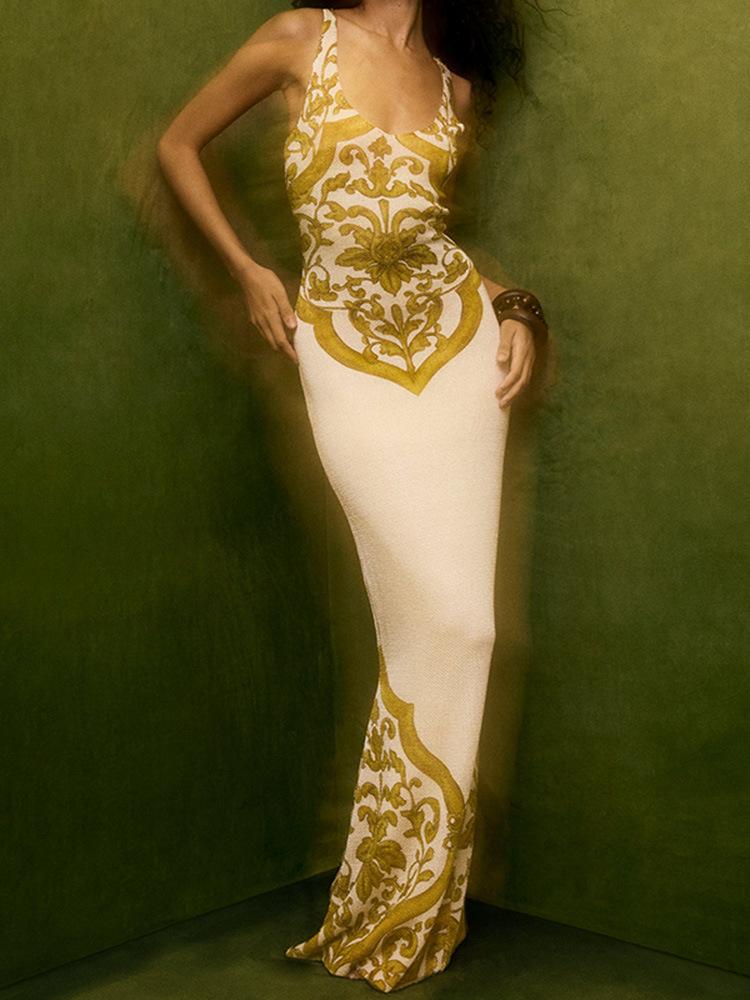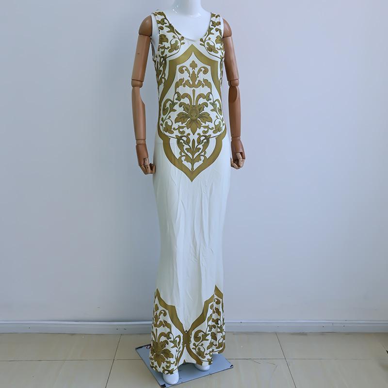 Ropa de Mujer Transfronteriza Europea y Americana 2024 Verano Nuevo Vestido Largo Francés de Cintura Estampado sin Espalda sin Mangas Ajustado