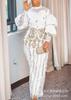 Top Elegante de Viajero Bordado de Manga Larga Europeo y Americano Transfronterizo Conjunto de Dos Piezas de Pantalón con Borlas y Falda para Mujer