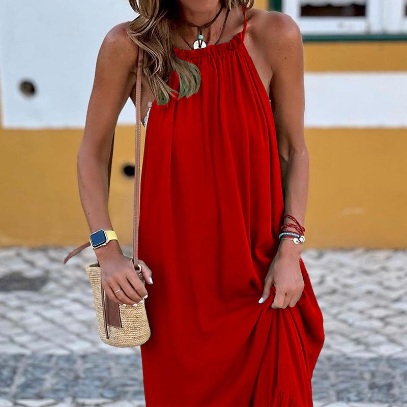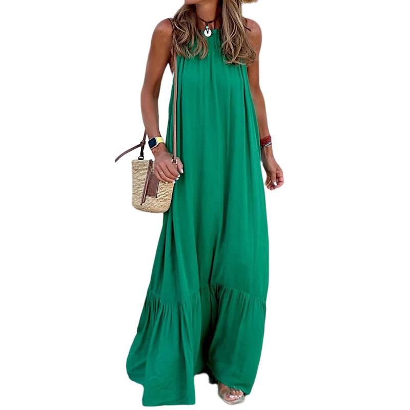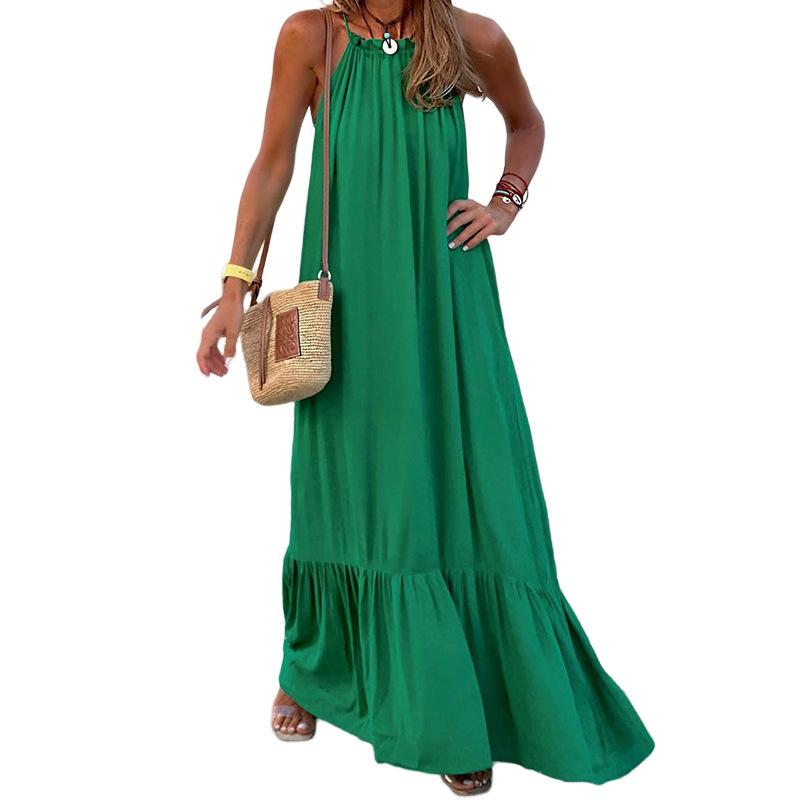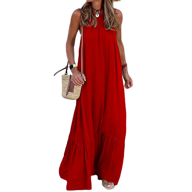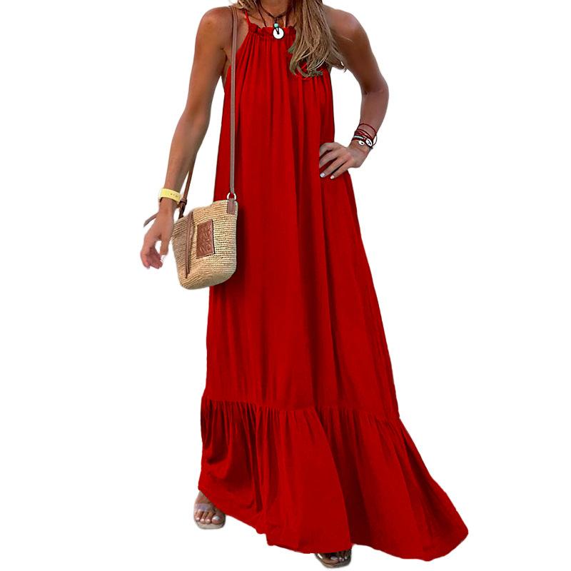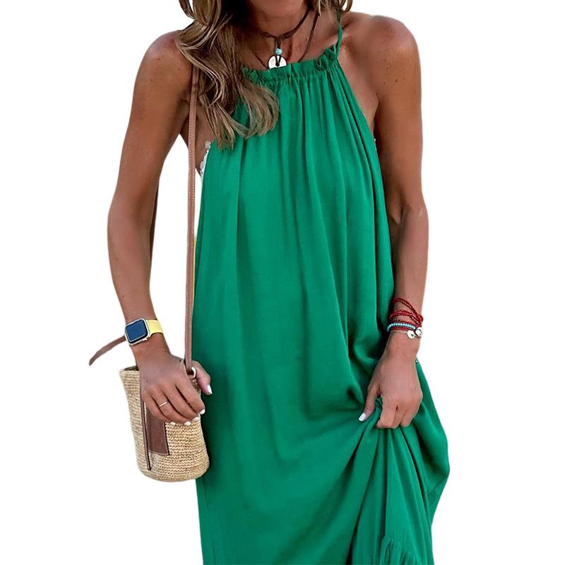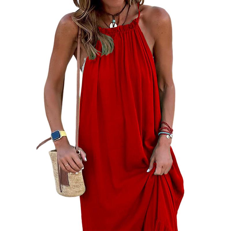 FD1450 en stock 2023 Primavera y Verano Nuevo Vestido Largo de Playa sin Mangas con Cuello Cruzado para Mujer