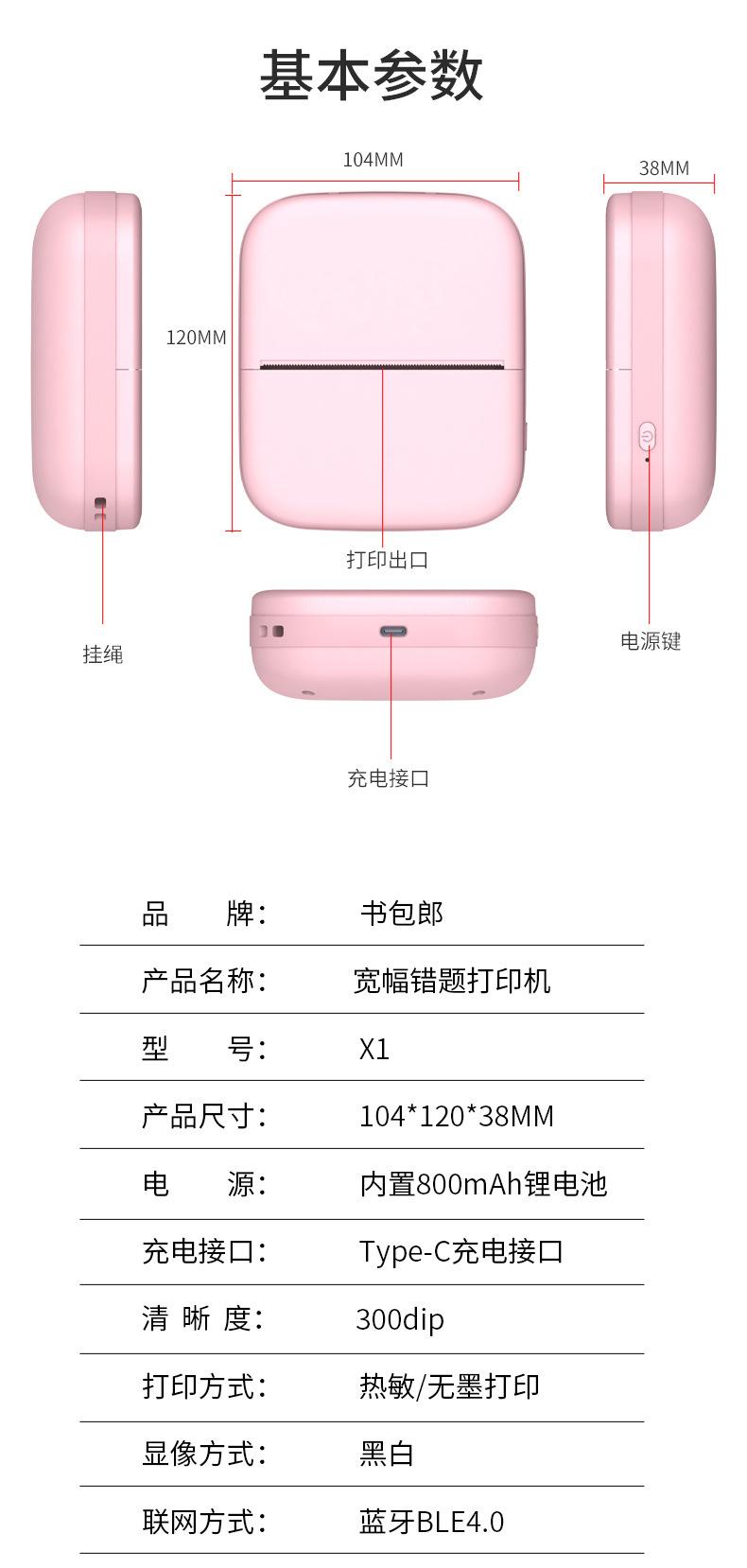 Impresora Portátil Mini de Formato Ancho Bolsillo para Estudiantes Etiqueta de Errores Foto Impresora Térmica Bluetooth Puede Ser Transfronteriza