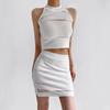 Elegante Conjunto de Falda para Mujer 2025 Otoño Nuevo Chica Hot Slim Deseo Puro Malla Patchwork Recorte Chaleco Sin Mangas