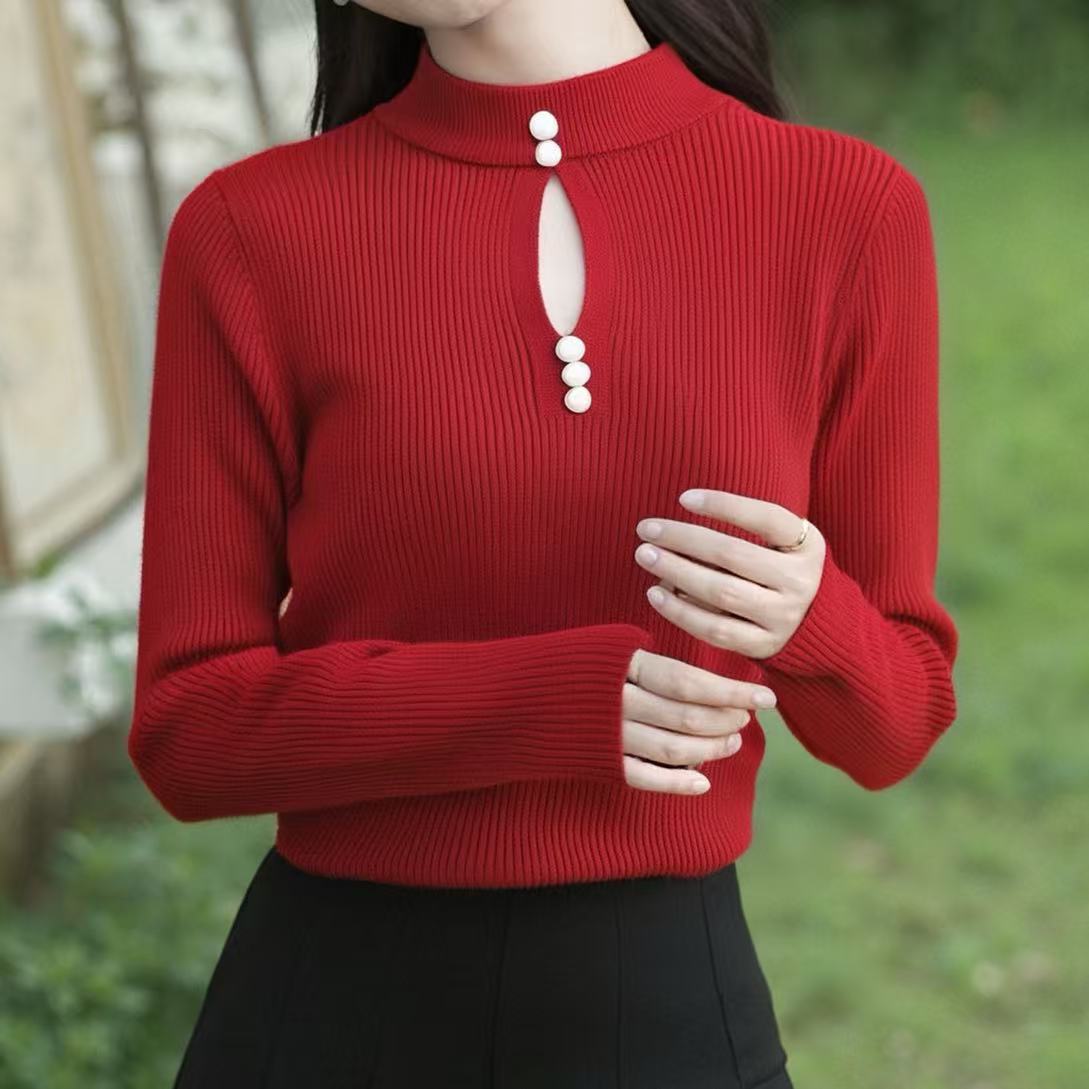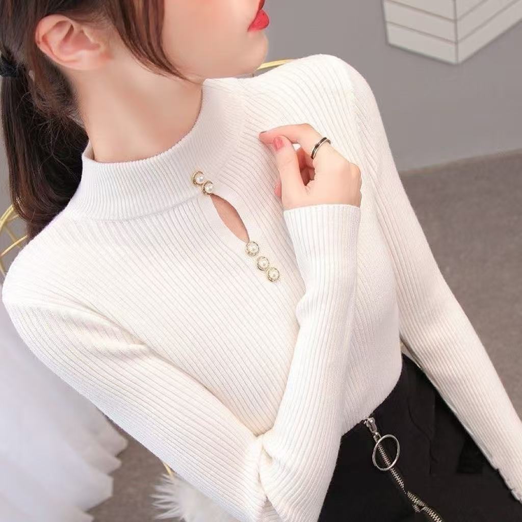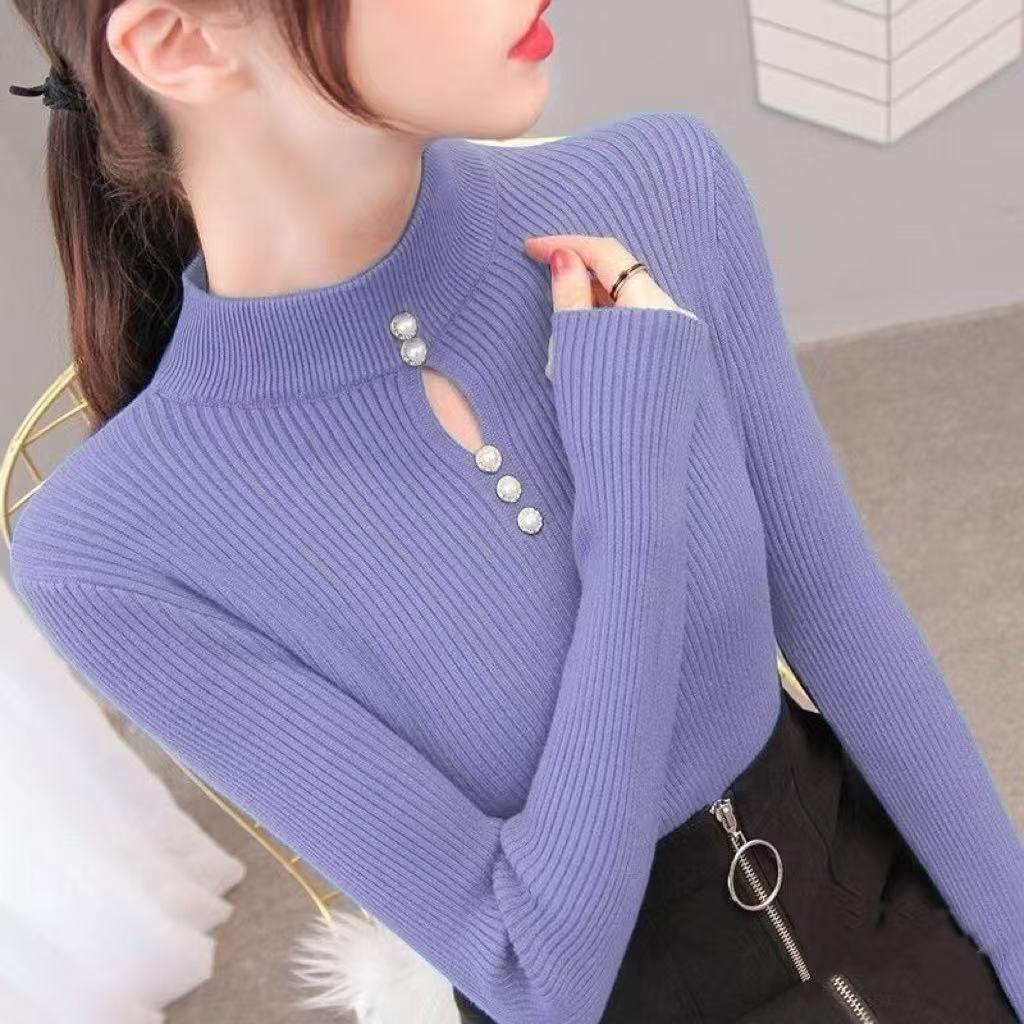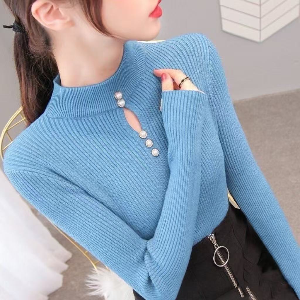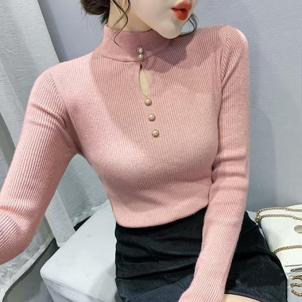 Suéter de Punto de Cuello Medio Alto para Mujer 2026 Otoño/Invierno Nuevo Estilo Coreano Adelgazante Jersey Capa Interior Suéter Manga Larga Top