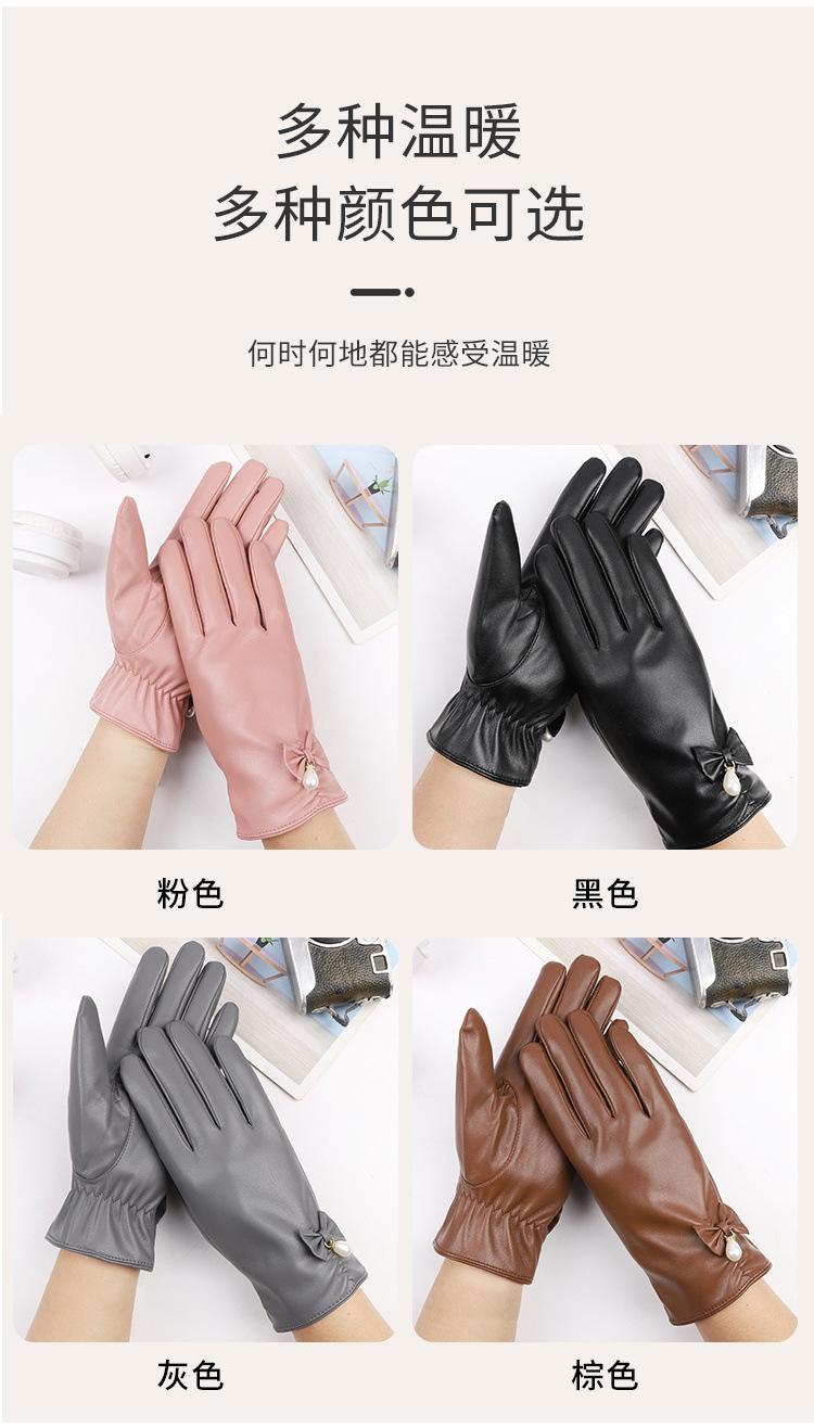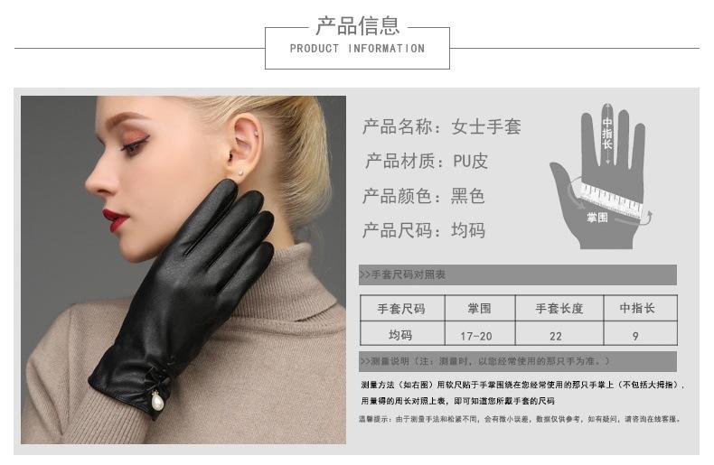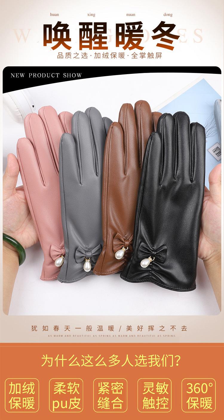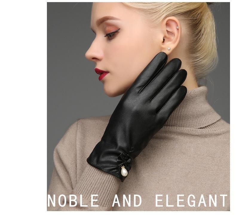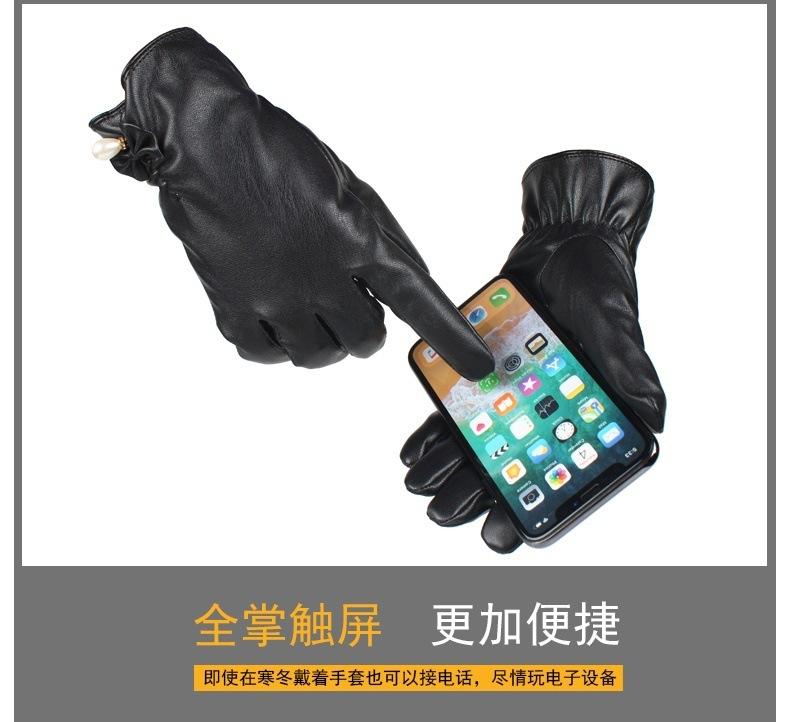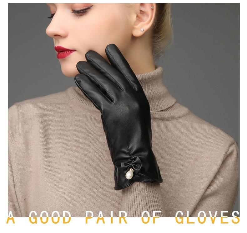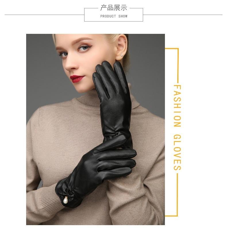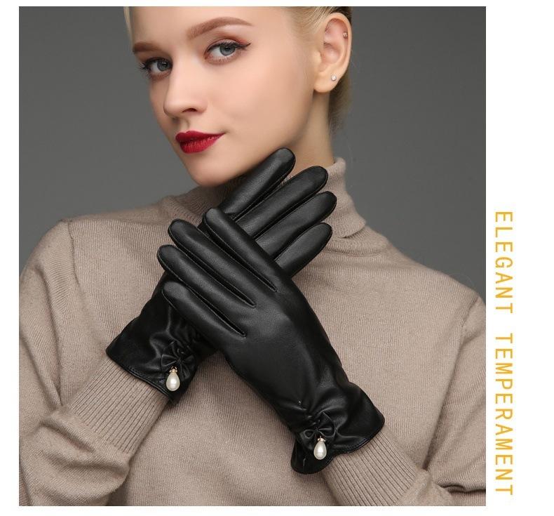 Guantes de cuero de moda de perlas chinas para mujer, invierno, para exteriores, ciclismo, impermeables, resistentes al viento, cálidos para invierno, táctiles, de terciopelo