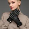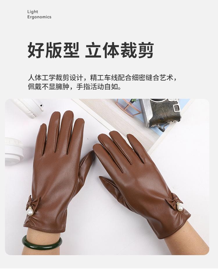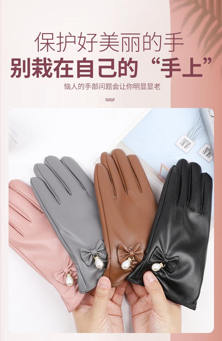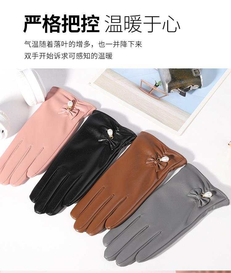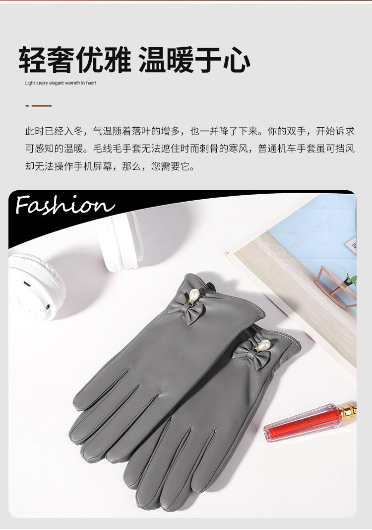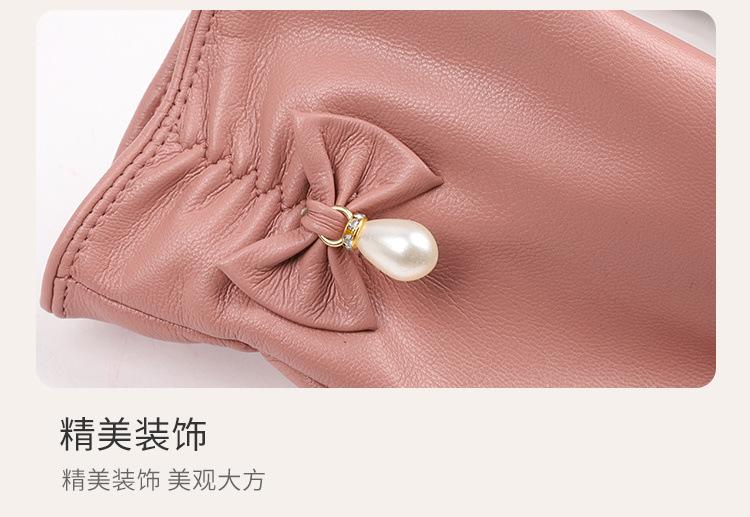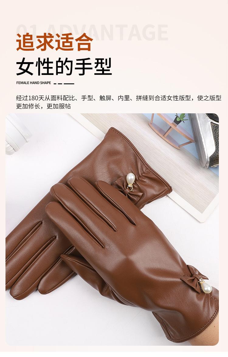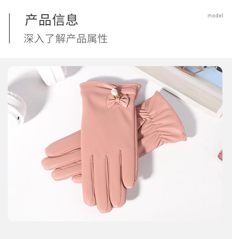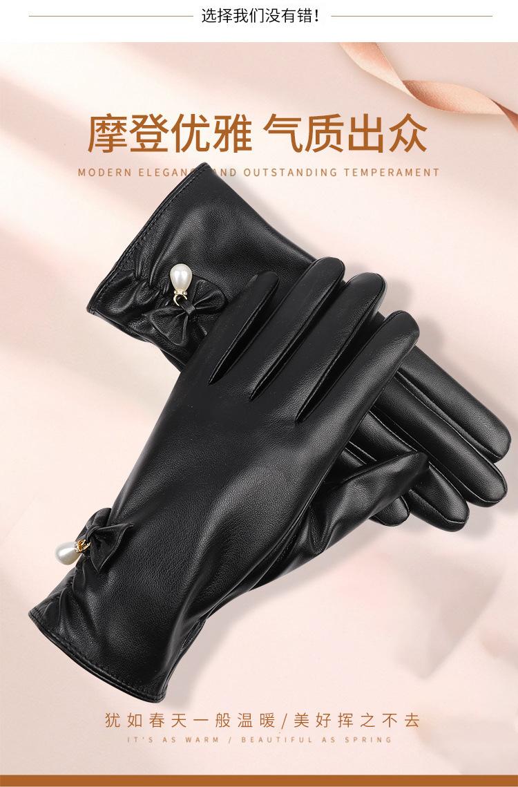 Guantes de cuero de moda de perlas chinas para mujer, invierno, para exteriores, ciclismo, impermeables, resistentes al viento, cálidos para invierno, táctiles, de terciopelo
