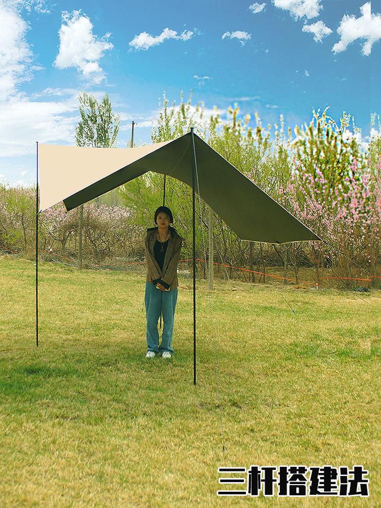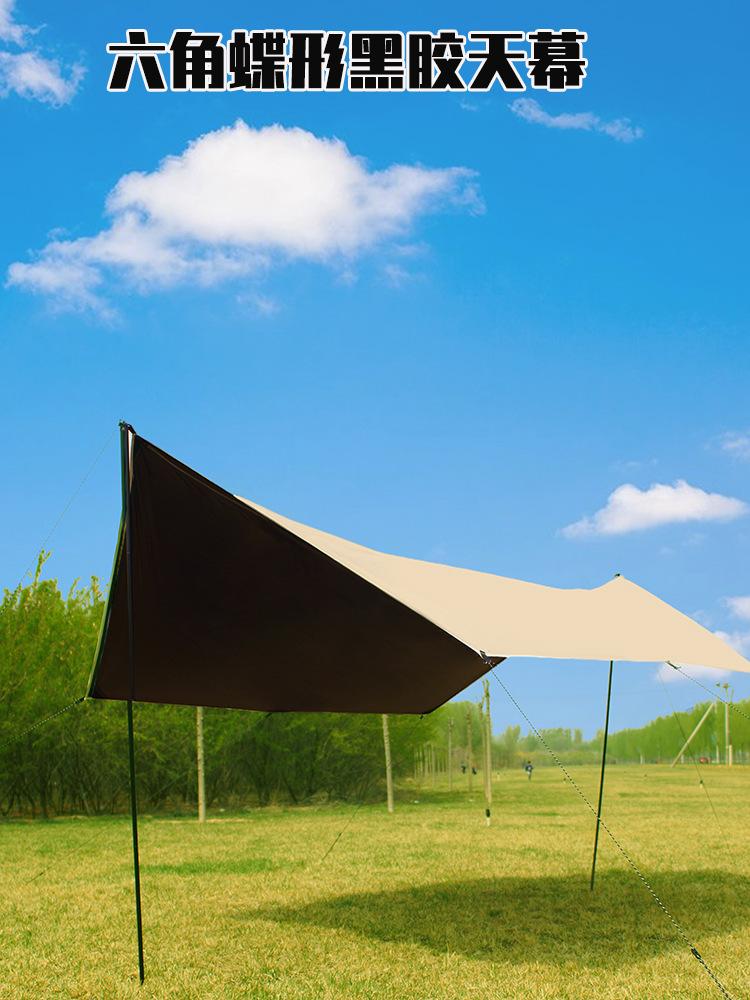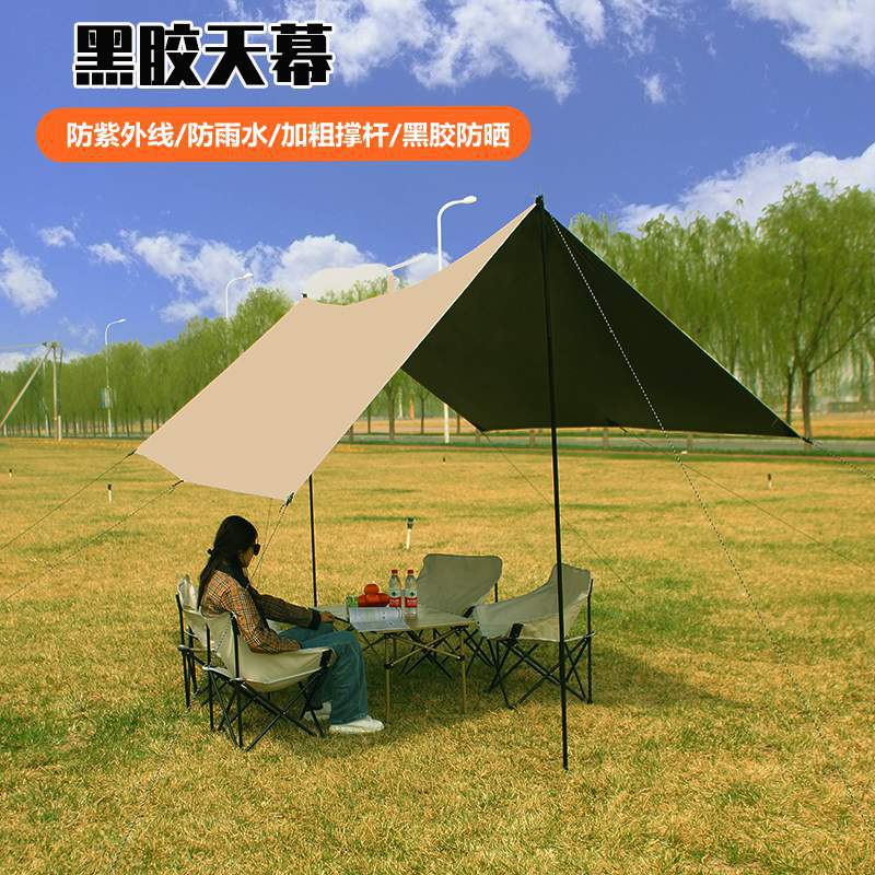 Toldo Portátil para Exteriores para Varias Personas Camping a Prueba de Viento Impermeable Sombrilla Lona Negra Recubierta de Plata Tienda
