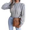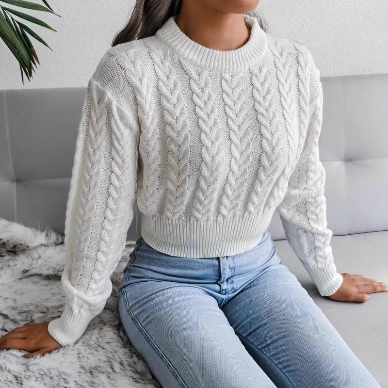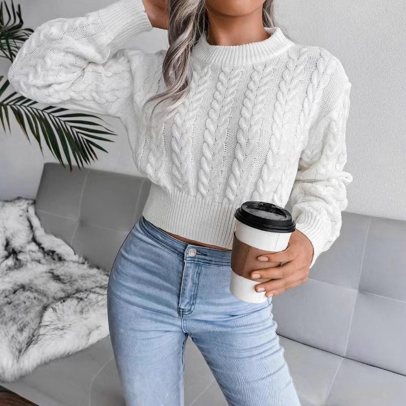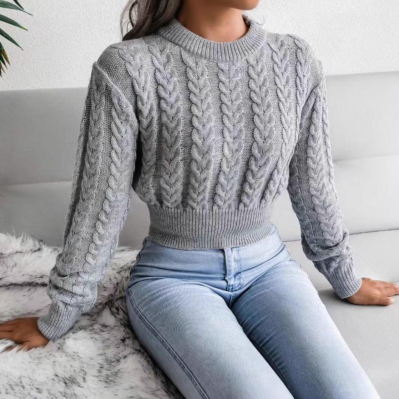 Ropa de Mujer de Comercio Exterior Transfronterizo Chaqueta Corta Petite Ajustada Cuello Redondo Torcido Cintura Suéter Top Suéter