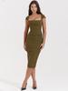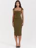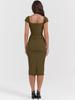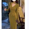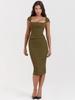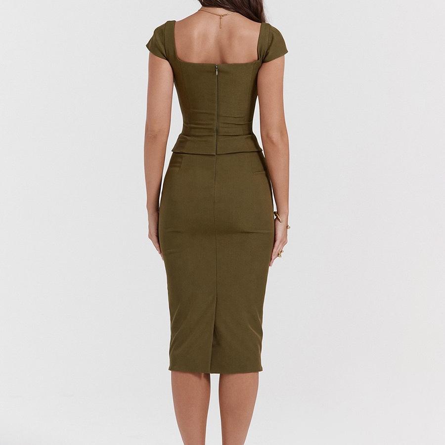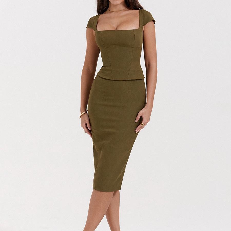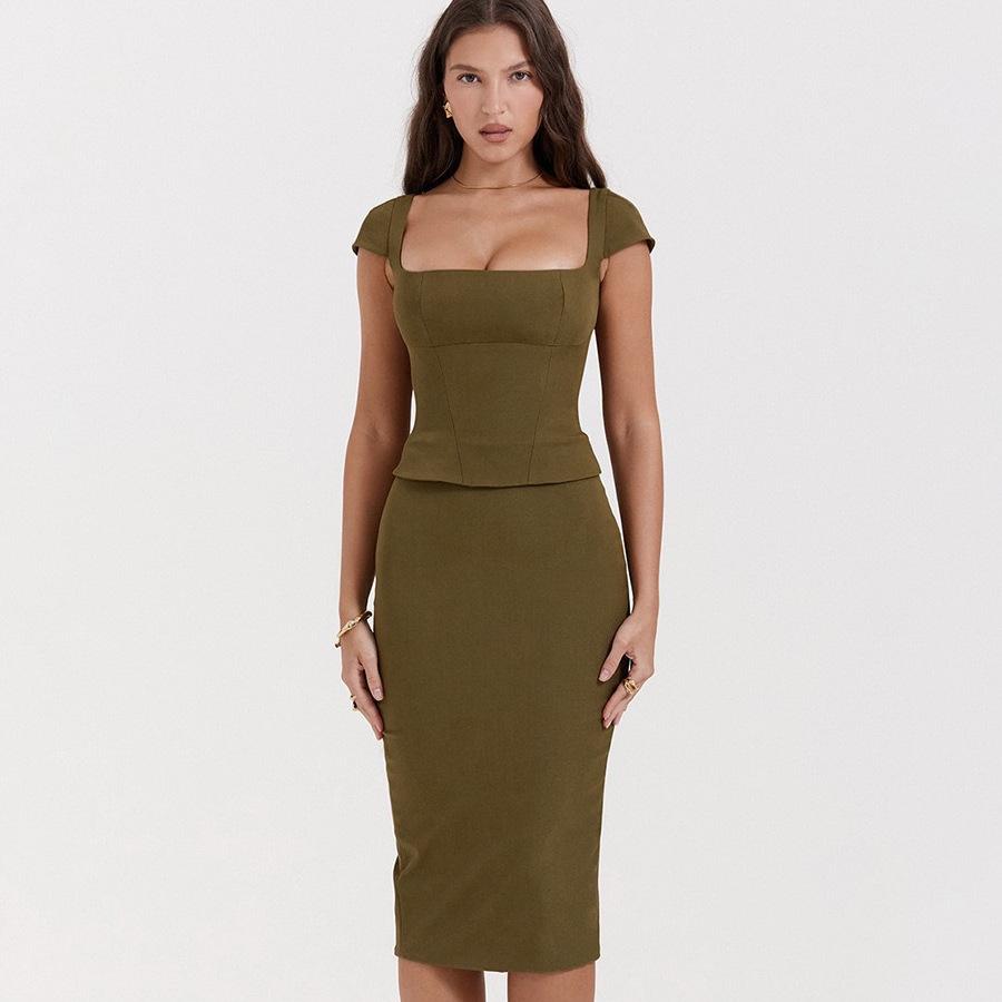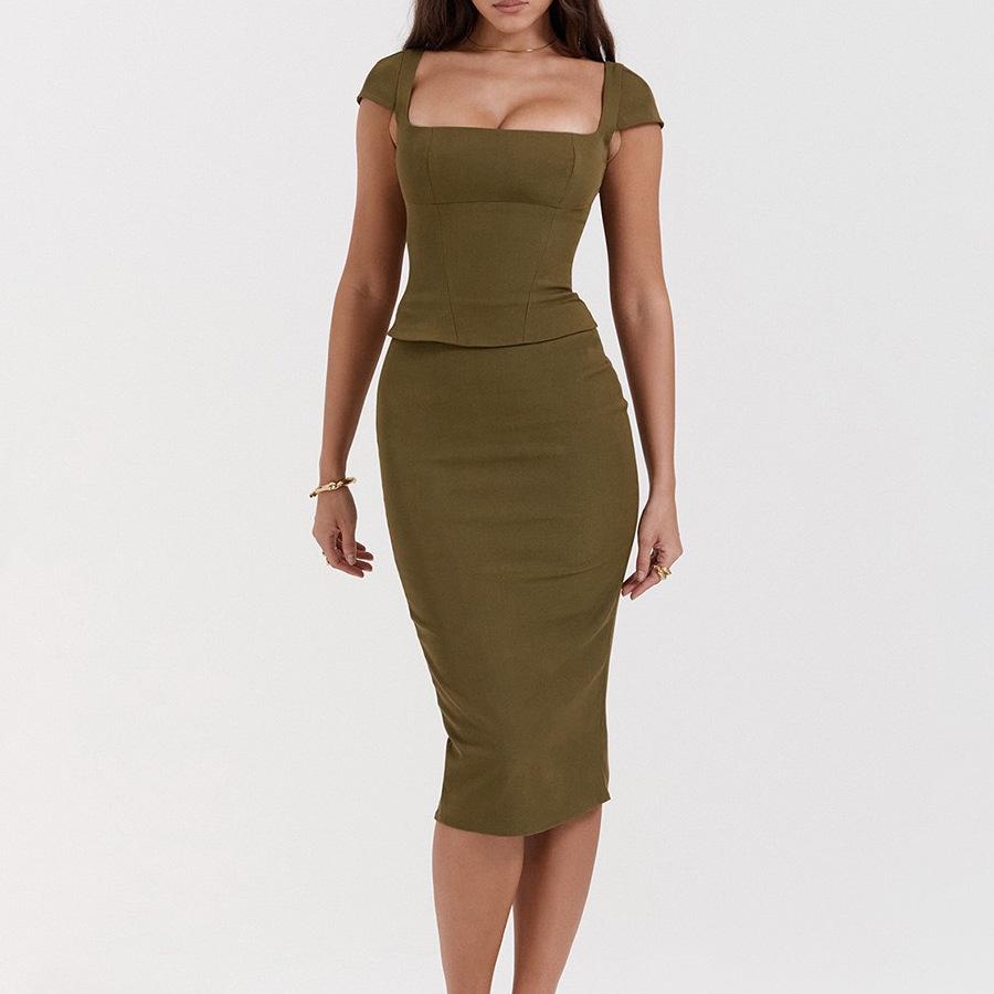 2024 Comercio exterior europeo y americano nuevo cuello cuadrado cintura alta color sólido ajustado profesional sexy falda de cadera francesa de dos piezas falsas
