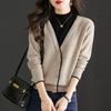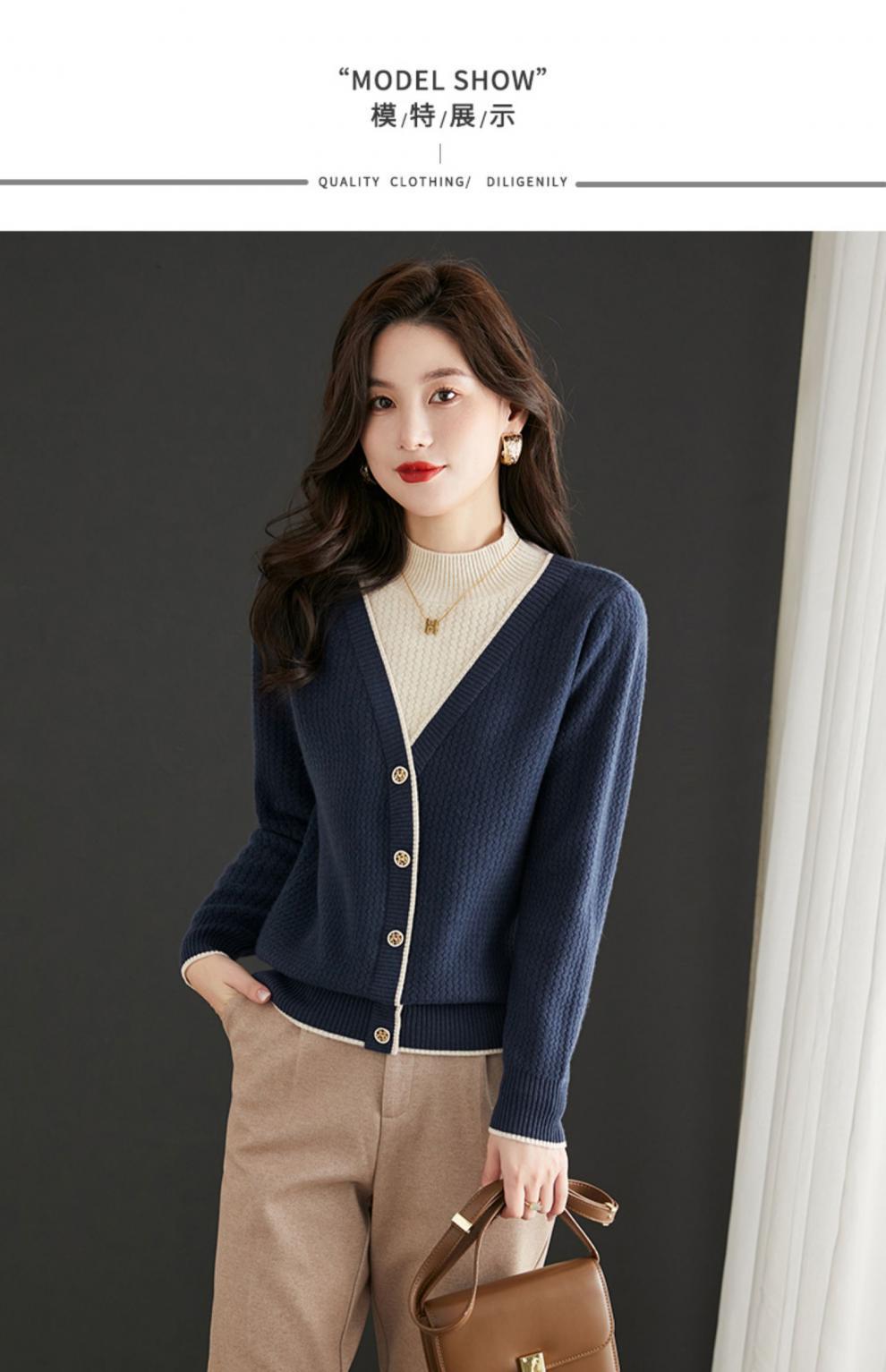 Suéter de cuello alto medio para mujer, venta al por mayor, falso top interior de dos piezas, novedad de primavera y otoño de 2024, camisa de punto de manga larga con parte inferior de marea