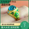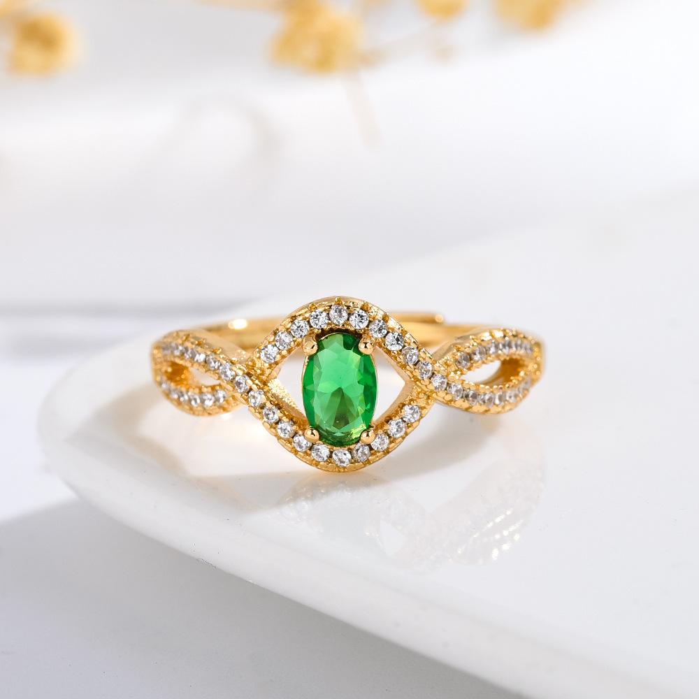 Anillo de Esmeralda y Diamantes de Piedra Preciosa de Color de Venta Caliente Transfronteriza Lujo Ligero Estilo Palacio Retro Exquisito Estilo Ins Anillo para Dedo Joyería al Por Mayor