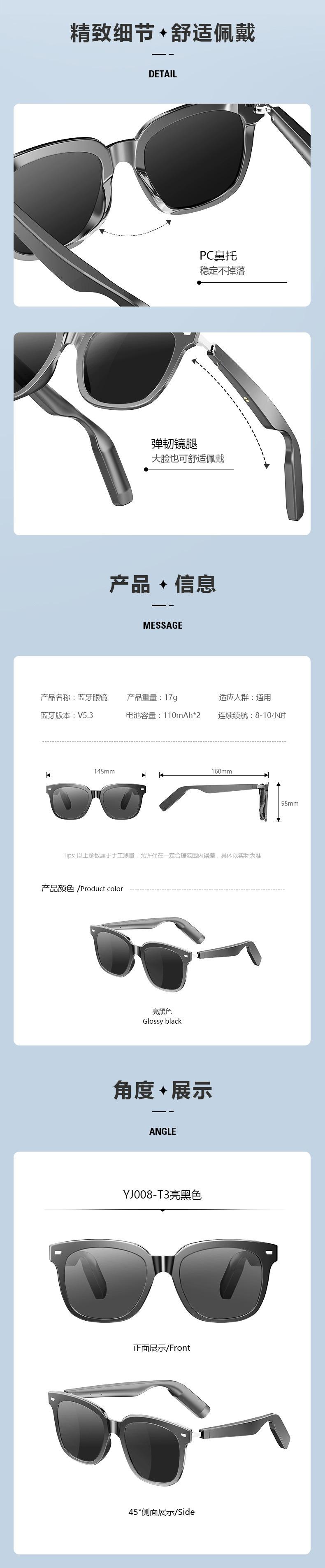Gafas Inteligentes Bluetooth Transfronterizas Yj008 T3 Gafas de Sol Trendy Llamada Musical con Gafas de Sol Polarizadas Anti-Uv