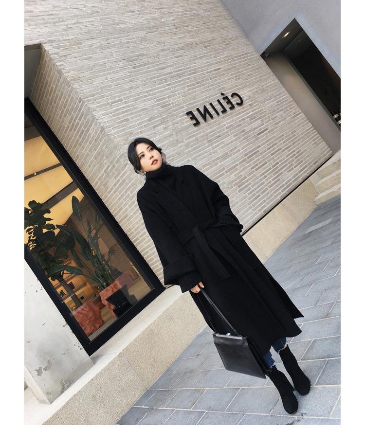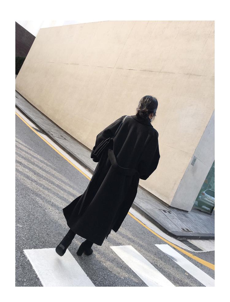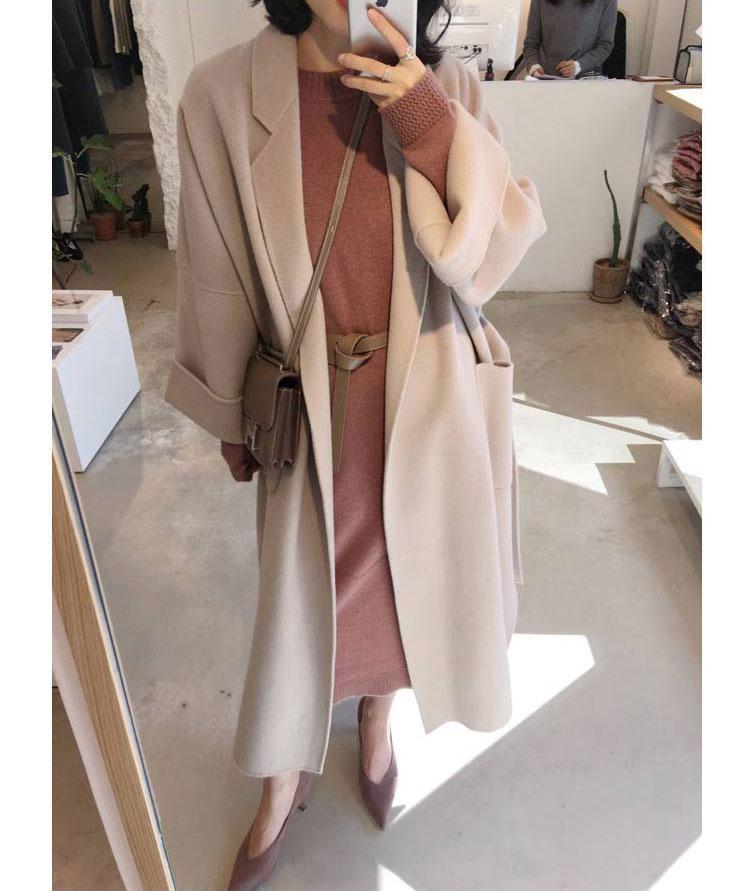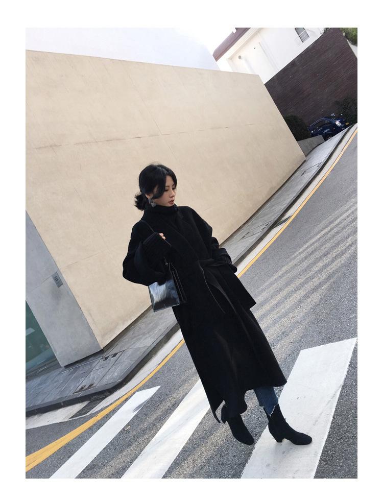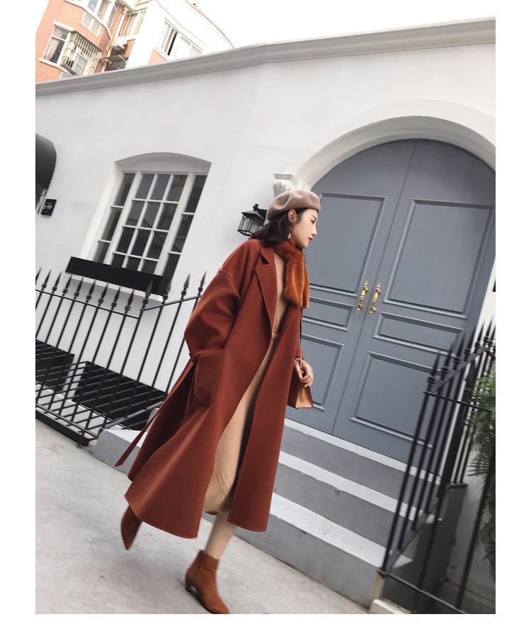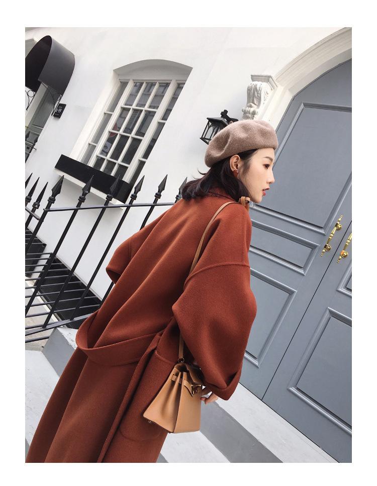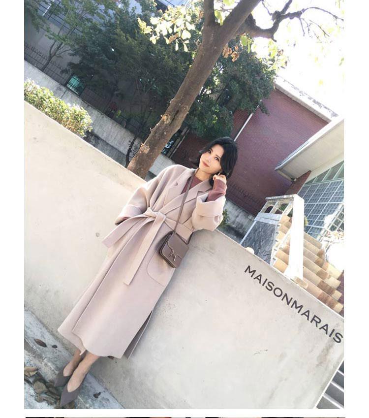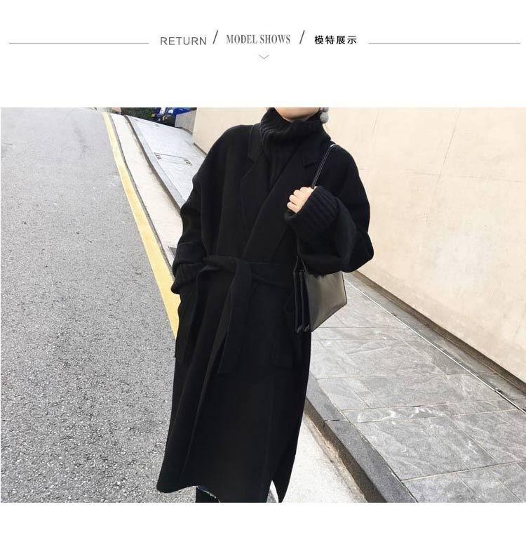 Abrigo de Lana Cachemira de Doble Cara Estilo Coreano para Mujer 2025 Otoño e Invierno Largo Hasta la Rodilla Nuevo Estilo con Cordones Abrigo de Lana de Color Puro